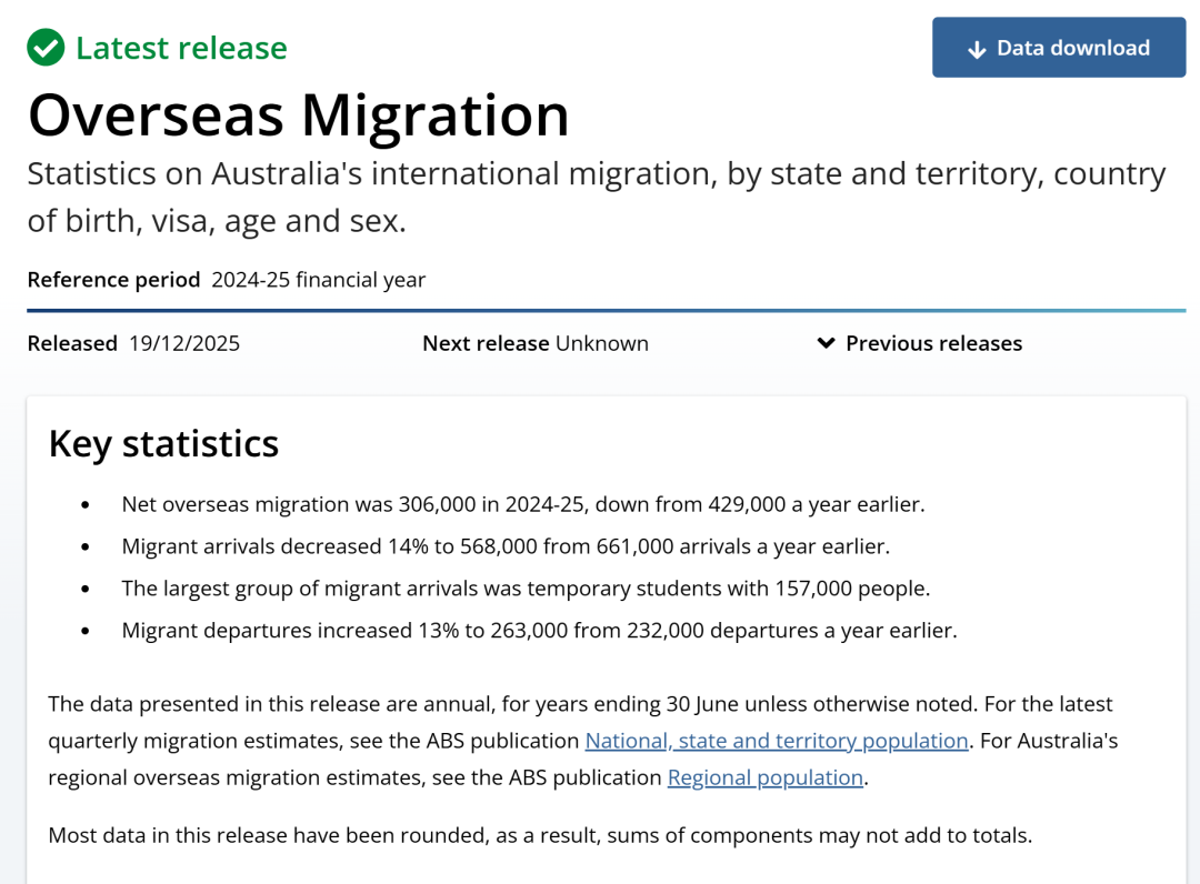 澳大利亚统计局(ABS)发布2024-25财年海外移民核心数据,给想要赴澳留学、移民或定居的人带来重要参考。数据显示,上财年澳洲净...
