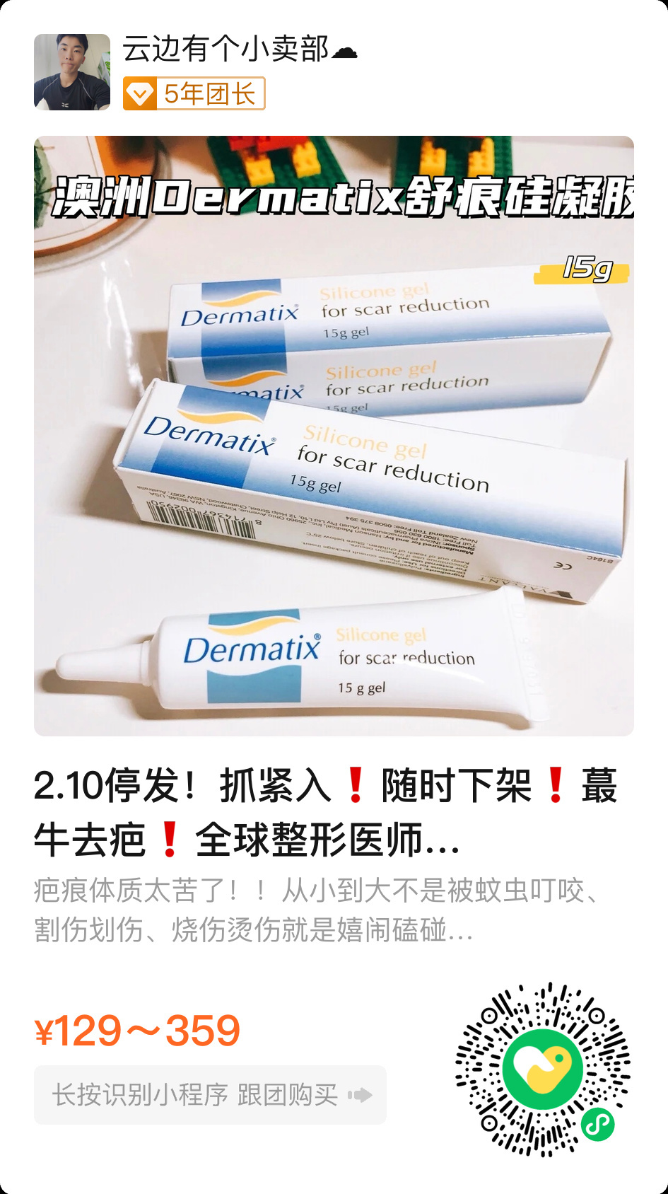 【澳洲Dermatix舒痕硅凝胶】团购:129(扫码下单即可)🔥抓紧入❗️蕞牛去疤❗️全球整形医师,皮肤科医师推荐首选‼️ 【澳洲Derm...