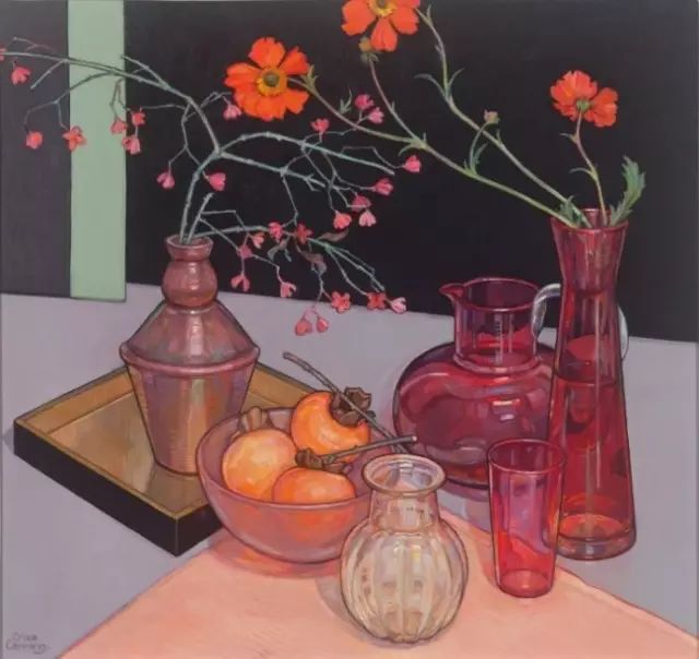 |   今天出镜的这位, 就是一个在画坛搞事情的老太太。  她的名字叫花Criss Canning, 年龄70,却已经画了50年的画。      色彩是她的灵魂, 她笔下的花朵, 时而妖娆热烈, 时而清新脱俗。      高饱和度的色彩 冲撞着每一个看客的眼球, 却都现实出惊人的和谐, 让原本的紧张感通通融化, 只想饱饱地享用这场色彩的饕鬄盛宴。      即便枯枝敝叶,绿肥红廋, 在她神奇的配色之下, 依然迸发出别样的唯美。     细看之下, 她的每副画,都有闪着高光的玻璃、磁具, 镜面的托盘,花朵、植物, 结合斑斓的背景和镜面托盘, 看起来模式都一样, 但却展现出无限种美的可能。      有人说,她不仅是一个画家, 更是一个优秀的插花师。 她懂得如何依据花卉的特点, 选择合适的容器、配件 并让花儿在其中任意舒展, 呈现最贴切的姿态。     她的许多画作, 背景和瓷器的挑选, 流露出东方古典韵味。     澳大利亚国宝级美术馆, 巴拉瑞特美术馆馆长 戈登·莫里森(Gordon Morrison)说: “ 她描绘出了每个物体的个性 ”。     Criss Canning与画笔结缘 已经有50年之久, 画画占据着她的整个生命, 但除此之外,她和丈夫David Glenn, 还是一对令人称道的园丁夫妇。  多年前,夫妇俩搬到维多利亚州,并在此拥有一块40英亩的广阔区域,他们在这儿尽情发挥了审美的特长,种下花红柳绿。看着一手建立的园林日益欣欣向荣,他们内心欢喜。  Criss说: “每个清晨, 每当我走到院子里, 大自然都在向我问好, 让我感到,啊, 生活竟是如此美好!”    然而维多利亚州中部的气候本异常干燥,植物容易萎靡枯死。 大约15年前,发生了一次大旱,毫不容易生长起来的植物悉数凋敝,夫妇两终于意识到:我们需要更耐受的植物。  于是,夫妻俩开始从土耳其和加州等地, 引进一些抗旱的植物,种植在自己的花园, 后来渐渐开始自行培育植物。 随着花园的繁荣,不少人争相前来观赏, 后来,居然成为该地的一个旅游景点!    而他们培育的一些植物, 也被销往世界各地, 其中大戟属植物“Ascot彩虹” 成为花园的“台柱”。   打理花园的生活, 给Criss注入了无线的灵感, 这让她无法停下来创作, 所以在几十年中, 她执着与描绘鲜花绿叶, 在简单静止的景物中, 加入一点润色, 来展现事物本质的美。     眼前闪过的任何一种色彩,或姿态, 都可能引起她创作的欲望, 然后,她会花好几天时间, 寻找适合的配件,搭配,构想, 等着一切就绪,她便将脑海中的形象再现。 她说:“我的画,就是我的呼吸。”     她的小孙子看着祖母终日忙碌的身影, 问道:画画很难吗? Criss :有时候真的很难! 孙子:那为什么你喜欢呢? Criss:世界上一切的美, 都是辛勤工作的结果。     如今,她在墨尔本、 悉尼等地都举办了画展, 收购她作品的藏家和博物馆遍及 英国、日本、中国、美国, 被称为“最美的艺术追求”!     卖画对她来说, 曾经是一件令人心痛的事情, 但Criss把这视作一种成长的历练, 她说:“有一些放手,有助于重建过程, 我一直在寻求改善,看自己能够走多远”  一花一世界, 用心去倾听感悟, 简单的元素, 也能成就传奇。 【版权声明】图文来源于网络,版权归原作者所有,侵权必删! |