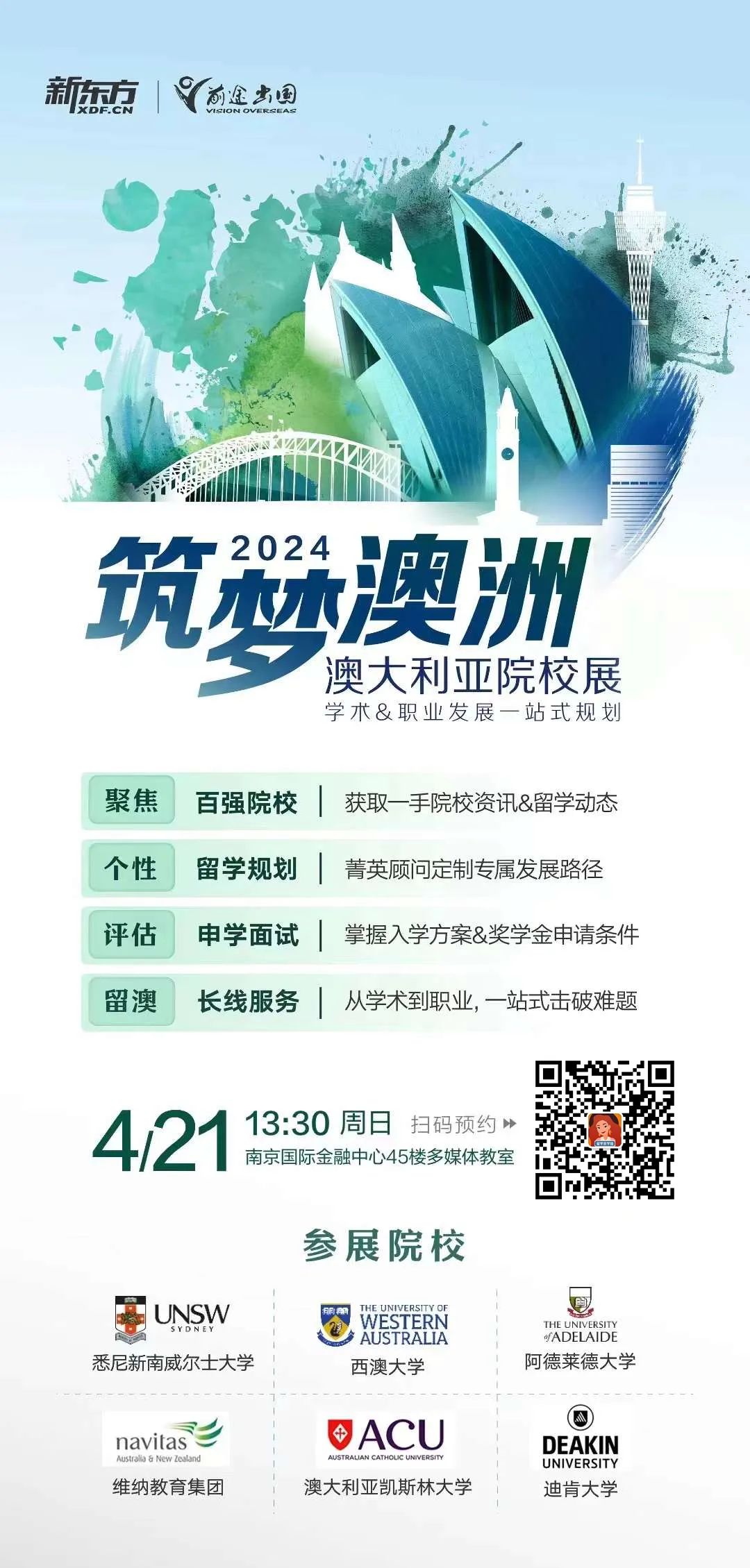 ![]() 提起澳洲留学,很多人想到的是“性价比高、QS排名高、有袋鼠、有考拉、能移民”。 除了这些之外,澳大利亚还是一个可以覆盖全阶段不同需求留学的理想目的地。 ◆ ◆ ◆ ◆ 低龄留学 转轨国际教育,中学成长新选择 ◆ ◆ ◆ ◆ 而且随着社会和经济实力的不断发展,教育选择的多样化,已经有更多的家长除了国内的学校。在力所能及的范围内,选择国际学校或出国留学,让孩子尽早接受国际化教育。提升外语交流能力,增强跨文化交往的能力。在国内就读国际学校的学费高,名额有限,而且录取门槛不低。 出于多种考虑,为了能够让孩子更早地接触国际化的教育环境,澳洲的安全宜居、高性价比、高中毕业证全球认可度高、入学时间灵活、陪读政策温馨等,澳大利亚成为现在留学家庭的首选目的地之一。 这不仅有利于未来的学习和职业发展,更能帮助孩子构建开放的国际视野,为他们的未来之路开拓更广阔的可能性。 澳大利亚的平均师生比约为1:15,小班制的教学能更好地避免教育资源的挤压,更细致关爱每一个孩子的成长。 如果您对留学申请或者语言学习还有更多疑问,欢迎随时来添加学姐微信(微信号:njqtliuxue),获得详细解答哦~ ![]() ◆ ◆ ◆ ◆ 本科留学 本科留学多条途径快来看 ◆ ◆ ◆ ◆ 每到高考前后,有很多高三甚至高二的学子会来和顾问老师咨询: 是不是只能用高考成绩,才可以申请澳洲的大学读本科? 对于高中生来说,用高考成绩申请是一种方式。澳洲的大多大多数都接受中国高考成绩直接申请录取。不同学校、不同专业对高考成绩的要求也有所不同,需要看学生的考试成绩。 如果不想参加高考就去读书,澳大利亚的预科课程是一种理想的选择。通过这种方式,学生可以提前适应海外的教育环境和学习模式,同时提高他们的英语能力和学术成绩,为将来顺利进入优质大学的本科学习做好准备。澳大利亚的预科教育注重全面发展,不仅仅是学术成绩的提升,更包括个人能力和全球视野的培养。 想要入读澳洲大学的预科,除了可以在澳洲本地入读以外。新东方前途出国的悉尼新南威尔士大学国内预科项目可以让你在国内就读 2024 TOP 20 的预科课程,省钱又省心。 如果您对留学申请或者语言学习还有更多疑问,欢迎随时来添加学姐微信(微信号:njqtliuxue),获得详细解答哦~ ![]() ◆ ◆ ◆ ◆ 硕士留学 考研出分后留学怎么选? 多个学制来看看 ◆ ◆ ◆ ◆ 澳大利亚的大学大多都开设有1年制、1.5年制和2年制的硕士课程,涵盖人文社科各个领域,能满足对学制要求不同的学生。即使是没有足够的语言成绩,也有机会通过入读语言班等途径后,再进入主课。 此外,对于希望缩短空档期,尽快进入研究生课程学习的学生,澳洲的大学除了有1年2次的学期制以外,也有3学期制。多个开学季,能方便学生找到适合自己时间安排的入学机会。 对于不同背景和需求想通过留学来提升自己学历或者换专业的学生,澳洲的大学也提供多样化的学历提升通道。 想要跨专业或原学历背景不够但想进一步提升学术背景的学生,可以通过就读Graduate Diploma或者硕士预科,来帮助学生顺利过渡到研究生阶段的学习。Grauate Diploma(简称为GD),为期1年。 如果申请人没有所申请专业的相关背景,需要先读GD,分数合格后才能进入到研究生课程学习。但并不是所有的课程都开设有 GD,如果同学想要跨专业且跨度有点大,或者是所转专业限制背景的话,就无法通过读 GD 来完成跨专业学习。 同时,对于那些成绩优异,希望直接申请TOP排名前30大学的学生,澳大利亚不乏QS排名靠前的大学,如墨尔本大学、悉尼大学、澳国立大学等。这些学校不仅能为学生提供世界级的教育质量,还能在毕业后增加其在全球就业市场上的竞争力。 如果您对留学申请或者语言学习还有更多疑问,欢迎随时来添加学姐微信(微信号:njqtliuxue),获得详细解答哦~ ![]() 这里有一个好消息告诉你! 对于希望深入了解如何通过澳大利亚的教育机会实现自己的留学梦想的学生和家庭,本周日(4月21日)南京新东方前途出国将在新街口国际金融中心45层举办的“筑梦澳洲 澳大利亚院校专项展”,为广大学子提供了一个绝佳的平台。 多所澳大利亚优质院校参加,为学生提供了与校方代表面对面沟通咨询的机会,可以深入了解澳大利亚的教育体系和申请流程,为自己的留学之路增添一份保障。 也考虑到现在国内外就业环境,活动现场还有专属的职业测评,让你对自己的专业选择和未来发展有一个大概的了解,为自己的未来发展做铺垫。 ![]() 如果大家在申请阶段有任何关于留学规划及小语种学习等的问题,欢迎添加学姐微信(微信号:njqtliuxue),获得详细解答哦~ ![]() 你可能还想了解: 澳洲本科申请量暴增61.7%,哪四种学生更适合澳洲本科留学? 24考研初试出分!澳大利亚&新西兰1-2年学制硕士拓宽读研路! 澳洲留学政策大变,这几条新规事关每一位赴澳留学生! 148万奖学金!澳国立大学化学全奖博士来了! 24fall 澳洲留学申请时间线来咯! 前瞻留学选专业,毕业就业不发愁!澳洲未来5年就业评估发布 2023中国留学白皮书数据解读④:排名高、福利好的澳大利亚&新西兰来咯! 高考后考虑澳新留学,一点都不晚!世界TOP100澳新院校欢迎你! |