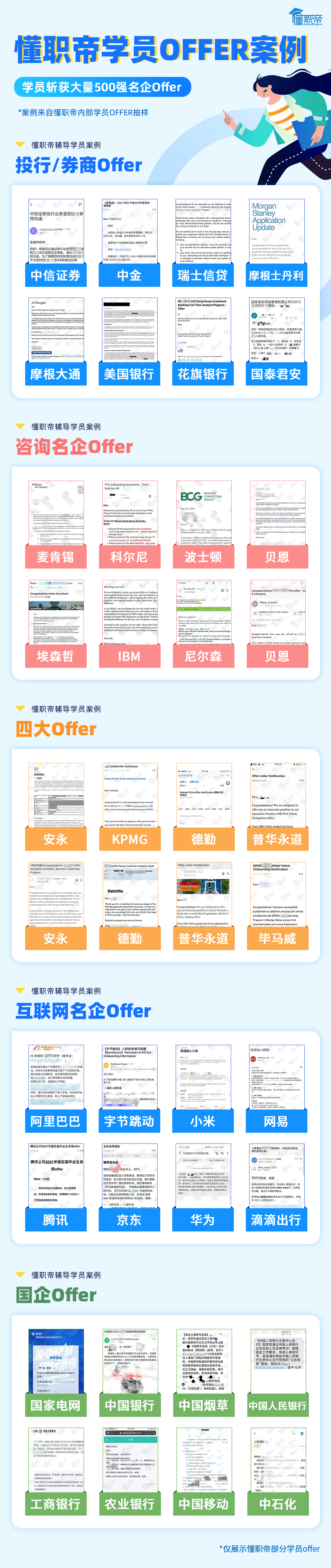 网申地址 ![]() ------------ 如何快速进入500强名企 懂职帝提供: 名企实习/项目、1对1辅导、内推资源等 帮你快速进入: 摩根大通、中信证券、麦肯锡、德勤、腾讯等名企 真实学员案例如下: 👇👇 ![]() 扫描下方二维码 咨询&报名懂职帝【求职无忧计划】 帮你拿到名企offer 👇👇 ![]() ![]() 点击“阅读原文”,免费听取求职课程 |