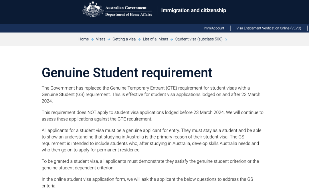 ![]() 图源:canva 03采用全新的GS要求 在这次变化中留学生比较关心的就是GTE要求的变化,根据最新政策,自3月23日后递交的签证将采用Genuine Student(GS)问答来取代过去的Genuine Temporary Entrant(GTE)要求。 如果你已经写完了GTE但还没有递交签证,那一定要根据最新要求尽快修改,千万不要抱有侥幸心理,签证审核是很严格的。 新的Genuine Student问答包含以下内容: