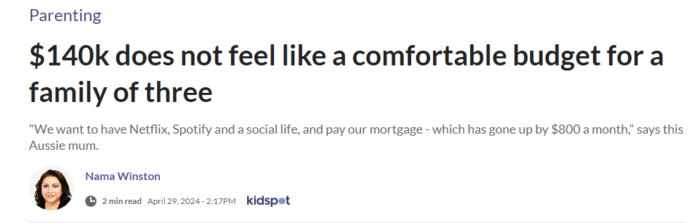 ![]() //前言// 年收入14万澳元, 普通三口之家足够生活吗? 网友态度各异, 有人表示活不起, 有的却... #01: 年入14万 却连钱都存不下 年入14万澳元,这在很多人看来已经是很高的收入了,但是这个收入能够让一个普通三口之家衣食无忧生活幸福吗? 最近就有一位宝妈在社交媒体上分享了自己的经历,她认为,年收入14万并不一定足够一家人的开销。 ![]() 图片来源:tiktok 这个视频被无数网友关注,留言点赞极多,就连澳媒也报道了这件事情: ![]() 图片来源:news 这位名叫@thatmoneymum的博主表示,2年前她丈夫的收入和现在差不多,那个时候他们没有孩子,抵押贷款是每个月800澳元,他们生活幸福,即便不考虑开销每两周也能轻松存下1000澳元,那个时候,他们有不少积蓄。 可现在,情况完全变了。 短短2年时间过去,他们的孩子出生,他们的抵押贷款也每个月增加了800澳元,但随着生活成本的飙升别说轻松存钱了,这位宝妈已经开始兼职补贴家用。 ![]() 图片来源:news 这位宝妈的帖子下面,评论两极分化,有人认为14万澳元的收入绝对够生活,但也有不少人表示,一家人收入如果只有14万,生活只能紧巴巴。 ![]() 图片来源:tiktok 有人表示,自己年收入10万澳元,独居,也只是简单维持收支平衡,14万澳元根本不够一家三口舒服生活。 ![]() 图片来源:tiktok 也有一些单亲母亲讲述自己的生活,自己收入只有5万多,但是却要独自带孩子,生活十分艰苦。 ![]() 图片来源:tiktok 还有一些网友则表示,14万收入已经足够高了,超过澳洲的平均收入,至于支出部分只要量力而行,14万是可以负担的。 ![]() 图片来源:tiktok 关于14万澳元是否足够生活这一点,网友的评论可以看出这样的规律,部分人认为在澳洲现在高物价高还贷金额的通胀之下,14万澳元和过去的8万澳元收入没有太大区别,工资没有跟上通胀的增长,家庭财政状况捉襟见肘。 如果在通胀没有上涨之前,14万澳元对于一个普通三口之家来说绰绰有余。 这也是评论区内不少网友的看法,支出需要看收入水平,如果将自己的支出做好计划,可能生活压力也会随之降低不少。 最后 14万澳元是不是足够生活,这本就是因人而异的事情,每个人的生活标准不同,量力而行做好生活规划,可能生活水平有所降级,但还能保持舒适。 如果不做规划,收入可能就跟不上通胀的变化。 通货膨胀之下,大家的生活确实受到影响,重点还是做好规划! Reference https://www.kidspot.com.au/parenting/140k-does-not-feel-like-a-comfortable-budget-for-a-family-of-three/news-story/a15a835d1ccf7d19d03d761ecef5dd4b “澳微”视频号上线了! 半分钟纵览奇闻异事、新闻资讯、美食美景, 还有各种你不知道的澳洲冷知识。 移民 要闻 ☆澳配偶移民签证或新增英语要求!审理时间更长,花费更多! ☆史上最全!澳投资移民最新变革细节出炉:配额大增,审理时间缩短! ☆新州491大赦!无需本地工作即可获邀,会计等职业起死回生 ☆疫情之下这个签证开绿灯!独占一半配额,海外也下签,入境不受限 更多好文 点击图片即可查看 ![]() ![]() ![]() ![]() ![]() ![]() ![]() |