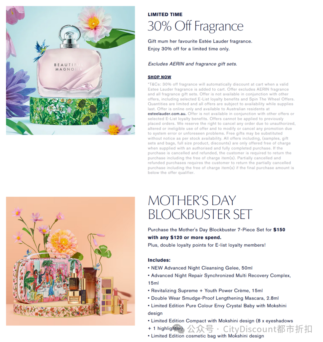 ![]() ![]() 【1】转盘活动,可获得包括: 全场一次买满$175后减去20%,折扣码:SPIN9 满$165送3件套 折扣码:SPIN6 满$100减$20,折扣码:SPIN01 【2】一次买满$120后,加$150获得价值$500+的母亲节限定大礼包。 【3】还有指定香水7折。 【4】通过Shopback下单可再返现20%,无金额上限(今天页面写错了,写成了15%)。 https://www.shopback.com.au/estee-lauder 只确定和【2】可叠加。 (之后记得留意邮件或者APP,结算后你就可转账到提交的银行账号)。 通过以下链接或注册时填写代码:QZuifh,新注册Shopback账户的亲买满20刀,以及累计获得了至少10刀返现后(可以是多次消费之后),还可额外再获得10刀新人奖励。 https://app.shopback.com/ZBagAUwnlJb ![]() (长按复制以上链接进手机或电脑的浏览器里打开) ps:新注册Shopback账户的亲,你们的首单返现,以及10刀至20刀的Bonus已陆续批下来了,记得登录后提交银行账号来提现哦。 ![]() 获得更多干货内容?点击文末左下【阅读原文】进入 ![]() ![]() 推广合作事宜联系 微信号:CityDiscount518 或 Snow84930电邮:Marketing@CityDiscount.com.au........................................................................................... ......................................................................... ![]() ![]() .................................................................. 都市折扣 CityDiscount 墨尔本第一人气新媒体实锤 干货 有料 敢言 震惊世界 / 造谣夸大 分享/爆料/检举/转载/投稿 联系微信号:Shingotroy 合作事宜联系 微信号:Snow84930 或 citydiscount518电邮:Marketing@CityDiscount.com.au .............................................................. .................................................................. 【阅读说明】 【1】本平台信息量大,随处都可能提及要事,全文看完才不会错过所有干货;【2】篇幅有限,无法完整提及活动的所有条款或者新闻事件中的所有细节信息,会尽可能给出链接以便亲查询;【3】可能无从知道及更新发布后具体商品在某个门店或网站的存货情况,以及所提及的社会事件发展的最新进展;【4】商家存在临时变更产品价格或活动设置的可能;建议保持关注我们及第一时间查阅推送,有兴趣则立刻收藏或出手下单,以免错过特价时间及存货;【5】CityDiscount并非商家客服,关于商品及活动的具体事宜最好直接询问商家;【6】如有其他问题,可发消息至公众号对话框咨询,请务必详细描述问题,推荐使用语音。 别忘了代表爱的素质4连哦~↙↙ ↙↙ ↘↘ ↘↘ |