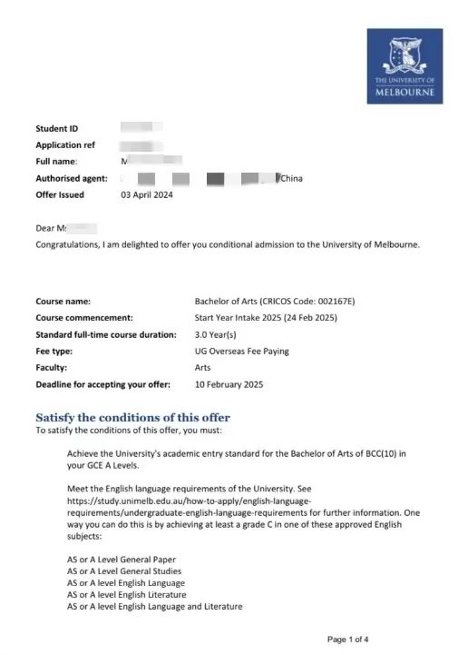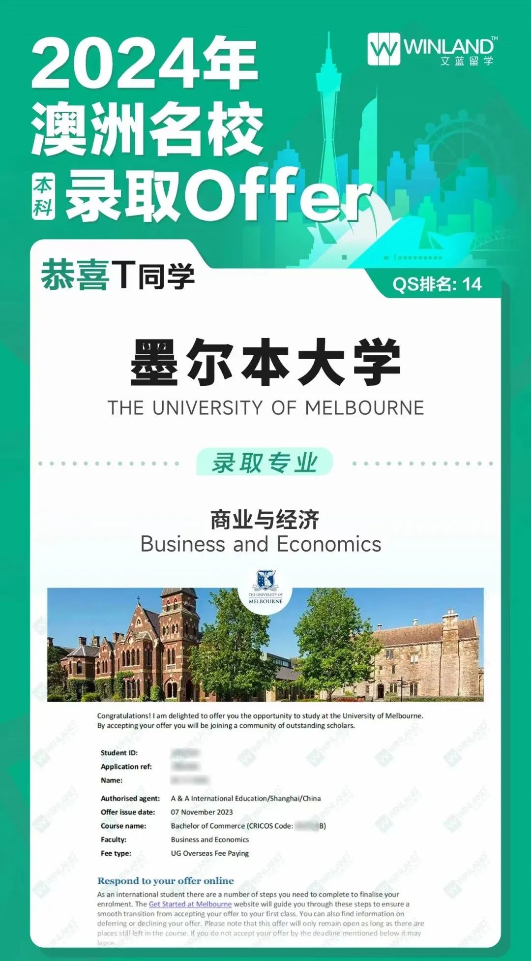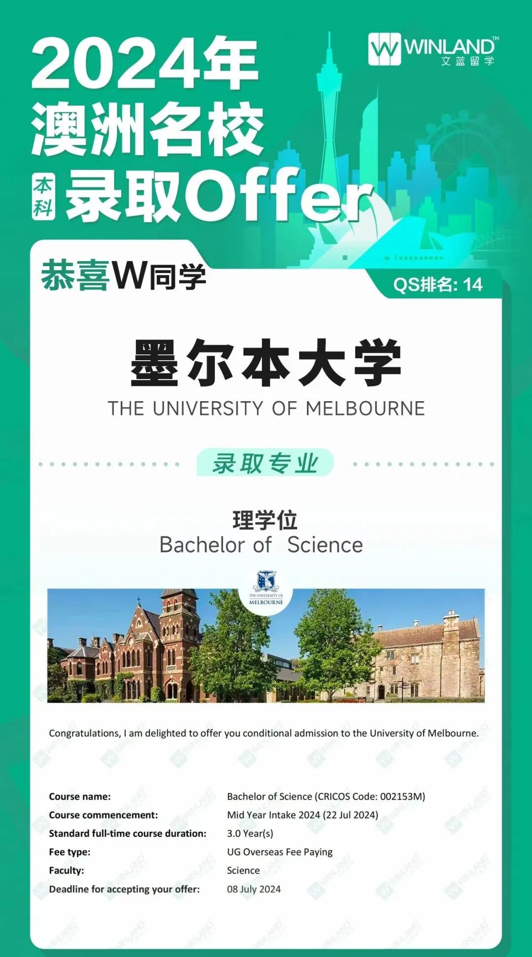 ![]() 太快了,真的太快了…… 昨天提交今天就收到offer,是怎样的一种体验? 我们的M同学拥有发言权,墨尔本offer,前一天提交第二天就收到了,真的是太快了... ... 羡慕不只“亿点点”!!! ![]() 学生录取专业介绍 墨尔本大学文学学士专业,在艺术人文领域澳洲排名第一,世界排名16位,妥妥的王牌专业。 墨尔本大学文学院开设的文学学士(Bachelor of Arts)下设许多专业分支,涵盖了从语言和心理学到经济学、媒体和传播学的40多个专业领域。学生可以根据自己的兴趣和未来发展需求进行选择。 该专业可以培养学生的创造性和分析思维、沟通专业知识和领导力。 许多毕业生进入各个领域就业。其中一些包括:政府 - 维多利亚州公共服务部门和澳大利亚公共服务部门(通过毕业生就业计划);非政府组织(例如项目协调、研究、政策支持和宣传);以及媒体和传播组织(例如新闻实习、传播、在线内容管理和媒体监控)。 ![]() G5 offer发放接近尾声 24fall的英本G5 offer发放接近尾声,牛剑帝国理工基本已经尘埃落定,只有LSE和UCL还在持续放榜,但漫长的等待终于要迎来最终的结果了。