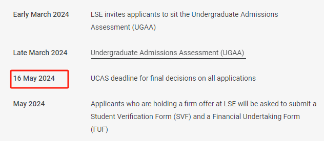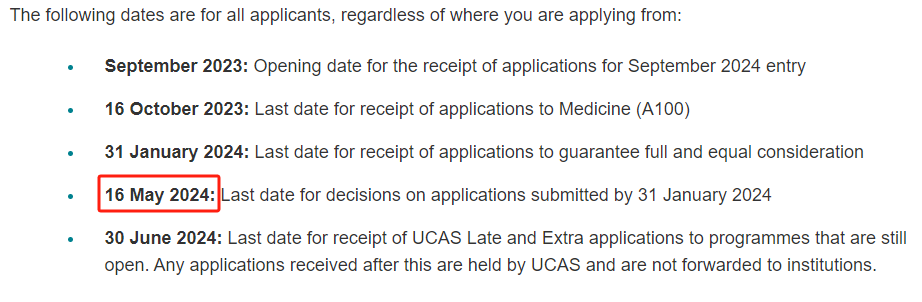 1月9日牛津放榜,1月24日剑桥放榜。 帝国理工一如往常,表示争取在3月31日前给出申请结果。帝国理工的3月31日已过,这个时间点之后晒出新入offer的同学很少,几乎没有了....... LSE是2024年5月16日,也就是UCAS规定的deadline之前,给出所有申请结果。 ![]() UCL表示2024年1月31日之前提交的申请,都将在2024年5月16日之前给出申请结果。 ![]() 没拿到英本满意offer? G5录取越来越难,不同专业录取难度都在提升,比如牛津雅思全面提高到了7.5;2024年UCL管理学A-Level申请要求从AAA升到了A*AA。IB 38提高到39;2024年UCL管理学A-Level申请要求从AAA升到了A*AA。IB 38提高到39。 到了现在这个阶段,大家主要申请冲刺的院校基本已经见分晓。 英本申请结果不理想?