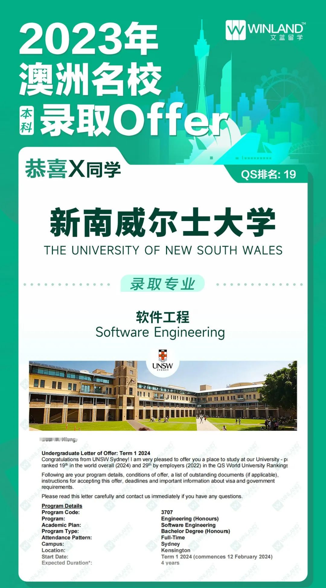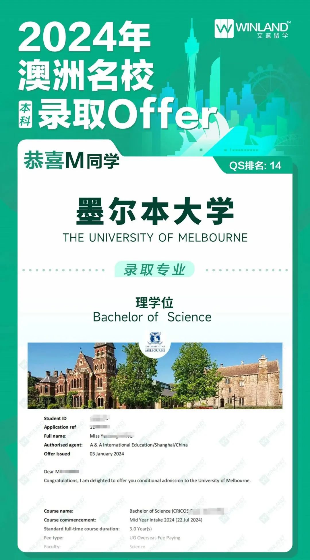 现在还有机会来改写申请命运吗? 其实这个时候不妨把思路转向澳洲大学! 澳洲排名很占优势 不知道还有多少同学认为,澳洲“水”,含金量不高!澳洲处于留学鄙视链最低端! 然而,澳洲留学火了! 根据当地媒体报道,截止2023年12月,澳洲国际生人数突破50万,创下历史记录!讲真,澳洲能起来,真的是QS排名送了一波大的祝福! 2024 QS世界大学排名,澳洲大学集体冲刺,排名疯狂上涨。 澳洲共有9所院校跻身世界百强,其中3所学校进入世界前20,6所学校进入世界前50。 而且基本上都呈现了上升趋势: 墨尔本大学,上升19位 悉尼大学,上升22位 新南威尔士大学,上升26位 ...... ![]() 悉大更是“连夜冒雨”贴地标,悉大同学调侃:“追名逐利”悉尼大学,澳洲留学咨询猛增! ![]() QS排名给的这波泼天的富贵,澳洲算是接住了~ 其实,澳洲的大学在全球排名中一直表现优异,拥有但除此之外,澳洲留学的优势还有很多。 ![]() 澳洲的本科课程学制灵活,一般为3~4年,同时提供多种课程模式供学生选择,如双学位、联合课程等,满足了不同学生的学术需求和个人发展规划。 澳洲的大学对国际学生的入学要求相对宽松,除了学术成绩外,也重视学生的综合素质和个人特长。此外,部分院校对语言成绩没有严格要求,为更多学生提供了留学机会。 特别是学科弱的A-level/IB学生,同等梯度申请要求,选择澳洲院系,如果目的是冲刺更高排名院校,提高申请&稳定入学! 澳国立的学术要求: A-Level: 三门A-Level成绩要求介于13-18之间,即A*A*A*-ABB; 四门A-Level成绩要求介于14-22之间,即A*A*AA-BBCC。 IB:37-25分 墨大的学术要求: A-Level:AAA-BBC IB:25-37分 悉尼大学的学术要求: A-Level:三门A-Level成绩要求介于11-17之间,四门A-Level成绩要求介于11-21之间 IB:41-26分 新南威尔士的学术要求: A-Level: 基本介于10-18分之间。可以挑选成绩最好的2门、3门或4门A2科目成绩计算 不同的专业对于科目有不同的要求。如需换算,可参考:A-Level:A*=6, A=5, B=4, C=3,D=2, E=1 另一方面,和英美本科一年一次申请不同,澳洲本科每年有两次入学机会,一般称作S1和S2,即也有两轮申请可以选择。 ![]() 澳洲一年2月和7月两个入学季,申请时间上也更为灵活。 澳国立2024国际生申请时间线为: S1截止日期:2023年12月15日 S2截止日期:2024年05月15日 墨大2024学年的申请时间线为: S1截止日期:2023 年 11 月 30 日 S2截止日期:2024 年 5 月 31 日 澳洲是一个多元文化、社会稳定、安全友好的国家,为留学生提供了良好的学习和生活环境。同时,澳洲的气候宜人,风景优美,也为留学生提供了舒适的居住环境。 澳洲的经济发达,拥有多个优势产业,如金融、教育、医疗等。留学生在澳洲完成学业后,可以在当地寻找工作机会,积累工作经验,为未来的职业发展打下基础。此外,澳洲的移民政策也相对宽松,为符合条件的留学生提供了移民的机会。 给大家展示一下24fall目前我们拿到的澳洲八大offer,注意,篇幅有限,这只是一部分哦!