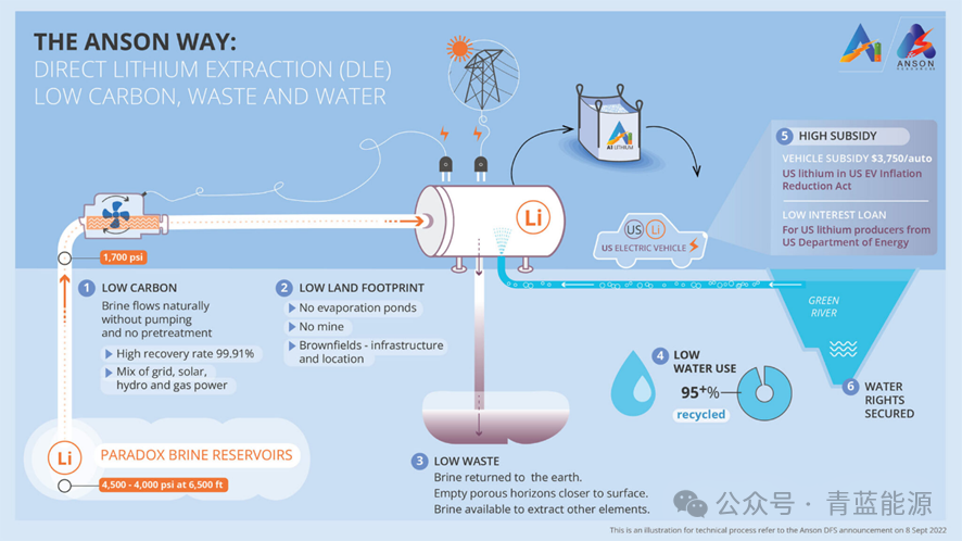 据澳洲锂业公司Anson Resources (ASX: ASN) 于5月2日发布的消息,该公司已与LG能源解决方案(LG Energy Solution)达成协议,Anson Resources将从位于美国犹他州的旗舰锂项目——Paradox卤水锂项目——向LGES供应电池级碳酸锂。自2027年起,LGES将每年从Anson采购4,000 dmt(干吨)锂,初始采购期限为5年;经双方同意,供应期限可再延长五年。 Anson Resources正在与其美国子公司A1 Lithium合作,将Paradox锂项目开发成为美国最大的锂资源之一。自去年 10 月,该项目资源增加 45% 后,该项目已经拥有 150吨碳酸锂当量 (LCE) 和 761吨溴。其中包括指示资源增加 6% 至 366,737 吨LCE 和191吨溴,推断资源增加 117% 至114万吨 LCE 和 570万吨溴。 根据 2022 年 9 月确定的 DFS(最终可行性研究),Paradox 预计将在最初的 10 年项目寿命旗内每年生产大约13,074吨的电池级碳酸锂,如果以较低的开工率生产,项目寿命长达 23 年。 最近,ASN一直在对Paradox富锂地层中已知存在于多个区域的卤水进行广泛的勘探和测试工作。 ![]() Anson Resources的直接提锂技术 (DLE) 目前Anson已经完成了与LGES的谈判,并签署了从Paradox供应LCE的第一份承购条款清单。根据承购协议,ASN将从2027年起每年供应高达4,000干吨的LCE,约占项目启动产能~10,000吨/年的40%。 ASN表示,LGES是一个理想的合作伙伴,拥有多元化的一级汽车制造商客户群,并且正在扩大北美生产设施的投资。目前,LGES在北美有8家运营或正在建设中的工厂,在密歇根州和亚利桑那州拥有独立工厂,其他6家电池工厂则分别与主要的汽车制造商合资。 ASN执行董事长兼董事总经理理查森 (BruceRichardson) 还表示,“我们已经意识到美国电动汽车电池材料供应链不可阻挡的模式转变,以及韩国和日本电池制造商正在其中发挥的关键作用。《通胀削减法案》和美国的其他政策举措正在引导对北美新电池制造的大量投资。” ![]() Anson Resources位于美国犹他州的Paradox卤水锂项目 理查森还表示, 制造业投资的这种转变将导致美国本土生产的锂的市场需求增加,这不仅从地理上缩短了供应链距离,而且还增加了美国动力电池和电动汽车的本土材料和组件含量。 该公司的承购营销活动将主要针对那些对北美进行投资的公司,这将是Anson在犹他州南部Paradox盆地的锂开发工作的战略定位。“我们与LGES的协议为长期合作伙伴关系奠定了基础。” Anson Resources ![]() |