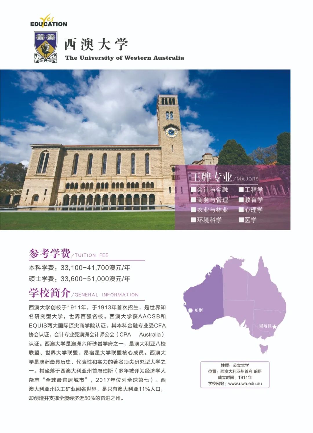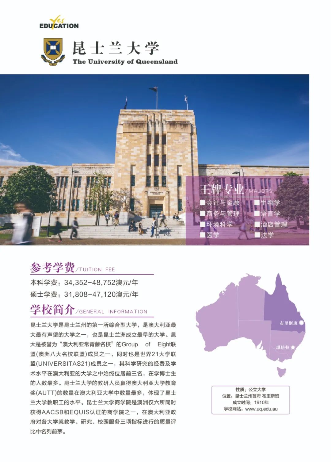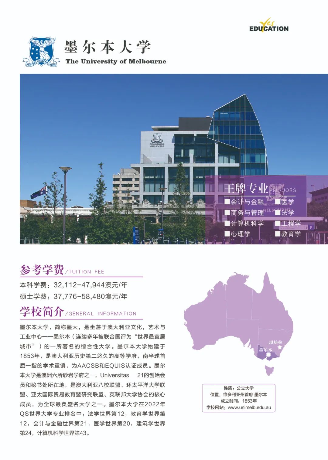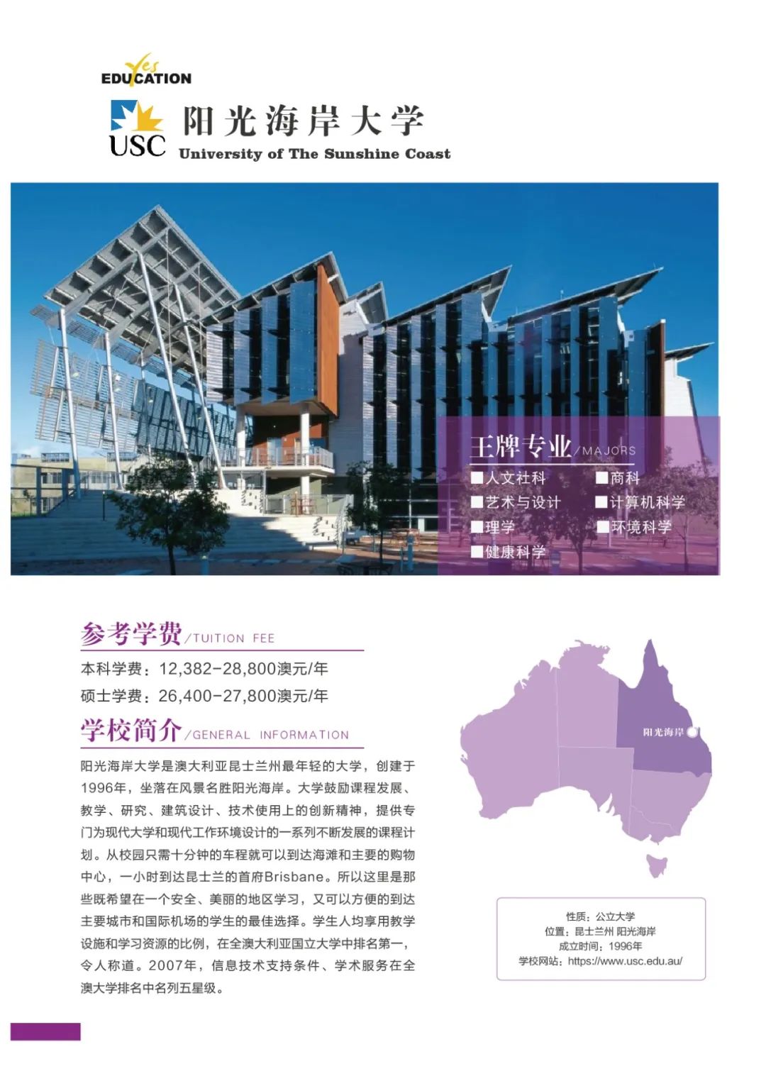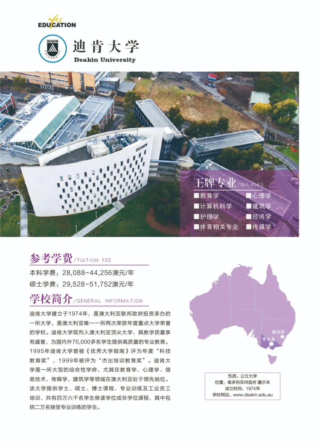 澳洲教育专业![]() 澳大利亚教师协会认证的注册教师课程清单:https://www.aitsl.edu.au/deliver-ite-programs/apl(可复制到浏览器中打开) 澳大利亚教师协会认证的注册教师课程,仅中学教师,幼儿教师,特殊教育教师在澳洲中长期技术移民职业列表(MLTSSL)清单里。 幼教硕士Master of Teaching (Early Childhood)对申请人本科背景基本都不做限制。中学教育硕士Master of Teaching (Secondary)需要申请人本科专业背景与澳洲中学课程教学大纲有两门教学科目的相关性。 以下是我们汇总的拥有移民相关幼教和中教本科和硕士的院校信息: 一、墨尔本大学 University of Melbourne ![]() Master of Teaching (Early Childhood and Primary) Master of Teaching (Secondary) 校区:墨尔本 学制:2年制,2月开学,幼教$49,716/Y,中教$44,192/Y 二、悉尼大学 University of Sydney ![]() Bachelor of Education (Early Childhood) Bachelor of Education (Secondary) Bachelor of Education and Bachelor of Advanced Studies (Secondary) 校区:悉尼 学制:4年制(双学位5年制),2月开学,$56,000/Y Master of Teaching (Early Childhood) Master of Teaching (Secondary) 校区:悉尼 学制:2年制,2月开学,$49,500/Y 三、新南威尔士大学 University of New South Wale ![]() Bachelor of Education (Secondary) double degree with Science, Arts, Commerce, Design, Economics or Fine Arts 校区:悉尼 学制:4年制,2月和9月开学,$43,500/Y Master of Teaching (Secondary) 校区:悉尼 学制:1.3-1.7年制,2月开学,$42,000/Y 四、蒙纳士大学Monash University ![]() Bachelor of Education (Honours) (specialise in Early Childhood, Primary or Secondary Education or a combination of these) 校区:墨尔本 学制:4.25年制,2月开学,$39,300/Y Master of Teaching (specialise in Early childhood, Primary or Secondary Education or a combination) 校区:墨尔本 学制:2年制,2月开学,$37,000/Y 五、昆士兰大学University of Queensland ![]() Bachelor of Education (Secondary) dual degree with Bachelor of Arts, Business Management, Mathematics, Music, or Science 校区:布里斯班 学制:4年制,2月开学,$41,120/Y Master of Teaching (Secondary) 校区:布里斯班 学制:2年制,2月开学,$41,120/Y 语言要求:仅接受IELTS: 7.5 overall; Speaking 8; Listening 8; Reading 7; Writing 7 *所有申请人将需要完成一份在线问卷,以满足该项目的非学术性入学要求。一旦你提交了你的申请,你将被引导到在线问卷。 六、西澳大学University of Western Australia ![]() Master of Teaching (Secondary) 校区:珀斯 学制:1.5年制,2月开学,$35,300/Y 语言要求:IELTS: 7.5 overall; Speaking & Listening 8.0; Reading & Writing 7.0; PTE: 75 overall with no band below 70 *需要写一份个人陈述 七、阿德莱德大学University of Adelaide ![]() Bachelor of Teaching (Secondary) dual degree with Bachelor of Arts, Mathematical and Computer Science, Music or Science 校区:阿德莱德(可以申请2+1年PSW工签) 学制:4年制,2月开学,$45,000/Y Master of Teaching (Secondary) 校区:阿德莱德(可以申请2+1年PSW工签) 学制:2年制,2月和7月开学,$45,000/Y 语言要求:IELTS总分7单7项; PTE总分65单项65 *本科教育中至少一个主修和一个辅修方向(更倾向于两个主修)与所要求的教育方向匹配。 申请人需要提交一份400-600字的教学能力陈述,包括以下三个方面: ·对教师角色的理解 ·使你成为一名优秀教师的个人和学术素质 ·你对学习的态度 八、伍伦贡大学University of Wollongong ![]() Master of Teaching (Secondary) 校区:伍伦贡(可以申请2+1年PSW工签) Southern Highlands,Shoalhaven,Shoalhaven,Batemans Bay(这4个校区均可以申请2+2年PSW工签) 学制:2年制,2月开学,$27,168/Y 九、西悉尼大学Western Sydney University ![]() Bachelor of Education (Early Childhood) 校区:Campbelltown Bachelor of Education (Secondary) 校区:Bankstown City, Parramatta, Penrith 学制:4年制,3月和7月开学,$28,928/Y Master of Teaching (Birth-5 Years), Bankstown City Master of Teaching (Birth-12 Years), Bankstown City Master of Teaching (Secondary), Penrith Master of Teaching (Secondary) STEM, Penrith, Hawkesbury 学制:除Birth-12 Years为2.5年制,其余为2年制,3月和7月开学,$31,216/Y 十、澳大利亚凯斯林大学Australian Catholic University ![]() Bachelor of Education (Early Childhood and Primary) 校区:悉尼Strathfield,墨尔本,布里斯班 学制:4年制,2月和7月开学,$26,848/Y Bachelor of Education (Secondary) 校区:悉尼Strathfield,墨尔本 学制:4年制,2月和7月开学,$26,848/Y Master of Teaching (Secondary) 校区:悉尼Strathfield,墨尔本 学制:2年制,2月和7月开学,$26,848/Y 十一、皇家墨尔本理工大学RMIT University ![]() Bachelor of Education (Primary and Early Childhood Education) 校区:Bundoora校区 学制:4年制,2月开学,$31,680/Y Master of Teaching Practice (Secondary Education) 校区:City校区 学制:2年制,2月开学,$33,600/Y 十二、迪肯大学Deakin University ![]() Bachelor of Early Childhood and Primary Education 校区:墨尔本 学制:4年制,3月开学,$33,800/Y Master of Teaching (Early Childhood) Master of Teaching (Secondary) Master of Teaching (Primary and Early Childhood) Master of Teaching (Primary and Secondary) 校区:墨尔本 学制:2年制,3月开学,$33,800/Y 十三、斯威本科技大学Swinburne University of Technology ![]() Bachelor of Education (Early Childhood and Primary) 校区:墨尔本 学制:4年制,7月开学,$31,340/Y 十四、维多利亚大学Victoria University ![]() Master of Teaching (Secondary Education) 校区:墨尔本 学制:2年制,2月和7月开学,$31,000/Y 十五、澳大利亚联邦大学Federation University Australia ![]() Bachelor of Education (Early Childhood and Primary) 校区:墨尔本Berwick;Ballarat - Mt Helen, Gippsland - Churchill(均可以申请2+2年PSW工签) 学制:4年制,2月和7月开学,$26,250/Y Bachelor of Se
