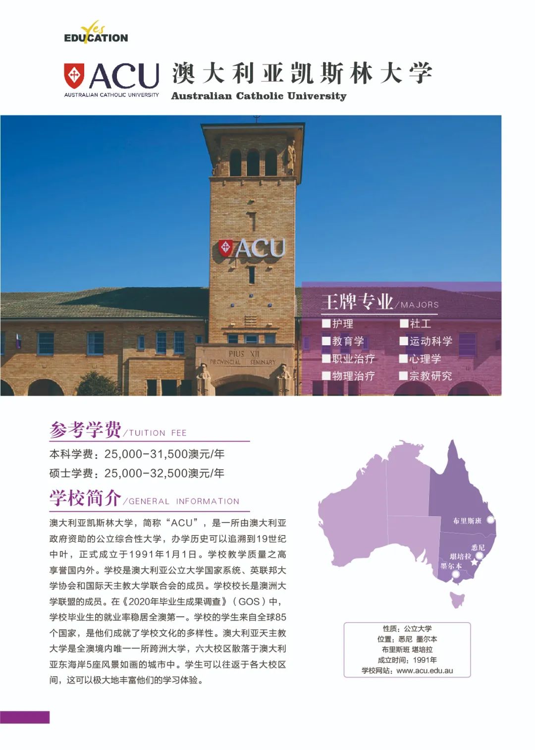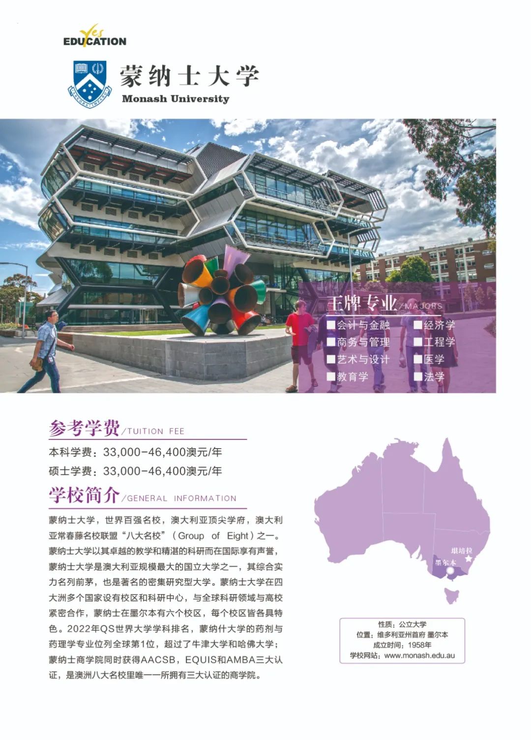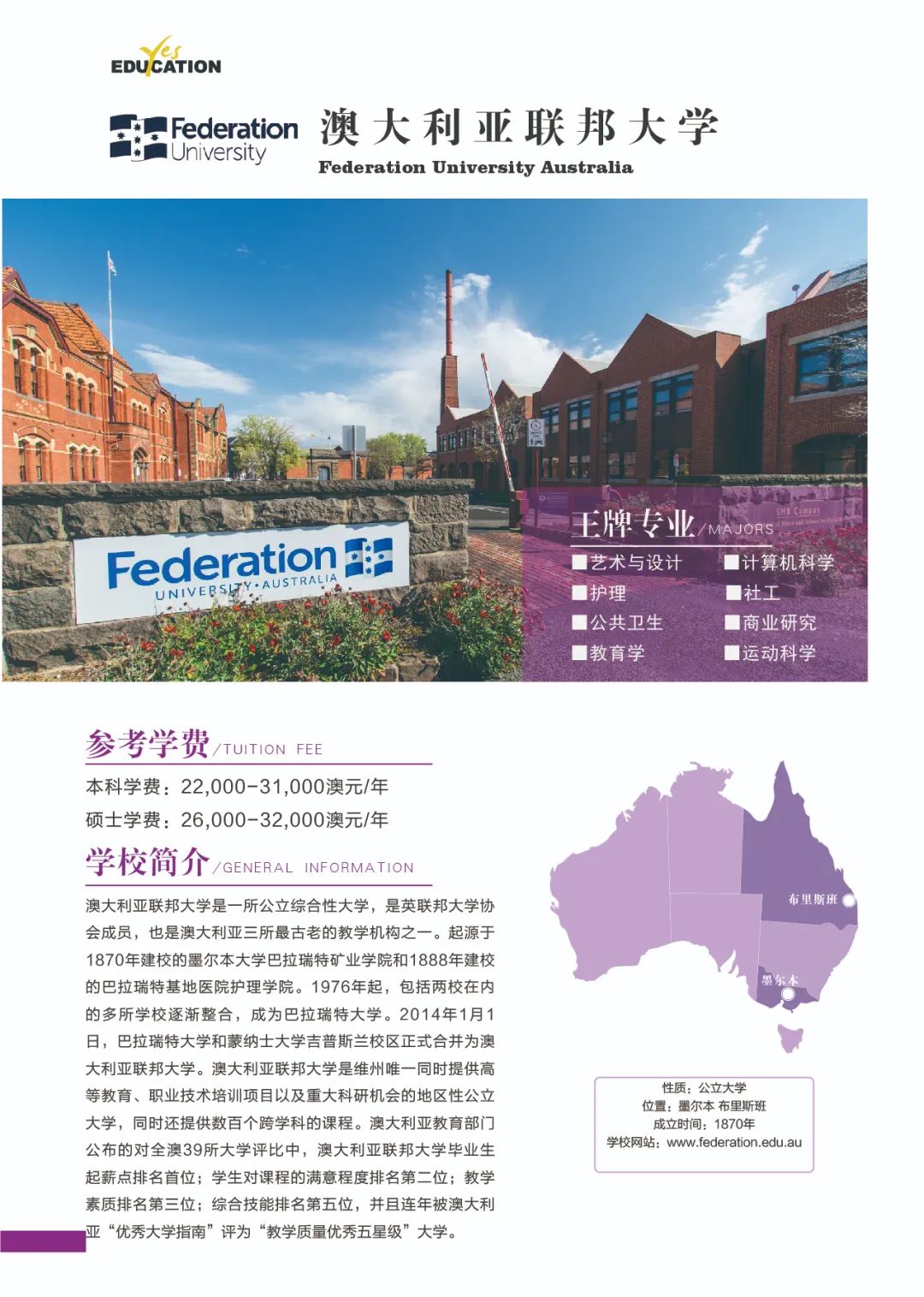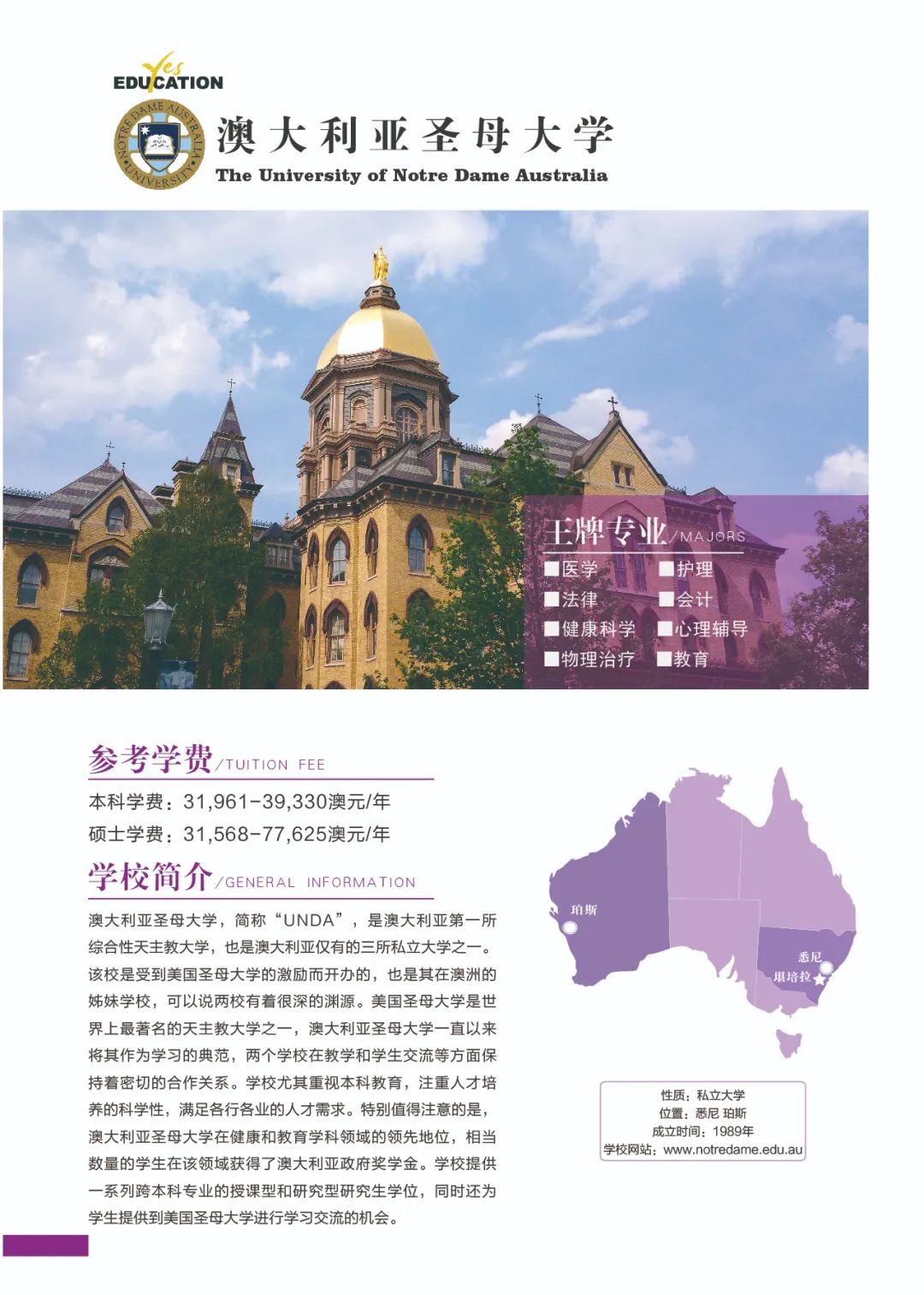 澳洲教育专业![]() 澳大利亚教师协会认证的注册教师课程清单:https://www.aitsl.edu.au/deliver-ite-programs/apl(可复制到浏览器中打开) 澳大利亚教师协会认证的注册教师课程,仅中学教师,幼儿教师,特殊教育教师在澳洲中长期技术移民职业列表(MLTSSL)清单里。 幼教硕士Master of Teaching (Early Childhood)对申请人本科背景基本都不做限制。中学教育硕士Master of Teaching (Secondary)需要申请人本科专业背景与澳洲中学课程教学大纲有两门教学科目的相关性。 以下是我们汇总的拥有移民相关幼教和中教本科和硕士的院校信息: 一、墨尔本大学 University of Melbourne ![]() Master of Teaching (Early Childhood and Primary) Master of Teaching (Secondary) 校区:墨尔本 学制:2年制,2月开学,幼教$49,716/Y,中教$44,192/Y 二、悉尼大学 University of Sydney ![]() Bachelor of Education (Early Childhood) Bachelor of Education (Secondary) Bachelor of Education and Bachelor of Advanced Studies (Secondary) 校区:悉尼 学制:4年制(双学位5年制),2月开学,$56,000/Y Master of Teaching (Early Childhood) Master of Teaching (Secondary) 校区:悉尼 学制:2年制,2月开学,$49,500/Y 三、新南威尔士大学 University of New South Wale ![]() Bachelor of Education (Secondary) double degree with Science, Arts, Commerce, Design, Economics or Fine Arts 校区:悉尼 学制:4年制,2月和9月开学,$43,500/Y Master of Teaching (Secondary) 校区:悉尼 学制:1.3-1.7年制,2月开学,$42,000/Y 四、蒙纳士大学Monash University ![]() Bachelor of Education (Honours) (specialise in Early Childhood, Primary or Secondary Education or a combination of these) 校区:墨尔本 学制:4.25年制,2月开学,$39,300/Y Master of Teaching (specialise in Early childhood, Primary or Secondary Education or a combination) 校区:墨尔本 学制:2年制,2月开学,$37,000/Y 五、昆士兰大学University of Queensland ![]() Bachelor of Education (Secondary) dual degree with Bachelor of Arts, Business Management, Mathematics, Music, or Science 校区:布里斯班 学制:4年制,2月开学,$41,120/Y Master of Teaching (Secondary) 校区:布里斯班 学制:2年制,2月开学,$41,120/Y 语言要求:仅接受IELTS: 7.5 overall; Speaking 8; Listening 8; Reading 7; Writing 7 *所有申请人将需要完成一份在线问卷,以满足该项目的非学术性入学要求。一旦你提交了你的申请,你将被引导到在线问卷。 六、西澳大学University of Western Australia ![]() Master of Teaching (Secondary) 校区:珀斯 学制:1.5年制,2月开学,$35,300/Y 语言要求:IELTS: 7.5 overall; Speaking & Listening 8.0; Reading & Writing 7.0; PTE: 75 overall with no band below 70 *需要写一份个人陈述 七、阿德莱德大学University of Adelaide ![]() Bachelor of Teaching (Secondary) dual degree with Bachelor of Arts, Mathematical and Computer Science, Music or Science 校区:阿德莱德(可以申请2+1年PSW工签) 学制:4年制,2月开学,$45,000/Y Master of Teaching (Secondary) 校区:阿德莱德(可以申请2+1年PSW工签) 学制:2年制,2月和7月开学,$45,000/Y 语言要求:IELTS总分7单7项; PTE总分65单项65 *本科教育中至少一个主修和一个辅修方向(更倾向于两个主修)与所要求的教育方向匹配。 申请人需要提交一份400-600字的教学能力陈述,包括以下三个方面: ·对教师角色的理解 ·使你成为一名优秀教师的个人和学术素质 ·你对学习的态度 八、伍伦贡大学University of Wollongong ![]() Master of Teaching (Secondary) 校区:伍伦贡(可以申请2+1年PSW工签) Southern Highlands,Shoalhaven,Shoalhaven,Batemans Bay(这4个校区均可以申请2+2年PSW工签) 学制:2年制,2月开学,$27,168/Y 九、西悉尼大学Western Sydney University ![]() Bachelor of Education (Early Childhood) 校区:Campbelltown Bachelor of Education (Secondary) 校区:Bankstown City, Parramatta, Penrith 学制:4年制,3月和7月开学,$28,928/Y Master of Teaching (Birth-5 Years), Bankstown City Master of Teaching (Birth-12 Years), Bankstown City Master of Teaching (Secondary), Penrith Master of Teaching (Secondary) STEM, Penrith, Hawkesbury 学制:除Birth-12 Years为2.5年制,其余为2年制,3月和7月开学,$31,216/Y 十、澳大利亚凯斯林大学Australian Catholic University ![]() Bachelor of Education (Early Childhood and Primary) 校区:悉尼Strathfield,墨尔本,布里斯班 学制:4年制,2月和7月开学,$26,848/Y Bachelor of Education (Secondary) 校区:悉尼Strathfield,墨尔本 学制:4年制,2月和7月开学,$26,848/Y Master of Teaching (Secondary) 校区:悉尼Strathfield,墨尔本 学制:2年制,2月和7月开学,$26,848/Y 十一、皇家墨尔本理工大学RMIT University ![]() Bachelor of Education (Primary and Early Childhood Education) 校区:Bundoora校区 学制:4年制,2月开学,$31,680/Y Master of Teaching Practice (Secondary Education) 校区:City校区 学制:2年制,2月开学,$33,600/Y 十二、迪肯大学Deakin University ![]() Bachelor of Early Childhood and Primary Education 校区:墨尔本 学制:4年制,3月开学,$33,800/Y Master of Teaching (Early Childhood) Master of Teaching (Secondary) Master of Teaching (Primary and Early Childhood) Master of Teaching (Primary and Secondary) 校区:墨尔本 学制:2年制,3月开学,$33,800/Y 十三、斯威本科技大学Swinburne University of Technology ![]() Bachelor of Education (Early Childhood and Primary) 校区:墨尔本 学制:4年制,7月开学,$31,340/Y 十四、维多利亚大学Victoria University ![]() Master of Teaching (Secondary Education) 校区:墨尔本 学制:2年制,2月和7月开学,$31,000/Y 十五、澳大利亚联邦大学Federation University Australia ![]() Bachelor of Education (Early Childhood and Primary) 校区:墨尔本Berwick;Ballarat - Mt Helen, Gippsland - Churchill(均可以申请2+2年PSW工签) 学制:4年制,2月和7月开学,$26,250/Y Bachelor of Se