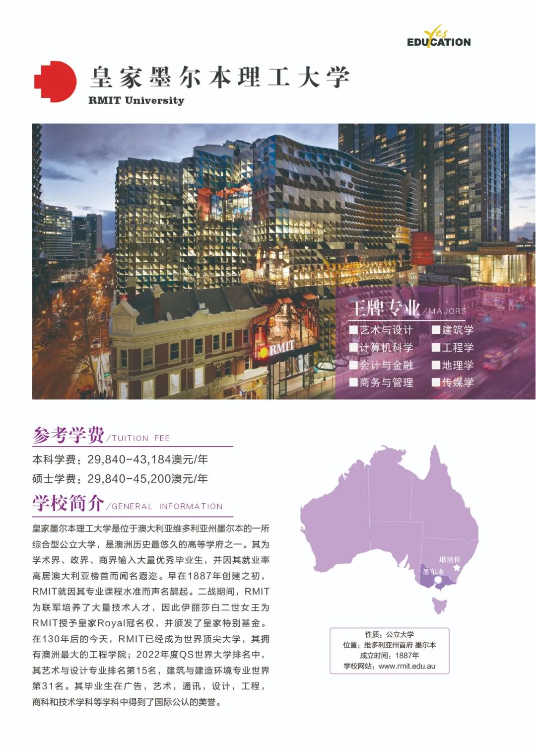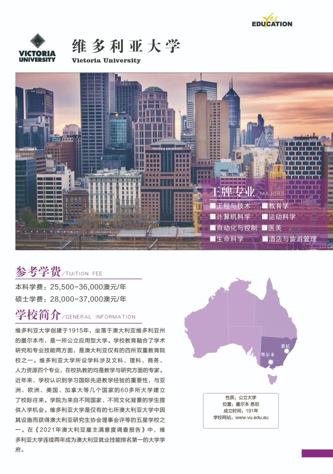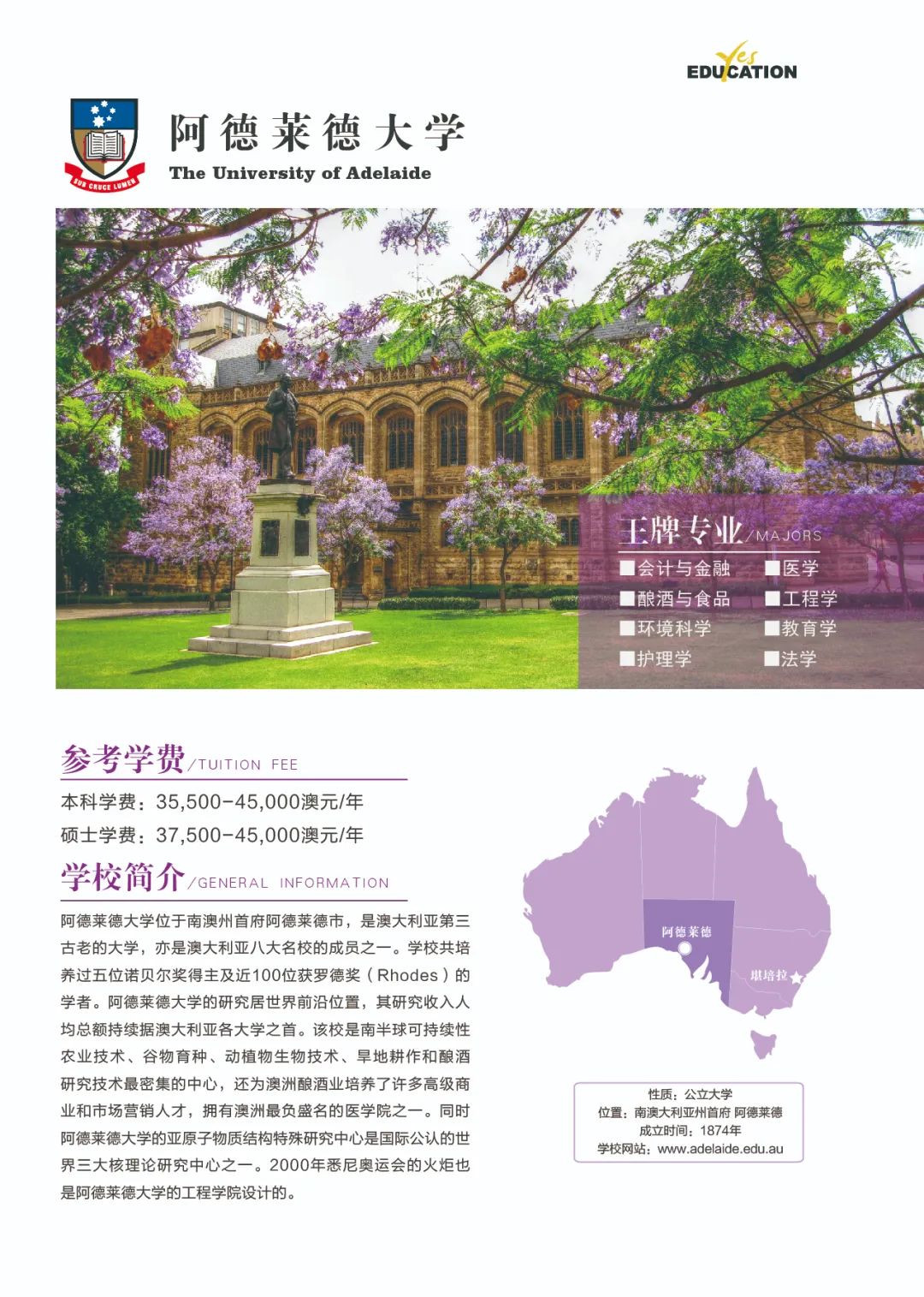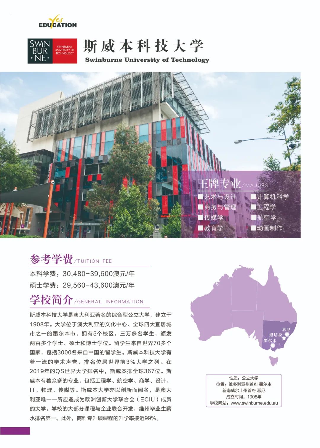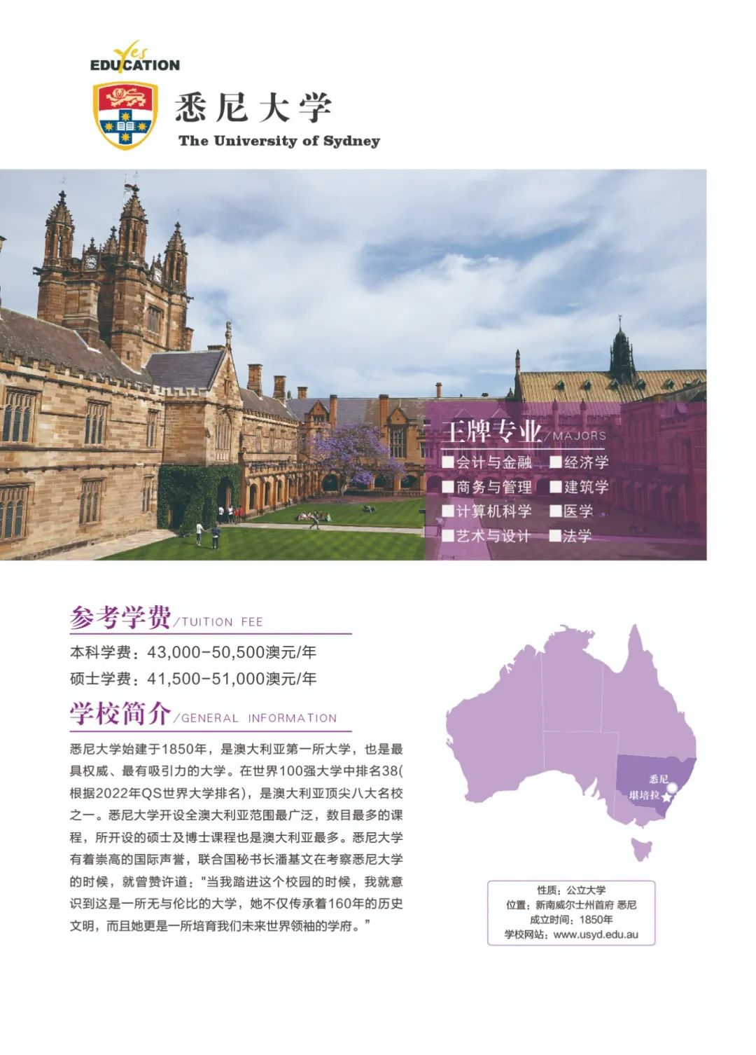 澳洲教育专业![]() 澳大利亚教师协会认证的注册教师课程清单:https://www.aitsl.edu.au/deliver-ite-programs/apl(可复制到浏览器中打开) 澳大利亚教师协会认证的注册教师课程,仅中学教师,幼儿教师,特殊教育教师在澳洲中长期技术移民职业列表(MLTSSL)清单里。 幼教硕士Master of Teaching (Early Childhood)对申请人本科背景基本都不做限制。中学教育硕士Master of Teaching (Secondary)需要申请人本科专业背景与澳洲中学课程教学大纲有两门教学科目的相关性。 以下是我们汇总的拥有移民相关幼教和中教本科和硕士的院校信息: 一、墨尔本大学 University of Melbourne ![]() Master of Teaching (Early Childhood and Primary) Master of Teaching (Secondary) 校区:墨尔本 学制:2年制,2月开学,幼教$49,716/Y,中教$44,192/Y 二、悉尼大学 University of Sydney ![]() Bachelor of Education (Early Childhood) Bachelor of Education (Secondary) Bachelor of Education and Bachelor of Advanced Studies (Secondary) 校区:悉尼 学制:4年制(双学位5年制),2月开学,$56,000/Y Master of Teaching (Early Childhood) Master of Teaching (Secondary) 校区:悉尼 学制:2年制,2月开学,$49,500/Y 三、新南威尔士大学 University of New South Wale ![]() Bachelor of Education (Secondary) double degree with Science, Arts, Commerce, Design, Economics or Fine Arts 校区:悉尼 学制:4年制,2月和9月开学,$43,500/Y Master of Teaching (Secondary) 校区:悉尼 学制:1.3-1.7年制,2月开学,$42,000/Y 四、蒙纳士大学Monash University ![]() Bachelor of Education (Honours) (specialise in Early Childhood, Primary or Secondary Education or a combination of these) 校区:墨尔本 学制:4.25年制,2月开学,$39,300/Y Master of Teaching (specialise in Early childhood, Primary or Secondary Education or a combination) 校区:墨尔本 学制:2年制,2月开学,$37,000/Y 五、昆士兰大学University of Queensland ![]() Bachelor of Education (Secondary) dual degree with Bachelor of Arts, Business Management, Mathematics, Music, or Science 校区:布里斯班 学制:4年制,2月开学,$41,120/Y Master of Teaching (Secondary) 校区:布里斯班 学制:2年制,2月开学,$41,120/Y 语言要求:仅接受IELTS: 7.5 overall; Speaking 8; Listening 8; Reading 7; Writing 7 *所有申请人将需要完成一份在线问卷,以满足该项目的非学术性入学要求。一旦你提交了你的申请,你将被引导到在线问卷。 六、西澳大学University of Western Australia ![]() Master of Teaching (Secondary) 校区:珀斯 学制:1.5年制,2月开学,$35,300/Y 语言要求:IELTS: 7.5 overall; Speaking & Listening 8.0; Reading & Writing 7.0; PTE: 75 overall with no band below 70 *需要写一份个人陈述 七、阿德莱德大学University of Adelaide ![]() Bachelor of Teaching (Secondary) dual degree with Bachelor of Arts, Mathematical and Computer Science, Music or Science 校区:阿德莱德(可以申请2+1年PSW工签) 学制:4年制,2月开学,$45,000/Y Master of Teaching (Secondary) 校区:阿德莱德(可以申请2+1年PSW工签) 学制:2年制,2月和7月开学,$45,000/Y 语言要求:IELTS总分7单7项; PTE总分65单项65 *本科教育中至少一个主修和一个辅修方向(更倾向于两个主修)与所要求的教育方向匹配。 申请人需要提交一份400-600字的教学能力陈述,包括以下三个方面: ·对教师角色的理解 ·使你成为一名优秀教师的个人和学术素质 ·你对学习的态度 八、伍伦贡大学University of Wollongong ![]() Master of Teaching (Secondary) 校区:伍伦贡(可以申请2+1年PSW工签) Southern Highlands,Shoalhaven,Shoalhaven,Batemans Bay(这4个校区均可以申请2+2年PSW工签) 学制:2年制,2月开学,$27,168/Y 九、西悉尼大学Western Sydney University ![]() Bachelor of Education (Early Childhood) 校区:Campbelltown Bachelor of Education (Secondary) 校区:Bankstown City, Parramatta, Penrith 学制:4年制,3月和7月开学,$28,928/Y Master of Teaching (Birth-5 Years), Bankstown City Master of Teaching (Birth-12 Years), Bankstown City Master of Teaching (Secondary), Penrith Master of Teaching (Secondary) STEM, Penrith, Hawkesbury 学制:除Birth-12 Years为2.5年制,其余为2年制,3月和7月开学,$31,216/Y 十、澳大利亚凯斯林大学Australian Catholic University ![]() Bachelor of Education (Early Childhood and Primary) 校区:悉尼Strathfield,墨尔本,布里斯班 学制:4年制,2月和7月开学,$26,848/Y Bachelor of Education (Secondary) 校区:悉尼Strathfield,墨尔本 学制:4年制,2月和7月开学,$26,848/Y Master of Teaching (Secondary) 校区:悉尼Strathfield,墨尔本 学制:2年制,2月和7月开学,$26,848/Y 十一、皇家墨尔本理工大学RMIT University ![]() Bachelor of Education (Primary and Early Childhood Education) 校区:Bundoora校区 学制:4年制,2月开学,$31,680/Y Master of Teaching Practice (Secondary Education) 校区:City校区 学制:2年制,2月开学,$33,600/Y 十二、迪肯大学Deakin University ![]() Bachelor of Early Childhood and Primary Education 校区:墨尔本 学制:4年制,3月开学,$33,800/Y Master of Teaching (Early Childhood) Master of Teaching (Secondary) Master of Teaching (Primary and Early Childhood) Master of Teaching (Primary and Secondary) 校区:墨尔本 学制:2年制,3月开学,$33,800/Y 十三、斯威本科技大学Swinburne University of Technology ![]() Bachelor of Education (Early Childhood and Primary) 校区:墨尔本 学制:4年制,7月开学,$31,340/Y 十四、维多利亚大学Victoria University ![]() Master of Teaching (Secondary Education) 校区:墨尔本 学制:2年制,2月和7月开学,$31,000/Y 十五、澳大利亚联邦大学Federation University Australia ![]() Bachelor of Education (Early Childhood and Primary) 校区:墨尔本Berwick;Ballarat - Mt Helen, Gippsland - Churchill(均可以申请2+2年PSW工签) 学制:4年制,2月和7月开学,$26,250/Y Bachelor of Se
