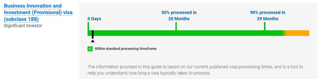 下面,和小澳一起看看2024年近期澳大利亚类签证的审理进度吧! 投资移民类 签证审理时间 截止至2024年4月30日,投资移民类签证审理时间如下: 🔵 188A签证通道: