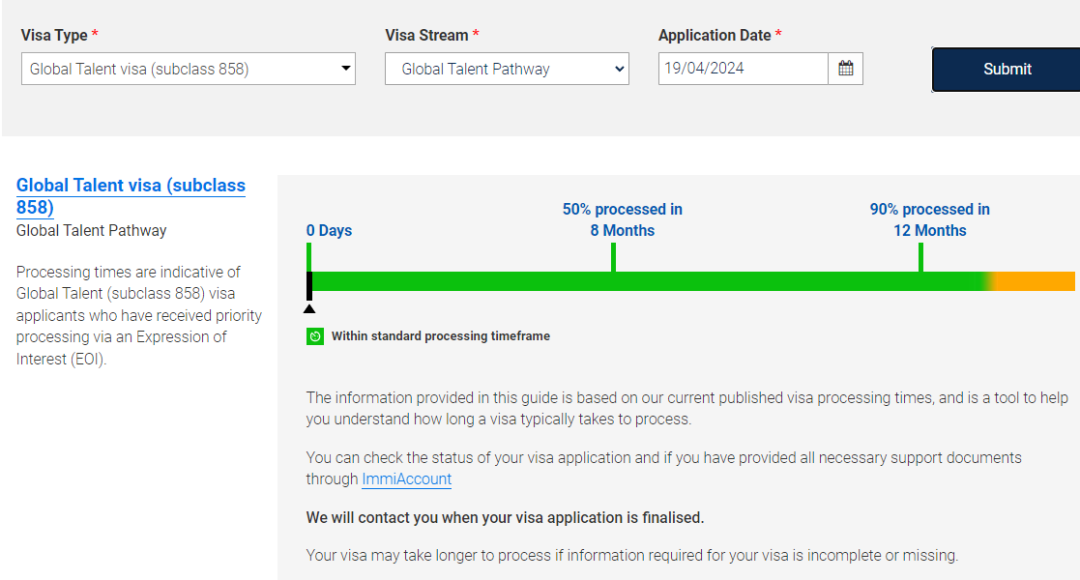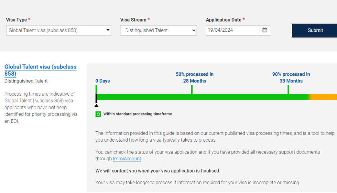全球人才类 签证审理时间 截止至2024年4月19日,全球人才类签证审理时间如下: 🔵 858杰出人才通道: