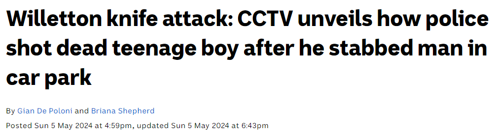 ![]() ![]() //前言// 又是一起恶性伤人案, 华人在停车场被人砍伤, 警方赶到后, 将歹徒当场击毙! #01: 停车场持刀行凶 华人出门就被砍 最近一段时间澳洲频频出现持刀伤人案,就在上周六,珀斯Bunning的停车场中,一名华人就遭到了袭击,被人砍伤! ![]() 图片来源:abc news 澳媒发出的照片中依然可以清晰看到,现场地面上还有血迹残留。 这次袭击案发生在上周六的晚上10点左右,珀斯Bunnings Willetton停车场外,数名华人刚刚从旁边一家中餐馆用餐结束来这里开车回家。 就在一行人有说有笑的时候,突然从旁边阴影处窜出一道人影,紧接着就听到一声惨叫。 随后就看到通行的人群中,有一人受伤倒下,可以清晰看到,一名青少年拿着刀子插在了一名华人的后背上。 然后这名少年将刀子拔出来以后,开始袭击周边其他人。 一名华人女士表示,只看到对方捅人以后,拿着刀子向她冲来,她惊恐尖叫,撒腿就跑。 ![]() 图片来源:abc news 听到尖叫以后,周围路人开始围拢过来,持刀行凶者眼看事情不对,开始逃跑。 而受伤倒地的拿命华人,不仅后背上有一道很长的口子,胸前也被刺伤了,满地都是鲜血。 因为路人已经报警,很快大批警察和救护车赶到现场。 ![]() 图片来源:abc news Bondi的惨案让澳洲各地警方都对持刀伤人案风声鹤唳,得知有人重伤,直接派遣大批警力第一时间赶到现场。 ![]() 图片来源:abc news 令人没想到的是,行凶的那名少年竟然没有远离。警方很快发现他仍在停车场徘徊。 #02: 持刀与警方对峙 当场被击毙 警方发现凶手的踪迹以后,立刻展开了包围,现场监控视频中可以看到警方的行动过程。 ![]() video: https://mp.weixin.qq.com/mp/readtemplate?t=pages/video_player_tmpl&action=mpvideo&auto=0&vid=wxv_3447158376285716490 可以看到警车拦在了行凶者的逃跑道路。虽然视频监控中看不到,但他的手里一直拿着那柄凶器。 ![]() 眼看着已经无法逃离了,他直接拿着刀子与警方对峙,甚至一度还想要攻击现场警员。 在频繁警告无果的情况下,现场警员选择开枪。 ![]() 图片来源:acb news 根据澳媒的最新消息显示,持刀歹徒被警方当场击毙。 根据后续调查显示,这名少年受到了网络上信息的影响,思想变得极端,还有穆斯林社区的成员表示,这名少年确实有发动袭击的想法,还曾经给穆斯林社区内的其他人发过消息。 这些信息也都被发给了警方。 ![]() 图片来源:abc news 西澳州长Roger Cook也在随后的新闻发布会上公开了这件事情,澳洲境内现在的确出现了一些思想极端的组织,而这些组织的成员很多都是青少年。 这一次袭击虽然没有被定义为恐怖袭击,但确实导致人员受伤。 ![]() 图片来源:abc news 最新消息显示,受伤华人经过治疗,情况已经好转。 最后 刚吃完饭就被袭击,事发突然有人受伤,凶徒还险些伤害更多人。 提醒大家,澳洲有一些青少年现在思想极端,可能会发起更多袭击活动,澳洲官方正在严厉追查,希望这些组织都能在短时间内被找出,将这些潜在威胁扼杀在摇篮中! Reference https://www.abc.net.au/news/2024-05-05/willetton-knife-attack-perth-police-shooting-what-happened/103806882 “澳微”视频号上线了! 半分钟纵览奇闻异事、新闻资讯、美食美景, 还有各种你不知道的澳洲冷知识。 移民 要闻 ☆澳配偶移民签证或新增英语要求!审理时间更长,花费更多! ☆史上最全!澳投资移民最新变革细节出炉:配额大增,审理时间缩短! ☆新州491大赦!无需本地工作即可获邀,会计等职业起死回生 ☆疫情之下这个签证开绿灯!独占一半配额,海外也下签,入境不受限 更多好文 点击图片即可查看 ![]() ![]() ![]() ![]() ![]() ![]() ![]() |