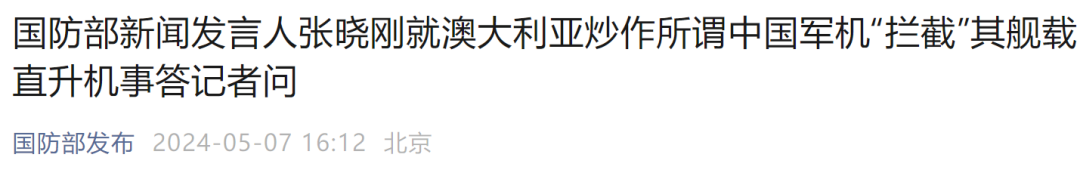 国防部新闻发言人张晓刚就澳大利亚炒作所谓中国军机“拦截”其舰载直升机事答记者问