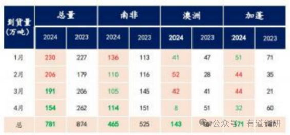 ![]() 更多投研资料点击加入知识星球 ![]() 。转星球内每日更新内容超300条发文章至朋友圈或微信群,即可免费获得一周调研纪要合辑星球内每日更新内容超300条 1. 热点事件 1.1 事件:澳洲 GEMCO 码头受损锰矿发运中断 3月热带气旋梅根导致澳大利亚格鲁特岛GEMCO 码头和道路受损,4 月 South32 表示澳锰矿 停止发货将持续 1 年,受事件影响锰价开始拉升。 1.2 影响:澳洲锰矿缺失量预计近 300 万吨 1)现状:按23 年整体发运量计算来看,格鲁特岛占澳洲整体比例在73%左右,澳洲全年共 发出 744 万吨,格鲁特岛发全球 545 万吨。该港口 2023 年到发中国 418 万吨, 占港口发出 量 76.7%,计算均格鲁特岛发运量 1.15 万吨/天,2024 年到目前已发送 104 万吨。 2)推算:如延续至年底GEMCO 码头不发货,推算澳矿缺失量为 280-310 万吨,影响中国锰 矿整体进口量 10%以内,预计带动其他高品矿价格高位。 1.3 关注:South32 运营恢复情况及公告 1)South32是否愿意承担 1 亿美元左右修复费用; 2)小船短驳效率及启动时间(影响较小)。 2. 矿端供给:进口锰矿占90%, 国产锰矿占 10% 2.1 进口情况 1)总量:2023年锰矿进口 3141 万吨,同比+5%;2024 年 1-3 月,锰矿进口 730 万吨,同比 +0.27%。 2)结构:2023年进口锰矿中南非占 46.6%、澳大利亚占 16.7%、加蓬占 15.6%,其他地区包 括加纳、 巴西、缅甸、赞比亚等。 2.2 到货情况:总量同比出现收缩 2024年 1-4 月,到货总量 781 万吨,同比-10.6%;1-4 月澳洲到货量 143 万吨,同比-14.4%。 ![]() 1)澳洲(15天海运):1-3 月到港暂不受港口因素影响,保持稳定到港,到港缺口在 4 月, 4 月发货 2.2 万吨,同比-95.5%,到货 8 万吨,同比-84.3%。 2)加蓬(50天海运):加蓬 1 季度整体到港数量将保持在年内高位,4 月发货 68.71 万吨, 同比+59.1%,4 月到货 31.9 万吨,同比-46.8%。 3)南非:23年末海外市场好转,导致部分货源流入国外市场,4月到货 114 万吨,同比-24.5%。 2.3 库存情况:锰矿库存处于近四年低位 1)全国库存:目前锰矿库存 511.3 万吨,23 年同期 604.1 万吨,22 年同期 554 万吨,21 年同期 601.3 万吨。 2)天津港库存:目前锰矿库存 369.1 万吨,23 年同期 451.7 万吨,22 年同期 417.7 万吨。 3.硅锰生产:二季度后需求预期好转 3.1 产量:23年锰系产量:硅锰 1152 万吨,占 77%;高碳锰铁 130 万吨,占 8.6%;中低碳 锰铁 54 万吨, 占 3.6%;电解锰 115 万吨, 占 7.6%;其他占 3%。其中硅锰是主要产品,产 量 1152 万吨,折合锰矿消费 2304 万吨。 3.2 产区:内蒙(低电价、低运费优势)约占硅锰产量50%,其他有宁夏、贵州、广西等地。一季度全国产量 262 万吨,同比-4%,内蒙古产量同比+8.65%,宁夏产量同比-20.29%,广西 产量同比-60.56%,贵州产量同比+70.87%。 3.3成本: 1)焦炭:冶炼1 吨硅锰的化工焦用量约在 0.5-0.55 吨;化工焦价格上调 100 元/吨,硅锰 6517 成本约上调 50 元/吨。2024 年一季度因化工焦降价导致的硅锰成本降幅已经达到 300 元/吨左右。4 月 16 日开始新一轮提涨,至此已有5 轮上调,硅锰成本上涨 300 左右。 2)电力: 电耗 3900-4000,电价 0.01 元/千瓦时折算合金成本 40 元/吨。 内蒙古较广西相 差 0.21 元/千瓦时,成本相差 840 元/吨。关注云南丰水期电价下调情况,或带来增产。 3.4 新增产能:近期在建新建硅锰产能282 万吨,投产时间在 2024 下半年和 2025 年,近期 产能增量预期不大。 内蒙古冶炼硅锰合金新增产能共 109.06 万吨,最近投产可能在年底。 3.4 库存:全国预计库存总计85 万吨(一个月产量) 3.5 需求预测:需求预期好转 二季度随着黑色价格的好转,粗钢端需求对于硅锰合金有所好转。如按2023 年中国粗钢产 量 10.1908 亿吨来参考,预计今年持平抑或小幅减量至 10 亿吨左右。剩余三个季度粗钢产 量为 7.4 亿吨左右,对于硅锰需求 650-700 万左右,如硅锰合金 4-12 月按目前月均保持产 量 75 万吨左右计算,则供需可回归稳定阶段。 ![]() 4.价格展望: 4.1 库存方面:目前市场大部分库存为前期6000-6500 元/吨成本生产合金,厂家盈利较好, 但贸易商存在惜售情绪,推动价格升高。 4.2 现货成本:按最新矿价计算,北方成本在7300 元/吨附近,南方成本在 7600-7800 元/ 吨附近。远期看矿价变化是主导因素。 4.3 外部因素:5月底国储可能(10-20 万吨现货,半年交付)。 4.4 外盘报价:加蓬6 月外盘报价预计 6.9 美元/吨度(环比涨 2 美元/吨度,折合人民币18元,折算硅锰成本上升 1080 元)。 4.5 澳矿事件:如延续至年底码头不发货,推算澳矿缺失量为280-310 万吨,影响中国锰矿 整体进口量 10%以内,带动其他高品矿价格高位。 4.6 短期观点:钢厂招标站稳8000-8200 元/吨,盘面上探至 8500 元/吨寻找支撑。 4.7 长期观点:澳矿缺口将延续至三季度中旬,7月开始港口库存缺货显现。行情大概率延 续到三季度后。 Q&A 环节: Q:锰价趋高,赞比亚等地是否会有产量补充? A:受价格影响巴西、赞比亚等产地预期会有补充,但预计不会太大,难以完全弥补10%缺 口,预计供给增幅较慢且在 3 季度后才发运到国内落地。 Q:硅锰库存如何? A:全国硅锰库存总计85-90 万吨(一个月产量),包含交割库 30 万, 自然块 15 万,市场 流通量约在 20-40 万吨。锰矿港口库存 511.3 万吨,对应硅锰大约 200 万吨。 Q:澳洲事件有望在近期内解决吗? A:短期内事件影响确定性较大,二、三季度内缺口难以得到补充。 Q:价格上涨对钢材成本影响? A:锰矿上涨1 元,硅锰上涨 70 元。硅锰价格上涨 1000 元,螺纹成本上升 24 元,对钢材不 具有太大影响。 Q:国内矿企能否超产弥补不足?是否有替代