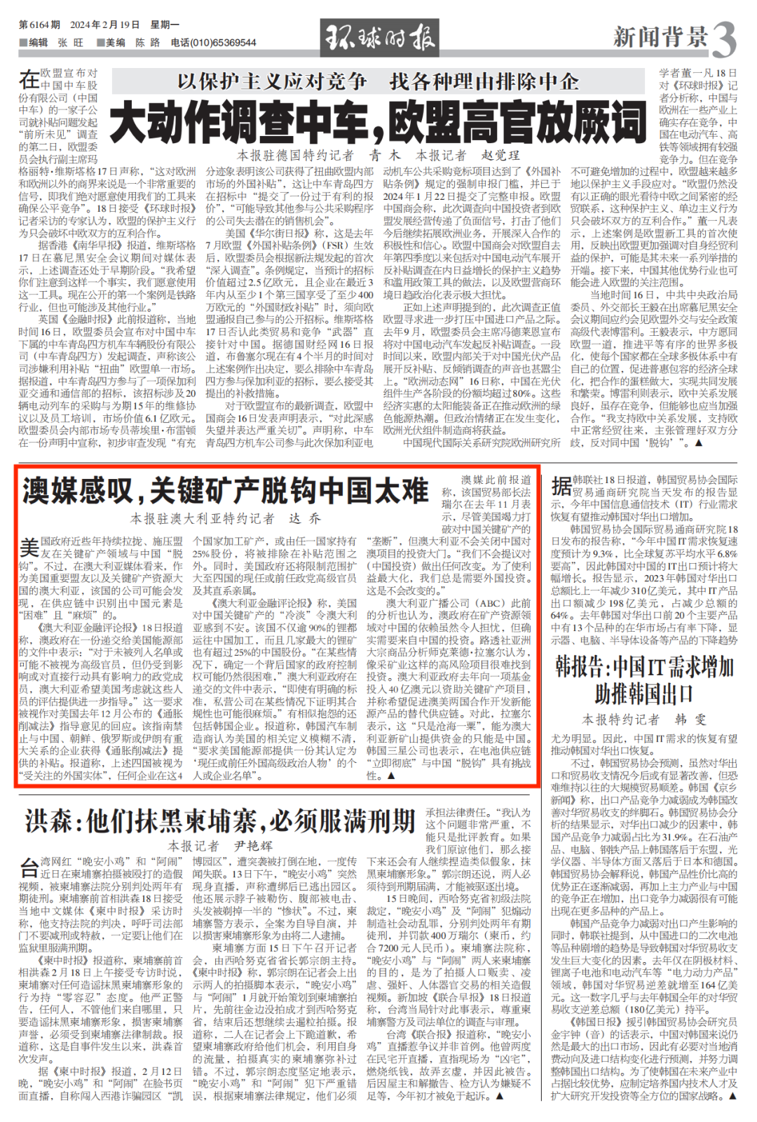 美国政府近些年持续拉拢、施压盟友在关键矿产领域与中国“脱钩”。不过,在澳大利亚媒体看来,作为美国重要盟友以及关键矿产资源大国的澳大利亚,该国的公司可能会发现,在供应链中识别出中国元素是“困难”且“麻烦”的。 《澳大利亚金融评论报》18日报道称,澳政府在一份递交给美国能源部的文件中表示:“对于未被列入名单或可能不被视为高级官员,但仍受到影响或对直接行动具有影响力的政党成员,澳大利亚希望美国考虑就这些人员的评估提供进一步指导。”这一要求被视作对美国去年12月公布的《通胀削减法》指导意见的回应。该指南禁止与中国、朝鲜、俄罗斯或伊朗有重大关系的企业获得《通胀削减法》提供的补贴。报道称,上述四国被视为“受关注的外国实体”,任何企业在这4个国家加工矿产,或由任一国家持有25%股份,将被排除在补贴范围之外。同时,美国政府还将限制范围扩大至四国的现任或前任政党高级官员及其直系亲属。 《澳大利亚金融评论报》称,美国对中国关键矿产的“冷淡”令澳大利亚感到不安。该国不仅逾90%的锂都运往中国加工,而且几家最大的锂矿也有超过25%的中国股份。“在某些情况下,确定一个背后国家的政府控制权可能仍然很困难,”澳大利亚政府在递交的文件中表示,“即使有明确的标准,私营公司在某些情况下证明其合规性也可能很麻烦。”有相似抱怨的还包括韩国企业。报道称,韩国汽车制造商认为美国的相关定义模糊不清,“要求美国能源部提供一份其认定为‘现任或前任外国高级政治人物’的个人或企业名单”。 澳媒此前报道称,该国贸易部长法瑞尔在去年11月表示,尽管美国竭力打破对中国关键矿产的“垄断”,但澳大利亚不会关闭中国对澳项目的投资大门。“我们不会提议对(中国投资)做出任何改变。为了使利益最大化,我们总是需要外国投资。这是不会改变的。” 澳大利亚广播公司(ABC)此前的分析也认为,澳政府在矿产资源领域对中国的依赖虽然令人担忧,但确实需要来自中国的投资。路透社亚洲大宗商品分析师克莱德·拉塞尔认为,像采矿业这样的高风险项目很难找到投资。澳大利亚政府去年向一项基金投入40亿澳元以资助关键矿产项目,并称希望促进澳美两国合作开发新能源产品的替代供应链。对此,拉塞尔表示,这“只是沧海一粟”,能为澳大利亚新矿山提供资金的只能是中国。韩国三星公司也表示,在电池供应链“立即彻底”与中国“脱钩”具有挑战性。 ![]() 环球时报驻澳大利亚特约记者 达乔 审核 | 高雷 编辑 | 张心珮 校对 | 于泽淼 ![]() 了解《环球时报》的三观 请长按下方二维码关注我们or回到文章顶部,点击环球时报 (微信公众号ID:hqsbwx) ![]() |