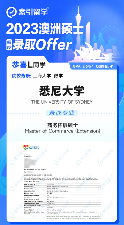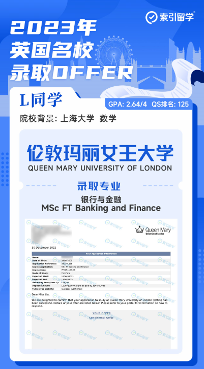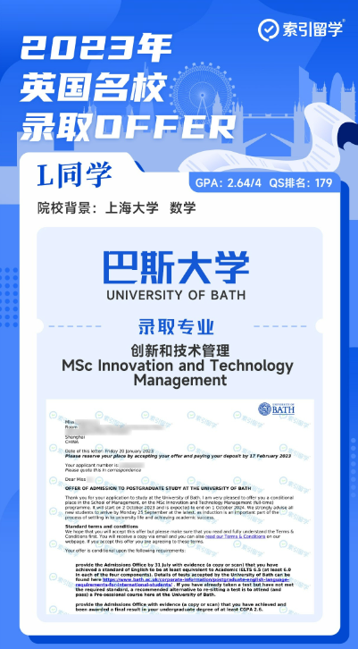 L同学: 本科:上海大学(数学) 均分:2.64/4 硕士offer:伦敦女王大学(英国)、巴斯大学(英国)、悉尼大学(澳洲)