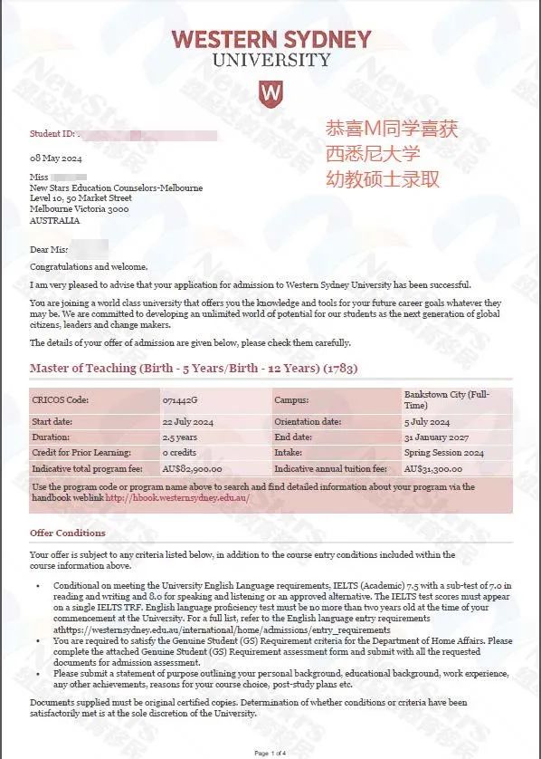 ![]() 本周澳洲名校offer by Krystal 2024第一学期即将结束!第二学期入学在即! 我们来看看本次收到的来自澳洲各地高校的录取通知书! 涵盖计算机、公共健康、护理、教育 等热门专业 需要S2 2024就读的同学们抓紧联系我们哦~ 昆士兰科技大学 护理硕士 01 ![]() 莫纳什大学 公共健康硕士 02 ![]() 墨尔本皇家理工大学 幼教GD 03 ![]() 拉筹伯大学 护理本科 04 ![]() 莫纳什大学 公共健康硕士 05 ![]() 卧龙岗大学 计算机硕士 06 ![]() 堪培拉大学 职业治疗师硕士 07 ![]() 新南威尔士大学 计算机本科 08 ![]() 西悉尼大学 幼教硕士 09 ![]() ![]() 留学 升学 转学 规划 都可以联系Krystal NewStars介绍视频 ![]() video: https://mp.weixin.qq.com/mp/readtemplate?t=pages/video_player_tmpl&action=mpvideo&auto=0&vid=wxv_3348710209837383680 (拍摄于2021年) 学签被拒上诉已增加超翻倍!打赢AAT的核心原因和条件,你OK吗?![]() 各州紧缺的技术人才,你是否能抓住机会?![]() 新州/堪培拉剩余配额足够再发邀请!? 维州用手动发放结束本财年!![]() 移民资讯分享群 2023 第一步:长按添加客服 ![]() 第二步:添加之后请 ![]() ![]() ![]() ![]() ![]() ![]() 留学 移民 签证-我们是专业的 Attention!请认证真NewStars顾问! ![]() 留学移民咨询 各地客服 悉尼总部 ![]() 墨尔本 ![]() 堪培拉 ![]() 布里斯班 ![]() 阿德莱德 ![]() 霍巴特 ![]() 北京 ![]() 广州 ![]() 珀斯 ![]() 下个分部 ![]() 关注NewStars公众号 公众号中回复以下数字或任意关键词(非文章底部评论),获取最及时最专业移民消息!回复【A】查看目录(含所有知识点)! 回复:0000→查看11.16号新政消息(491+技术移民打分) 回复:000 →最新签证/入籍审理等待时间 回复:001→最新189EOI官报 回复:002 →189独立技术移民 回复:003→各州190州担保 回复:004→489偏远地区州担保 回复:005→留学生创业投资移民 回复:006→父母移民签证 回复:007→雇主担保签证 回复:008→485签证 回复:009→配偶移民/加分 回复:010→工作经验加分 回复:011→PY加分 回复:012→NAATI/CCL加分 回复:013→偏远地区加分 回复:014→旅游探亲签证 回复:015→打工度假签证 回复:016→TAFE留学 回复:017→澳洲留学生加拿大移民 回复:018→407培训类签证 回复:019→408短期活动类签证 回复:020→新西兰移民 2024年推荐 ![]() |