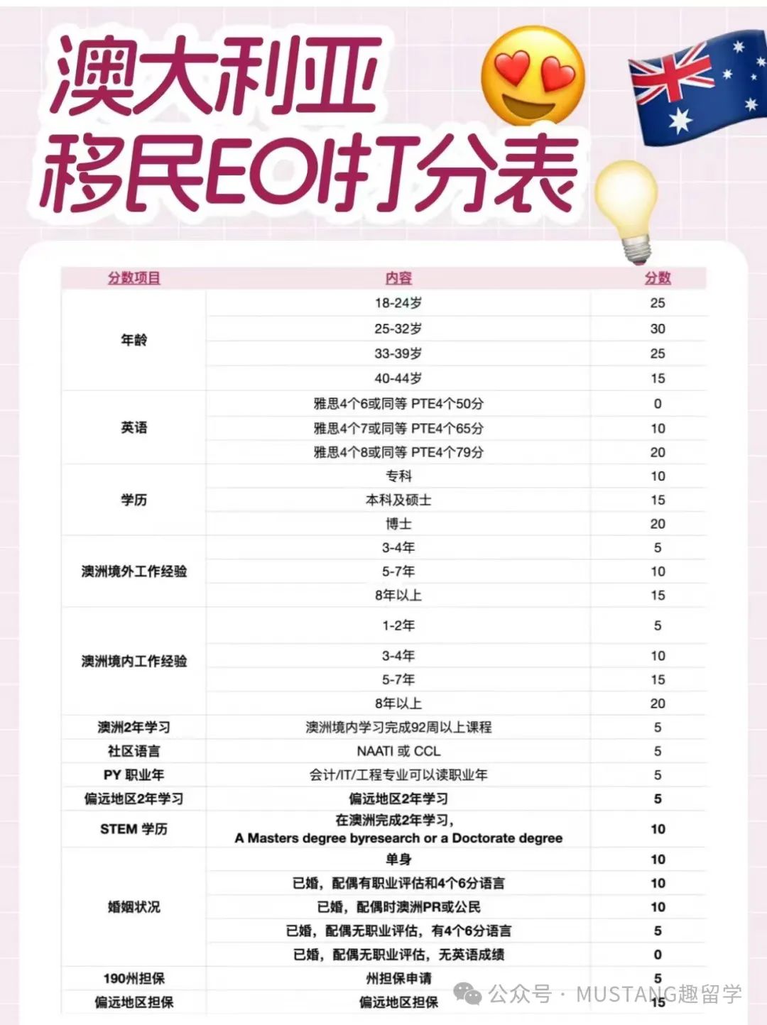 后附澳洲技术移民打分表。