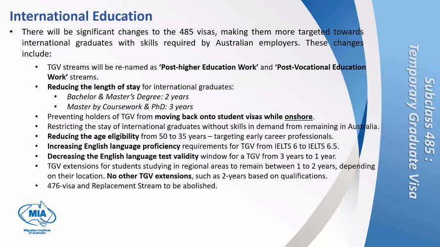 对于国际学生而言,485签证进行重大变革,使其更加针对澳大利亚雇主需要的国际毕业生的技能。这些变化包括: