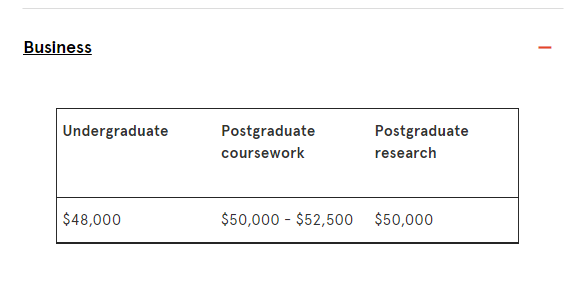 ● 商科类专业国际学生学费:约 51,000 澳元(约 24 万人民币)
