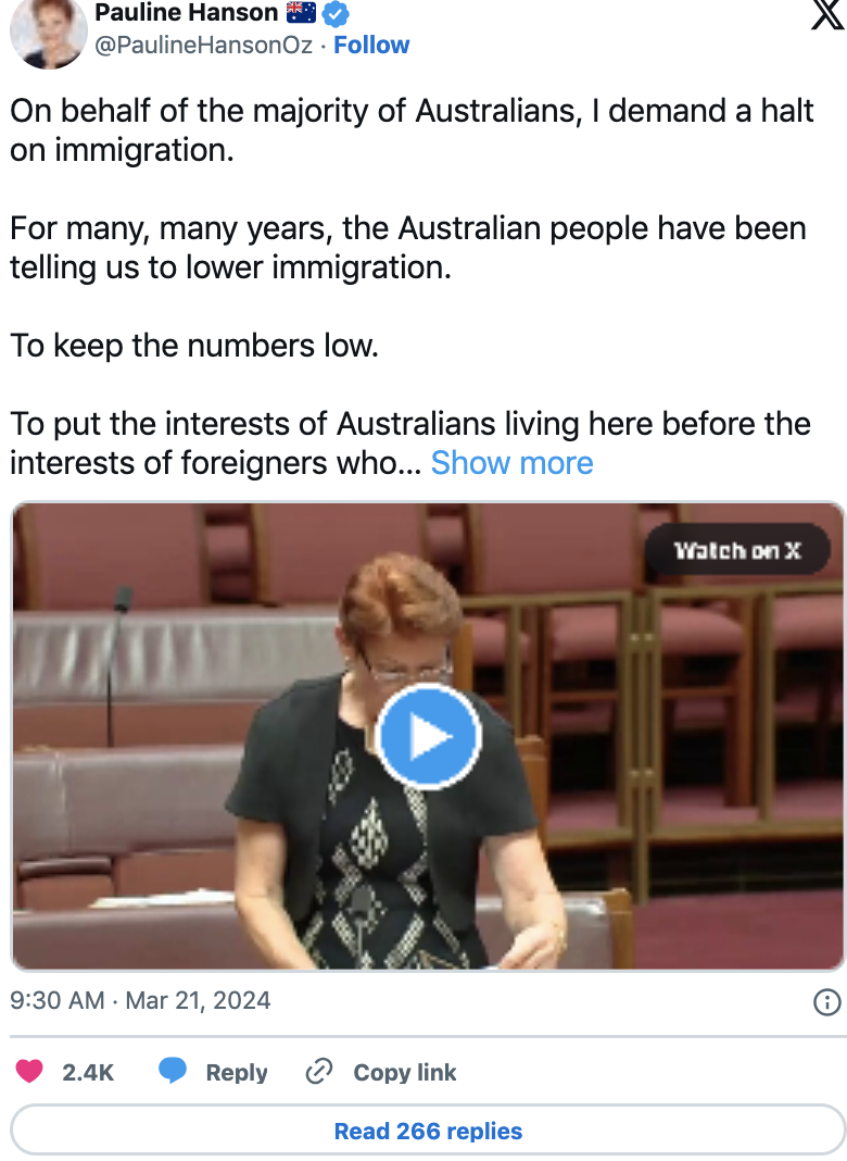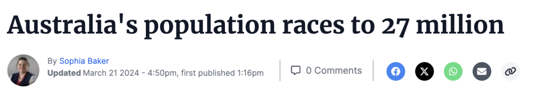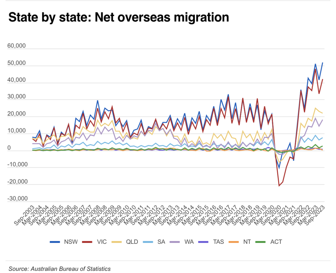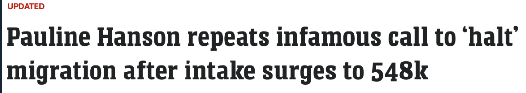 最新数据显示,截至去年9月,澳大利亚的移民人数激增至创纪录的548,800人,这一数字对政府的移民政策提出了严峻挑战。 ![]() 数据显示,海外净移民人数比上一年增长了60.3%,这一大幅增长引发了社会各界的关注和担忧。 一国党领袖Pauline Hanson在参议院的讲话中再次呼吁限制移民,她回顾了她近30年前的警告,认为澳大利亚正在被亚洲移民“淹没”。 她强调了她首次发表演讲时的言论,当时她被指责为种族主义者,但现在她的警告被事实证明是正确的。 ![]() Hanson呼吁进行公民投票,以确定澳大利亚人民认为合适的移民水平,表达了“大多数人”都不想要一个“大澳大利亚”的看法。 澳大利亚统计局发布的数据显示,去年9月的一年内,海外净移民人数增长了60.3%,这是一个惊人的数字。 ![]() 这意味着澳大利亚面临着巨大的移民压力,这对住房、基础设施、政府服务和环境都构成了严重挑战。 政府和反对党都意识到了这个问题的严重性,并在采取措施应对。 政府已经承诺采取措施打击欺诈性签证申请和狡猾的高等教育机构,同时也在对付所谓的“幽灵学院”问题。 针对高风险教育机构的新标准将在未来六个月内开始实施,这是政府为缓解移民带来的压力所采取的一项举措。 ![]() 尽管政府试图通过这些措施来降低移民水平,但反对党仍然施加压力,要求政府在两年内将净移民人数减少一半。 经济学家和分析师警告称,由于移民增加,澳大利亚正面临着严重的住房和租金危机。 政府发布了一项移民战略,承诺到2025年将净海外移民人数减少50%,这将是澳大利亚历史上最大规模的移民下降,如果实现的话将会对社会产生深远影响。 除此之外,据报道,根据澳大利亚统计局的最新数据,2023年澳大利亚人口将增长2.5%。 ![]() 截至9月30日,澳大利亚人口达到2680万,同比增加65.98万人。 ABS人口统计主管Beidar Cho表示,虽然所有州和地区的人口都有所增加,但西澳大利亚州的人口增长最快。 “西澳大利亚州的人口增长最快,比上一年增长了3.3%,”她说。 ![]() “其次是维多利亚州,增长了 2.9%,昆士兰州增长了 2.7%。” 根据联邦政府人口中心的新数据,预计未来十年,向西澳的海外移民人数将保持高位,这将西澳在全国移民中所占的比例从6.6%增加到10%。 研究发现,人口增长主要是由海外移民推动的,其中海外移民占83%,而其余的则被认为是“自然增长”。 ![]() 西澳人口呈老龄化趋势,为了应对这一挑战,珀斯希望吸引更多人口,计划在2036年将珀斯的居民人口翻一番。 Cho表示:“海外净移民人数较上一年增长了60%,主要是由于海外移民人数增加(增长34%),其中主要是持有临时工作或学习签证的人数。” ![]() 澳大利亚净海外移民人数为 548,800 人,其中海外移民抵达人数为 765,900 人,出境人数为 217,100 人。 1 月 24 日,人口非正式地达到 2700 万,ABS 人口时钟已经超过了这一数字。 中澳之间及海外新闻热点,👇 第一时间内容请点下方关注获取 👇推荐阅读 【最新】重磅官宣!免签!澳洲华人回国一线城市,30天+能延期!今天,中澳之间还有更多好消息! 【关注】重大突破!这次,孙铊完了!澳洲国会官方通过请愿,只有28天! 【刷屏】炸了:大批华人集体告上澳洲政府,誓要把这个华人驱逐出澳洲! 【热点】Vince新瓜+大反转!搞“高利贷”,哄骗男生割掉下体!UCSD回应!网友:看完睡不着了... 【重磅】UCSD留学女博士出轨门+Vince合集!一文全部看完 【热议】UCSD大瓜变大型闹剧!大结局后,Vince新的撕逼开始了... 更多新闻热点追踪👇 请点下方关注获取 👇 |