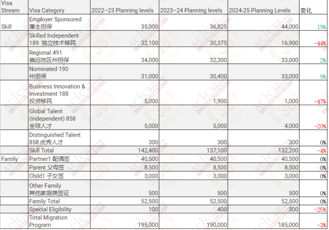 ![]() ![]() 2024-25财年预算案 随着澳洲政府昨晚公布的新财年预算案,移民申请者迎来了2024-25财年移民政策的一系列重大变革。这些变革不仅关乎技术移民、家庭团聚,更涉及到签证类别的重新分配和申请条件的调整。接下来,让我们一起详细解读这些新政,为您的移民之路提供权威指导。 ![]() NEWS 技术移民配额调整 本财年技术移民配额较上财年有所减少,其中189独立技术移民配额遭遇大幅削减,从30375个降至16900个,跌幅高达44%。与此同时,190和491州担保签证配额略有增加,各增加至33000个。对于希望通过雇主担保途径移民的申请者来说,好消息是482雇主担保签证的工作经验要求将从2024年11月23日起由2年降为1年,为更多人提供了机会。 ![]() NEWS WHV打工度假签证变革 针对来自中国、越南和印度的WHV(打工度假)签证申请者,澳洲将实施抽签制度。这一变革旨在应对申请人数过多的情况,确保资源的合理分配。每次抽签费用为25澳元,成功中签者将有机会获得签证。 NEWS GTI与投资移民整合 为了吸引更多对国家关键领域至关重要的杰出人才,澳洲政府将全球人才签证(GTI)和投资移民整合为新的国家创新签证(National Innovation Visa)。这一新签证将取代现有的GTI签证,为符合条件的申请者提供更为便捷的移民途径。 NEWS 家庭类移民配额维持稳定 在家庭类移民方面,配偶、父母、子女等类别的配额均维持去年水平,未做大的调整。这一政策旨在保障家庭团聚的权益,让更多家庭得以团聚在澳洲这片土地上。 NEWS 政府加大支持力度 为了保障移民的权益和促进就业,澳洲政府将投入大量资金用于信息和教育活动、数据匹配项目等。这些项目旨在向移民工人提供准确的工作场所保障信息、减少剥削现象并促进澳大利亚劳动力市场的健康发展。 NEWS 州际移民预测 预算案预测未来几年将有大量州际移民。其中昆州将成为最大受益者,预计下一财政年度的人口将大幅增加。而新南威尔士州则可能持续减少居民数量。这一趋势将对各州的经济发展和人口结构产生深远影响。 NEWS 永久移民计划与净移民人数调整 政府将2024-25年度的永久移民计划设定为185,000个名额,其中技能类签证占约70%。此外,政府还计划将永久移民计划的规划期限从一年延长到四年,以更好地满足澳大利亚的长期技能需求。同时新预算案显示,年度净移民人数将削减至26万人,较疫情后的高峰时期大幅减少但比疫情前要多。 ![]() 教育与留学政策调整,留学生注意! 在本次财年预算案公布的内容中,澳大利亚政府针对国际教育政策也进行了一系列重要调整,这些变革旨在确保国际教育机构的“完整性和可持续性”,同时促进国内产业和劳动力市场的健康发展。以下是本次政策调整的主要内容。 NEWS 国际学生招生名额限制 为确保国际教育产业的可持续发展并缓解全国住房需求,澳大利亚政府将对1400所注册招收海外学生的大学和学院设置国际学生招生名额上限。教育部长将有权要求教育机构限制每年接纳的新国际学生数量。若大学希望录取超出限制的国际学生,需建设新的学生宿舍,以造福国内外学生。政府尚未公布各教育机构的具体留学生招生上限,但这一政策无疑将对国际学生市场产生深远影响。 NEWS PRISM系统改革 为确保国际教育行业的廉洁性,澳大利亚政府将在下一财年投资260万澳币对PRISM系统进行改革。PRISM系统是澳大利亚教育部用于出具CoE相关材料的系统,改革将有助于提高系统的透明度和效率,进一步保障留学生的权益。 NEWS 实习补助政策 好消息是,移民专业中的三大热门领域——教育、护理/助产和社会工作,其实习学生将可领取每周319.50澳元的联邦实践补助金。这一政策旨在缓解实习生经济压力,支持这些领域的技能短缺问题。申请者需接受资产测试。 NEWS 清洁能源技能学徒补助 政府还宣布,愿意学习清洁能源技能的学徒将有机会获得高达1万澳元的补助。此举旨在鼓励更多人投身清洁能源行业,促进可持续发展。政府计划扩大补助范围,将汽车、电气、住房和建筑行业的学徒也纳入其中。 NEWS TAFE和VET免费名额 为支持住房建筑行业发展,联邦政府将投入9000万澳元提供15000个TAFE和VET的免费名额。此外,从2025年开始,政府还将额外提供5000个学徒名额,以吸引更多劳工加入该行业。 NEWS 减债措施 政府已承诺降低澳大利亚高等教育贡献计划(HECS)的债务,并将这一减债措施扩展到职业技能培训(VET)学生贷款及澳大利亚学徒支持贷款。这一政策将为广大学生和家庭减轻经济负担,促进教育公平。 总之,本次澳大利亚教育与留学政策调整旨在优化国际教育资源配置,促进产业和劳动力市场发展。广大留学生和教育界人士需密切关注政策变化,合理规划留学和职业发展道路。 ![]() ACIC是一家世界闻名的教育咨询公司。作为澳洲所有高校的官方招生中心,ACIC专注于为国际留学生提供澳大利亚教育咨询服务。成立于1988年,ACIC已经成功为来自40多个国家的9万多名学生申请来到澳大利亚留学,同时我们也帮助上万名学生成功获得工作签证和各类永居签证。 扫描下方二维码 现在就和我们的顾问老师取得联系 ![]() ![]() ![]() |