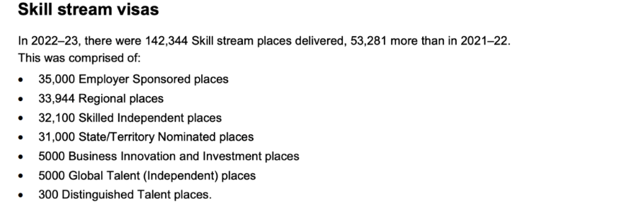 ![]() 从国别分布来看,2022-23年度的技术移民中,前三个国家的公民占据了超过四成(42.9%)的名额。其中,印度以36,251个名额(占25.5%)位居第一,中国和尼泊尔分别以13,532个(9.5%)和11,304个(7.9%)名额紧随其后。值得一提的是,技术移民类别在整个移民计划中的占比达到了73.0%(包括子女签证),相比2021-22年度的62.0%有了显著提升。这一类别的签证不仅包括满足主要标准的主申请人,还包括他们的随行家庭成员,如配偶和子女。在这142,344个技术移民名额中,主申请人占比不到一半(48.4%),但他们在总移民计划结果中占据了超过三分之一(35.3%)。 雇主担保签证 在2022-23年度,澳大利亚的雇主担保签证名额达到了35,000个,较2021-22年度的26,103个名额增加了34.1%。这一增长反映了澳洲对技术劳动力的持续需求,尤其是在特定行业。 在这35,000个雇主担保名额中,主申请人占比为43.2%,即15,127个名额。值得注意的是,前三个提名职业的申请人占据了雇主担保主申请人的27.5%。具体来看,这些热门职业包括: