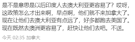 ![]() //前言// 最新数据出炉! 澳洲人口突破2700万大关, 澳洲政府坐不住了, 要控制移民? 对于大量印度移民涌入, 却坐视不理... #01: 澳洲人口超2700 万 政府表示需要控制移民 根据澳大利亚统计局的最新数据,澳洲人口今年正式超过2700万! ![]() 图片来源:news. au.com 在截至3月31日的12个月内,澳大利亚人口增长了2.3%,增加了 615,300人。 不出意料的是,这其中,移民占了大头。 尽管移民人数从去年9月的559,000人下降到3月份的509,800人,但澳洲的人口激增依旧是主要依靠移民。 “净海外移民推动了人口增长的83%,而出生和死亡,即所谓的自然增长,只占另外17%,” 澳大利亚统计局人口主管 Beidar Cho 说。 这个数字一公布,不少澳洲政客坐不住了,表示要限制移民! 教育部长Jason Clare表示,澳大利亚的移民数字“太高”,他认为移民潮主要源于国际学生、背包客的涌入和签证逾期居留的人。 ![]() 图片来源:news.yahoo.com Clare先生在Sunrise上发表讲话时表示,政府需要控制这些数字,国际学生上限就是政府的行动之一。 “移民率太高了,我们必须降低它,”他说。 不过,倒也不是这次数据公布才有这种限制移民的声音。 之前各种要求限制移民数的声音和政策从未停止。除了国际学生上限之外,各种缩进移民的政策也层出不穷。 甚至,澳洲社会的各种问题,比如工作机会短缺,住房危机等等,都得赖在移民身上。缩减移民还成了2025年澳洲大选中各个政党拉选票的方式。 不少想要移民或者留学的华人日子恐怕要越来越不好过了,然而印度移民的境况却完全不同。 #02: 最新数据公布 印度占移民大头 说到澳洲移民多,就不能不提到其中一个备受关注的群体——印度移民。 印度作为目前澳洲最大的移民来源国,就光在2023年,就有超过80万澳洲人的出生地是在印度。 1996-2006这10年,印度来澳人数翻了一番。2006-2020这14年,印度人来澳人数翻了两番。2021年,印度成为澳洲第二大移民国家。 9月17日是澳洲的公民日,也是澳洲启动入籍仪式的75周年。 前天刚刚公布的数据显示,截至今年8月31日,已有超过115,000名移民成为澳大利亚公民,主要移民的来源地也大不相同。 此次移民数据中,印度移民占据15,576人,占总数的13.51%。新西兰移民略多,约16,113名,占总数的13.97%。 ![]() 图片来源:sbs 中国位列第五,共4,844人,占比4.2%。 虽说总数上印度不是最多,但是从各个州的层面来看,印度绝对有着超强存在感。截至8月31日,在今年新获公民身份方面,印度移民在八个州和领地中的四个都位列第一。 ![]() 图片来源:sbs 就拿维州来说,在2020年,印度人成为维州最大的移民社区,自此之后越来越多的印度人来到维州。 印度和维州的联系也日益密切,维州州长Jacinta Allan 本周还到访印度,加强了维州与印度的联系。 大多数从印度移民过来的人首选维州,特别是墨尔本,维州印度移民人数最多,现已超过30万人。 2016年至2021年期间,超过90,000名在印度出生的人抵达维州,在维州人口增长的里程上,印度人绝对占有重要地位。 来自印度北部勒克瑙的夏尔马先生表示,他目睹了印度移民的“激增”,尤其是为了填补技能短缺。 ![]() 图片来源:heraldsun.com.au 这么多印度人源源不断的来到澳洲,政府又说要限制移民,那么针对印度人,政府又是怎么做的呢? #03: 说好限制移民 却又把印度纳入澳签证正式立法 前两天,澳洲政府却突然宣布:印度正式加入澳洲打工度假签证的行列! ![]() 图片来源:The Australia Today 根据澳大利亚移民法的最新修订,2024年9月16日起,印度将正式被纳入澳大利亚工作与度假签证(Subclass 462)。 这下不出意外的话,又将有一大批印度人涌向澳洲了! 根据最新的签证安排,符合以下多个资格条件的印度公民就能够申请打工度假签证: · 持有有效的印度护照; · 申请时年龄在18至30岁之间; · 至少完成两年高等教育; · 具备功能性英语水平; · 拥有足够的资金支持在澳大利亚的生活,并符合澳大利亚政府规定的健康和品格要求。 ![]() 图片来源:The Australia Today 这次修订还为印度籍豁免了部分申请要求,例如无需提供外籍GOV的支持证明,在简化申请流程方面为申请人提供了便利; 另外修订后的法律还明确了印度申请人需要具备的教育资格。 报道称,这一最新立法允许印度护照持有者根据修订条件申请462类工作与度假签证,旨在促进两国青年之间的更大流动性。 ![]() 图片来源:homeaffairs.gov.au 得知这个消息之后,最开心的要数加拿大华人: 太好了!这下印度人都要跑去澳洲了! ![]() 图片来源:小红书 “阿三们开心死了我身边阿三天天说澳大利亚工资高气候好,还瞧不上加拿大。这下好了。” ![]() ![]() ![]() 图片来源:小红书 “那赶紧劝劝你身边的阿三去澳洲,放过我们这个宁古塔了求求。” ![]() 图片来源:小红书 而澳洲的华人则表示:你不要过来啊! ![]() ![]() 图片来源:小红书 “妈蛋,这移民局绝对混进不少他们的人了已经。” ![]() 图片来源:小红书 “迟早得把澳洲统治了。” ![]() 图片来源:小红书 还有人指出,给印度人打工度假签,这跟给他们PR有什么区别? 毕竟在澳洲的移民系统没改革,学生签证政策没收紧之前,滥用签证留在澳洲问题最严重的群体之一就是印度“留学生”。 现在留学生签证受到了限制,打工度假签恐怕又会让他们开辟出一条新的留澳之路。 ![]() 除此之外,去年澳洲还推出MATES试点计划,每年允许3000名来自印度顶尖学校的毕业生