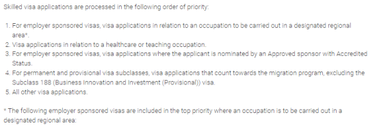 | 点击蓝字 关注我们 澳洲新财年,澳大利亚移民部长签署了一份新的Ministerial Direction No. 105指导文件,公布最新的签证审理优先级别。无论是正在递交移民签证申请,还是正在规划澳洲移民的朋友,都可以根据其优先处理级,参考得知澳洲目前更加倾向哪类签证人才,以及申请者有哪些特点更受澳洲移民局青睐。 ![]() 首先,我们可以看到澳洲技术移民签证(189/190/491),雇主担保签证(186/482/494)都在签证优先处理级列表内,这两类签证仍然是申请人获得澳洲移民配额的主力。 ![]() 根据105号文件内容,澳洲技术移民类签证将依照先后顺序获得审理优先级: ![]() 针对雇主担保类签证(包括186/187/482/494签证),在澳洲偏远地区进行从事提名职业的申请人将享受最高审理优先级。 大力发展偏远地区 对于偏远地区域的雇主担保类别申请者,澳洲将其列为最高优先级,也意味着澳洲24-2025新财年欢迎更多愿意前往澳洲偏远地区工作的海外各类专业人士或技术工人,从而满足区域性劳动力短缺的现状。 注意:偏远地区是指除了悉尼、墨尔本、布里斯班以外的地区 健康医疗和教学类的签证申请,具体职业包含以下: ![]() 健康医疗以及社会服务人员 澳洲对于健康医疗以及教学职业相关的职位极为短缺,为填补澳洲当地部分职业劳动力的短缺,以下职业申请人或许更有机会获得澳洲移民配额,轻松拿到澳洲永久身份: 1)Health Professionals健康医疗专业人士。其中包括医生,药剂师,护士,助产士,牙医等医疗健康相关专业人士; 2)School Teachers学校教师; 3)Health and Welfare Support Workers健康与福利支持工作者; 4)Child Care Centre Managers 托儿中心经理人; 5)Medical Scientists 医学科学家; 6)Counsellors (为社会、心理等问题提供咨询的)咨询师; 7)Psychologists 心理学家; 8)Social Workers 社工; 9)Medical Technicians 医疗技术人员; 10)School Principal 校长; 11)Child Care Worker幼儿工作者/幼教; 12)Aged or Disabled Carer 年老或失能者看护; 13)Nursing Support Worker 护工; 14)Personal Care Assistant个人看护助手。 以上职业申请者可以考虑通过澳洲技术移民(签证189/190/491)或者雇主担保(签证186/482/494)移民澳洲,但可以申请哪类签证还得具体看个人工作背景以及英语能力,如果有任何疑问,欢迎随时咨询私信我们。 澳创海外Carissa ![]() ![]() 18620396527 18620396527 ![]() ![]() 澳创专注澳洲,新西兰,英国,美国和香港移民留学,欢迎扫码咨询 澳洲技术移民汇总 1、【澳洲491签证详解】选择更好移民的偏远地区但是可以不待在那里吗?当然可以啦! 2、【科普】澳洲技术移民方式详解,189独立技术移民、190及其491州担保签证各自的要求汇总 3、澳洲州担保技术移民190签证申请详解,迅速抓住移民良机! 4、官宣!澳州2024-2025新财年各州州担配额正式公布~西澳异军突起,成为偏远地区第一! 5、【澳洲MINT项目】人在国内申请,50分就可以拿澳洲身份的方法! 6、更新了!技术移民职业清单之【北领地篇】,你的职业在列吗? 澳洲雇主担保移民汇总 1、【482工签上】澳洲482工签最详细解读,关于工签有效期,雇主,申请人权益,转永居要求,办理周期等等,建议收藏 2、澳洲雇主担保移民186签证申请流程和相关费用详解 3、澳洲3类新财年爆火的雇主担保,申请要求是什么,申请难点在哪里? 4、年龄不小英语不好,还能移民澳洲吗?看看DAMA⏪ 澳洲职业评估汇总 1、【蓝领职业留澳必看系列】澳洲TRA职业评估详解 2、技术移民快过看来~澳洲VET职业评估成功案例详解! 3、【成功案例】VET A类职业评估下签,作为澳洲最大的职业评估机构,VET的要求有哪些?难点? 澳洲其他类别移民汇总 1、澳洲有亲属的快看过来~澳洲家庭类、留学签证汇总 2、澳洲家庭团聚类——永居配偶签证100详解 3、澳洲家庭团聚类——临时配偶签证309详解 4、澳洲居民往返签证155详解(上) 5、父母移民澳洲的最优解 澳洲移民知识汇总 1、【澳洲留学必看】想去澳洲留学移民,了解澳洲教育体系VET、TAFE、college、UNI、diploma和本科是第一步! 2、澳洲移民最后窗口期!GI对澳洲打分制改革做出预测,一旦实施将不利好国内申请人! 3、澳洲护照免签国家列表及澳洲护照的好处 4、【留学移民必看】落地澳洲必办的6件事 5、35岁+想润澳洲,还有哪些方法? 6、我想移民澳洲,哪种方式是最快的?费用最少门槛最低又是哪个呢? 澳洲不同职业移民 1、澳洲移民新一轮的吉祥三宝——工料测量师,移民路径有哪些?要求如何? 2、金融人如何DIY移民澳洲?大概流程是怎样的?需要做什么准备? 3、【IT职业如何移民澳洲】可申请的职业有哪些?能走什么类别的签证?需要提供什么? |