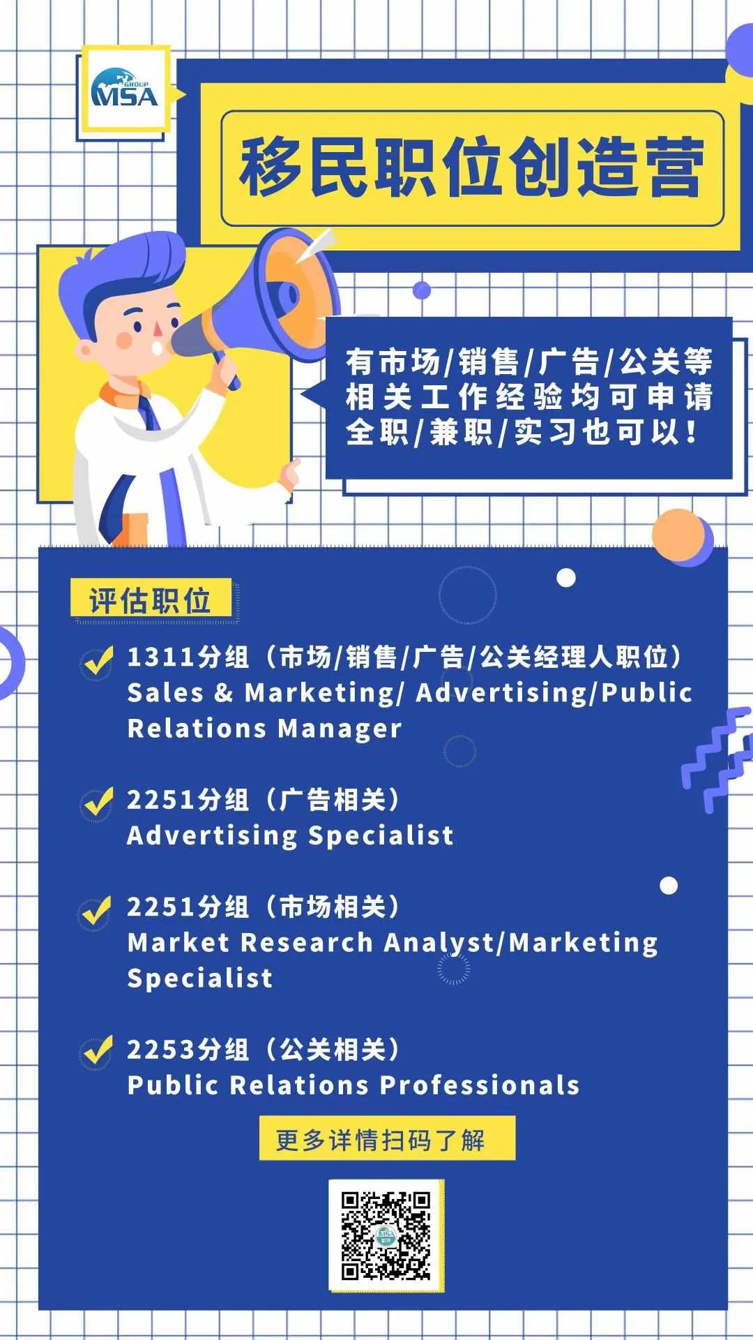 ![]() ![]() ![]() ![]() ✨✨✨该提名职业可走的通道: 190州担保技术移民、491偏远地区州担保技术移民、186雇主担保签证、482雇主担保工作签证、494偏远地区雇主担保签证 ✅通道一:打分制技术移民: 190州担保签证、491偏远地区州担保签证 对于澳洲的打分制技术移民有几个所需的要求: 1、年龄低于45周岁; 2、英语要求雅思不低于6分(托福或PTE同等水平分数);3、EOI打分65分以上;4、有一份与提名职业高度相关的职业评估。 ✅通道二:雇主担保-482雇主担保工作签证: 💥482签证的整体要求(各类别都需要满足) 1、获得有担保资格的雇主的职位提名;2、2年相关工作经验;3、英语要求雅思5分且单项不得低于4.5分(托福或PTE同等水平分数);4、满足其申请签证类别的额外要求。 -494偏远地区雇主担保签证 💥对于澳洲的494有几个所需的要求: 1、年龄不低于45周岁; 2、英语要求雅思不低于6分(托福或PTE同等水平分数); 3、获得有担保资格的雇主的职位提名;4、有一份与提名职业高度相关的职业评估。 各州都有不同的州担保政策和职业清单,而且各个申请人情况不一样,可以站内联系,一对一帮你进行评估。职业评估是移民的第一步,也是最重要的一步! 225113 市场营销专员职业描述 Job description市场营销专员辨别市场开拓机会,并为某组织的商品和货物定价和促销以及市场开拓计划的发展,协调和执行方面提供建议。Identifies market opportunities and advises on the development, coordination and implementation of plans for pricing and promoting an organisation's goods and services.Previously referred to in ASCO as: 2221-13 Marketing Specialist.225113 市场营销专员职位别名225113 市场营销顾问 Marketing Consultant225113 市场营销协调人 Marketing Coordinator 225113 市场营销专员 Marketing Officer 225113 品牌经理 Brand Manager 225113 统筹经理 Category Manager 225113 产品经理 Product Manager 225113 销售促销专员 Sales Promotion Officer 225113 市场营销专员技术等级 Skill level市场营销专员的技能等级为1 (ANZSCO Skill Level 1)225113 市场营销专员所属职业列表Short-term Skilled Occupation List225113 市场营销专员澳洲技术移民职业评估 Skills assessment authority移民澳洲时,225113 市场营销专员 Marketing Specialist 属于 VETASSESS B类职业,需要本科或更高级学位(Qualification/s assessed at Australian Bachelor degree or Australian higher degree level),如果取得学位的专业与提名职业相关需要近五年内最少有一年毕业后相关工作经验。如果学位专业不是高度相关,但有相关专业专业的专科,高级专科,副学士或研究生学历,需要近五年内至少二年本科毕业后相关工作经验。如果学位专业不是高度相关且没有其他相关专业学历,则需要近五年内至少三年毕业后相关工作经验。职业评估不需要雅思,评估函有效期为3年。本科毕业前的工作经验符合条件的也可以算作有效工作经验。相关职业225111 广告专员 Advertising Specialist225112 市场研究分析师 Market Research Analyst 移民不打无准备的仗,需要提早做规划,职业评估作为移民和找工作的重要一环,也需要尽早安排。有关移民和职业评估的任何问题欢迎大家私信 ![]() 要移民澳洲,直接找创梦澳洲专业移民助理帮你评估并制定计划哦~ ![]() ![]() ![]() ![]() ![]() ![]()