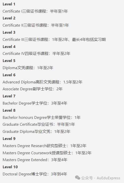 3. Master研究生课程: 说起二者的区别,首先要了解一下AQF,全称Australian Qualifications Framework,是澳洲独有的“澳洲学历资格审核体制”。 ![]() 从AQF上可以看出,Bachelor honours低于Master。Master课程通常为两年,一些情况下(转学分或者学校要求不同)会有1.5年甚至1年的学制。Master课程学习内容就视乎学生选择了什么专业,这可以与本科学习相辅相成,也可以与本科学习毫不相关(但要看具体学校及课程的入学要求) 如何选择Honours Degree和Master Degree呢? 读Honours Degree的优势: