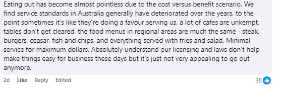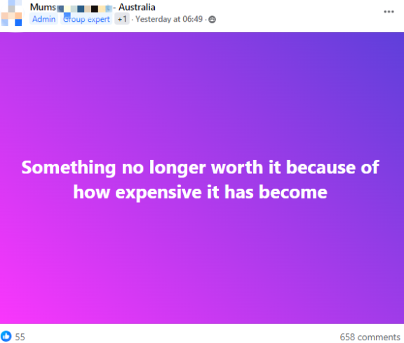 ![]() ![]() 👆现在转贷,获取低至5.59%的利率,高达3288澳币的现金奖励 ![]() ![]() ![]() ![]() ![]() ![]() ![]() ![]() ![]() ![]() ![]() ![]() ![]() ![]() ![]() ![]() ↑↑已有50000+墨尔本家庭点击关注我们↑↑ 澳洲生活成本危机仍在继续,近日在社媒群组中,有妈妈问: “现在有啥东西已经太贵,不值得去花钱了?” ![]() 01. 这一问,一石激起千层浪,引来近700妈妈的留言: 有人一阵见血地说“孩子”,但其实真的不是玩笑: 孩子们……😅开玩笑。去度假。总是花很多钱,而且似乎总是不顺利,所以最终只会更加紧张。 ![]() 孩子。 ![]() 奶昔。最近我们去咖啡馆时,我的孩子们要了一杯,每杯 10.50 澳元。有了 3 个孩子,我决定在家里随时准备一桶香草冰淇淋和各种配料 😫给他们买一瓶啤酒会更便宜,哈哈。 ![]() 不久前,我不再在周末给孩子们买一块巧克力了。每块 6.50 澳元,x 3。是的,不用了,谢谢。 ![]() 也有人说房租贵: 房租。它占了你工资的一半以上,而且房东提供的空调还不能正常工作。 ![]() 吐糟最多的还数外出就餐或者外卖: 外出就餐。一家四口吃午餐或晚餐要 120 多澳元,我会自己做,谢谢 🤷🏻♀️ ![]() 外卖咖啡。 ![]() 因为性价比低,外出就餐几乎变得毫无意义。我们发现澳洲的服务标准多年来普遍下降,有时就像他们在帮我们做一件好事,很多咖啡馆都很凌乱,桌子没有清理干净,食物菜单也大同小异 -- 牛排、汉堡、凯撒沙拉、炸鱼和薯条,所有食物都配有薯条和沙拉。最低限度的服务,最高的价格。完全理解我们的许可和法律,现在无助于让生意变得容易,但外出就餐已经没有什么吸引力了。 ![]() 外出就餐。当你有一个 4 人以上的大家庭时,所有东西加起来会非常贵,一顿饭就相当于半周的高价杂货的钱。两者价格都过高,但杂货保质期更长😂 ![]() 我想念海鲜……听起来很小气,但已经好几年了。做眉毛、剪发和染发……都是我以前做的事。软饮料和果汁到都还买得起,老公开车上班,他说从路边小店买一袋 Allen's 棒棒糖比从 Woolies 买还便宜。 ![]() 食物!前几天,我看着我丈夫和大儿子吃了一整只鸡和 1 公斤烤土豆,我非常想给他们每个人吃我最小的孩子的多动症药物,来节约食物成本😂😂😂🤔 ![]() 外卖,再也不买炸鱼和薯条了。点了 3 条鱼、小薯条和一份鱼饼,一共 100 澳元。 ![]() 有人完美总结: - 医生预约、牙医或看专家,这些费用太高了……即使找医疗保险报销了,你仍然需要先支付 80-100 澳元,才能拿回 50 澳元; - 做指甲、睫毛、头发或眉毛;我以前喜欢虔诚地修指甲,但现在我再也不能花 70 澳元买一整套带虫胶的指甲了; - 公路旅行;带孩子开车出去玩的日子已经一去不复返了,如果我们在目的地吃饭,燃料和食物的成本太高了; - 块状奶酪,真是个笑话!我们现在吃 4 澳元的加工奶酪片,真让人沮丧哈哈; - 一年一次的假期;但话虽如此,我们刚刚预订了 2026 年 1 月的迪士尼游轮……但这给了我们 12 个月的时间来还清。 否则,我们再也负担不起每年去度假的费用了;我们必须每两年去一次,然后慢慢还清。 - 租金!我们很幸运,一家人有地方住,但房租上涨可不是什么好事! 我们的房租刚刚上涨了每周 105 澳元(两周 210 澳元)。这笔钱本来可以用于养育孩子,但现在却要用来租房了。 而获赞最高的一条评论,真的扎心了: 离开自家房子! 有人回复说:这很好笑,但却是事实 🤣🤣 ![]() ...... 看了真让人感概,澳洲的高生活成本真让人“水深火热”啊!而近日小红书上,澳洲华人朋友的吐糟也不少: 02. 涂脸保湿的只买5折的玉兰油,要是用完了超市又没有打折的,连涂脸保湿一下都免了,看看有多惨。 终于找到一样的了!以前雅诗兰黛面霜,现在玉兰油大红瓶用了3-4瓶了。 ![]() 每天带孩子去Woolworths ,孩子可以拿免费水果,省了水果钱。 ![]() 能淘到合适的二手商品,都不买新的了。 ![]() 出去吃饭要精打细算了。能现金就一定不刷, 一定不给surcharge。尤其周末节假日,不去有surcharge的地方吃饭,宁愿在家做饭。 ![]() 以前周末shopping,brunch,现在尽量少出门应酬。省钱出国旅游。 ![]() 吃的去Aldi,穿的去tkmax,用的去kmart,买菜不去超市去菜店,加油不要等到没油了再加,而是一有便宜的就加;以前是想吃啥买啥,现在是啥特价吃啥。 ![]() 某天发了个朋友圈,说消费降级已经开始买Coles的牛奶了,然后很多人回复我说,他们已经开始买Aldi的了。 我就是个那个以前根本不会去Aldi、感觉Aldi全是山寨的、配不上咱的那个。现在觉得Aldi真香。可是Aldi的牛奶和肉类真的很不错👍 ![]() ....... ![]() 结语 看了网友们的回答也挺感概,不知读这篇文章的大家怎么样呢?评论区留言吧。 (来源:Facebook及小红书) ![]() ![]() 闲话澳洲 澳洲华人学生上英国顶级音乐私校 亲述当年学琴那些坑 之前我们向大家介绍过墨尔本12岁华裔女孩 Tracy 拿到英国顶级音乐私校的故事,这期接着和爸爸聊聊,孩子学琴初期有什么误区?琴童们音乐考级的利弊?英国生活的初体验… ![]() 欢迎加入墨尔本辣妈帮大家庭与其他家庭一起交流 ![]() 觉得我们的文章实用, 就点个“赞”和“在看”吧! 每个点击,都是对帮主最大的鼓励 ![]() |