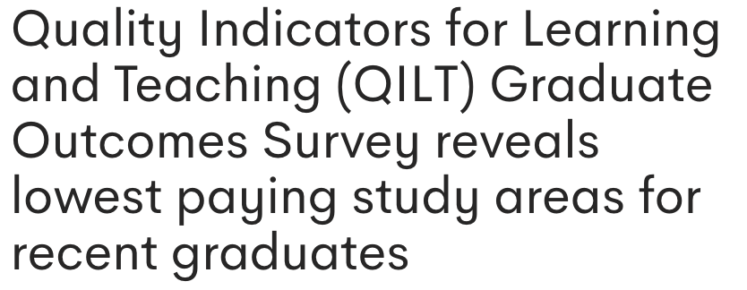 澳洲七号台新闻10月4日报道,学习与教学质量指标(QILT))毕业生成果报告,显示了澳洲各专业毕业生在离校4-6个月后的就业以及薪资状况。 统计数据显示,牙医专业的学生在毕业半年内薪资最高,平均年薪可达9.4万澳元。 ![]() 学习与教学质量指标(QILT)毕业生成果调查,统计了各高校不同专业的毕业生在走出校门4-6个月的就业情况。 来自126所院校的116000多名毕业生,参加了QILT的最新调查。 ![]() (图片来源:七号台新闻) 对于全日制本科生而言,平均工资最低专业为药剂学(55,500澳元)、创意艺术(59,500澳元),旅游、酒店管理、体育和娱乐(65,000澳元)和传播学(65,000 澳元)。 护理专业的学生平均年薪接近70,000澳元,而法律专业的学生平均年薪约为73,000澳元。 高薪专业包括工程学(75,000澳元)、社会工作(77,300澳元)和医学(85,000澳元)。 大学毕业4-6个月后,收入最高的专业为牙医,平均年薪为94,400澳元。 研究表明,男性毕业生的平均年薪更高,部分原因是女性更有可能学习薪水较低的专业。 男女薪资差距最大的专业是旅游和酒店管理、建筑、医学和法律。 南昆士兰大学(University of Southern Queensland)的学生毕业4-6个月后收入最高,全职平均工资为80,000澳元。 在毕业后几个月内找到全职工作比例最高的学府是Avondale University (97.7%)。 毕业生平均薪资最高的十大专业 1. 牙医 - 94,400澳元 2. 医学 - 85,000澳元 3. 社会工作 - 77,300澳元 4. 工程 - 75,000澳元 5. 教育 - 75,000澳元 6. 计算机和信息系统 - 74,400澳元 7. 法律 - 73,000澳元 8. 农业和环境研究 - 71,100澳元 9. 康复医学 - 71,000澳元 10. 心理学 - 71,000澳元 毕业生平均薪资最低的十大专业 1. 药剂学 - 55,500澳元 2. 创意艺术 - 59,500澳元 3. 旅游、酒店管理、体育和娱乐 - 65,000澳元 4. 传播学 - 65,000澳元 5. 建筑和建筑环境 - 66,000澳元 6. 兽医 - 67,400澳元 7. 科学和数学 - 69,000澳元 8. 商业管理 - 69,200澳元 9. 人文、文化和社会科学 - 69,400澳元 10. 护理 - 69,400澳元 |