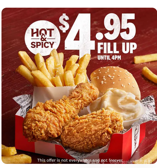 【1】10月28日截止,APP里有: $9.95 Packed Lunch![]() $5.95 Go Bucket Break![]() $4.95 Hot & Spicy Fill Up![]() $12的双人Zinger Lunch![]() $15.95 Hot & Spicy Zinger Box![]() 还有$14.45 Hot & Spicy 3-Piece Box 和 $37.95的Hot & Spicy Family Feast。 网购单一次买满30刀送4条Hot & Spicy ![]() 【2】Uber Eats那里近期有买满25刀送10个鸡翅的活动。 合作联系 微信号:Snow84930 或 CityDiscount518 电邮:Marketing@CityDiscount.com.au .................................................................................................................................................. ......................................................................... ![]() ![]() .................................................................. 都市折扣 CityDiscount 墨尔本第一人气新媒体实锤 干货 有料 敢言 震惊世界 / 造谣夸大 分享/爆料/检举/转载/投稿 联系微信号:Shingotroy 合作事宜联系 微信号:Snow84930 或 citydiscount518电邮:Marketing@CityDiscount.com.au .............................................................. 【阅读说明】 【1】本平台信息量大,随处都可能提及要事,全文看完才不会错过所有干货;【2】篇幅有限,无法完整提及活动的所有条款或者新闻事件中的所有细节信息,会尽可能给出链接以便亲查询;【3】可能无从知道及更新发布后具体商品在某个门店或网站的存货情况,以及所提及的社会事件发展的最新进展;【4】商家存在临时变更产品价格或活动设置的可能;建议保持关注我们及第一时间查阅推送,有兴趣则立刻收藏或出手下单,以免错过特价时间及存货;【5】CityDiscount并非商家客服,关于商品及活动的具体事宜最好直接询问商家;【6】如有其他问题,可发消息至公众号对话框咨询,请务必详细描述问题,推荐使用语音。 别忘了代表爱的素质4连哦~🎤 爱分享 🎁 爱收藏 点点赞 🤓 涨姿势 |