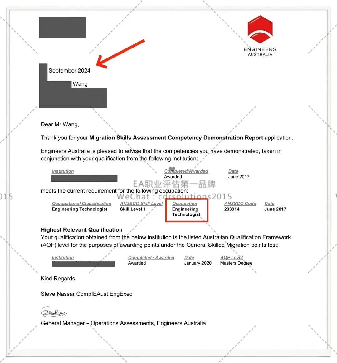 ![]() 233914 工程技师 Engineering Technologist ⭐2024年9月最新成功案例 ⭐233914工程技师 ⭐国内通信本+澳洲电气硕 恭喜WANG同学,从今天开始就是EA认可的Engineering Technologist了。论写不出文案是一种什么体验,真的是江郎才尽了,在你们看来无论如何疑难杂症的Case,对我来说都稀松平常了,我该怎么办🔨 ![]() ![]() ✨✨✨该提名职业可走的通道: 189独立技术移民、190州担保技术移民、491偏远地区州担保技术移民、186雇主担保签证、482雇主担保工作签证、494偏远地区雇主担保签证 ✅通道一:打分制技术移民: 190州担保签证、491偏远地区州担保签证 对于澳洲的打分制技术移民有几个所需的要求: 1、年龄低于45周岁; 2、英语要求雅思不低于6分(托福或PTE同等水平分数);3、EOI打分65分以上;4、有一份与提名职业高度相关的职业评估。 ✅通道二:雇主担保-482雇主担保工作签证: 💥482签证的整体要求(各类别都需要满足) 1、获得有担保资格的雇主的职位提名;2、2年相关工作经验;3、英语要求雅思5分且单项不得低于4.5分(托福或PTE同等水平分数);4、满足其申请签证类别的额外要求。 -494偏远地区雇主担保签证 💥对于澳洲的494有几个所需的要求: 1、年龄不低于45周岁; 2、英语要求雅思不低于6分(托福或PTE同等水平分数); 3、获得有担保资格的雇主的职位提名;4、有一份与提名职业高度相关的职业评估。 各州都有不同的州担保政策和职业清单,而且各个申请人情况不一样,可以站内联系,一对一帮你进行评估。职业评估是移民的第一步,也是最重要的一步! 233914 工程技师职业描述 Job description工程技师负责分析并修正新的和现有的工程技术,并将技术用于工程项目测试和实施。可能要求注册或许可。 Analyses and modifies new and existing engineering technologies and applies them in the testing and implementation of engineering projects. Registration or licensing may be required. Previously referred to in ASCO as: 2128-11 Civil Engineering Technologist 2128-13 Mechanical Engineering Technologist 2128-15 Electrical or Electronics Engineering Technologists 2128-79 Engineering Technologists nec 233914 工程技师职位别名233914 航空工程技师 Aeronautical Engineering Technologist 233914 农业工程技师 Agricultural Engineering Technologist 233914 生物医学技师 Biomedical Engineering Technologist 233914 化学工程技师 Chemical Engineering Technologist 233914 工业工程技师 Industrial Engineering Technologist 233914 采矿工程技师 Mining Engineering Technologist 233914 工程技师技术等级 Skill Level工程技师的技能等级为1 (ANZSCO Skill Level 1) 233914 工程技师所属职业列表澳洲MLTSSL职业列表 Medium and Long-term Strategic Skills List 233914 工程技师澳洲技术移民职业评估 Skills assessment authorityEA - 澳大利亚工程师协会工程师职业评估 Engineers Australia:雅思4个6,工学学位,评估有效期3年。 相关职业233911 航空工程师 Aeronautical Engineer 233912 农业工程师 Agricultural Engineer 233913 生物医学工程师 Biomedical Engineer 233915 环境工程师 Environmental Engineer 233916 海军设计师 Marine Designer 233999 其他工程专业人员 Engineering Professionals nec 移民不打无准备的仗,需要提早做规划,职业评估作为移民和找工作的重要一环,也需要尽早安排。有关移民和职业评估的任何问题欢迎大家私信 ![]() 要移民澳洲,直接找创梦澳洲专业移民助理帮你评估并制定计划哦~ ![]() ![]() ![]() ![]() ![]() ![]()