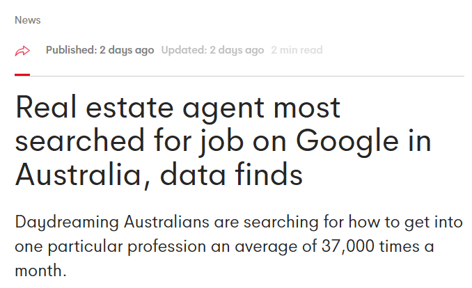 ![]() ![]() 根据 BizCover 公司的最新数据分析,澳洲人最感兴趣的职业是房地产经纪人,相关搜索量在所有职业中名列第一。 7 News 的报道提到,这家在线商业保险公司研究了超过 700 个职位名称与“如何成为”这一短语的组合搜索数据,数据收集时间为 2023 年 8 月至 2024 年 7 月,并考虑了地理位置和搜索量等因素。 ![]() “如何成为房地产经纪人”是最常被搜索的短语,澳洲人平均每月对此的搜索次数高达 37,300 次。在搜索排行榜上,紧随其后的是太平绅士,心理学家、飞行员和救护员分别位列第三到第五位。 BizCover 表示,这些高排名的搜索体现了公共部门职位的高需求。每月超过 25,000 次的搜索关注“如何成为太平绅士”,接着是“如何成为心理学家”(21,500 次)和“如何成为救护员”(近 19,000 次)。 ![]() 以下是具体的搜索排行榜: