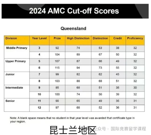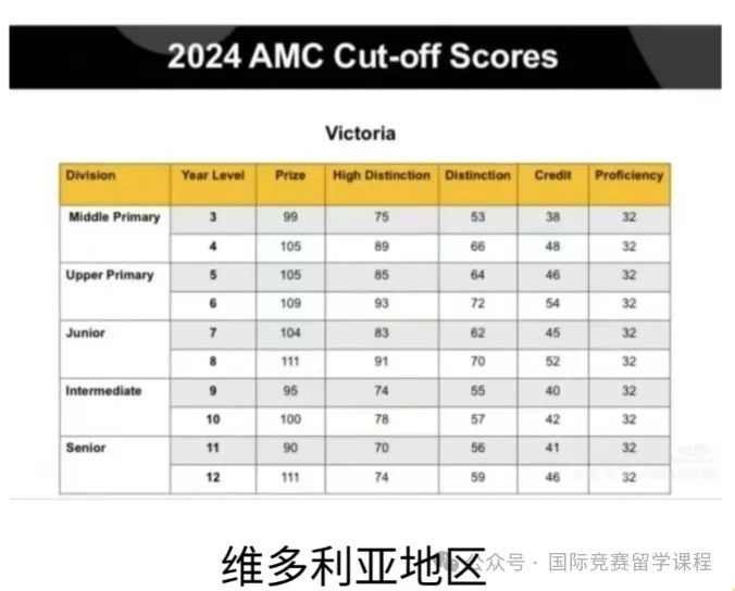 一年一度的澳洲AMC竞赛已经结束,澳洲AMC考试结束后6-8周左右,公布竞赛成绩。 大家可以登录“阿思丹国际理科测评"小程序【我的报名】,点击对应项目-【成绩查询/Scorelnquiry】【CertificateDownload】 而澳洲AMC各地区分数线现在已经公布,大家感兴趣的澳洲AMC(中国区)分数线预测怎么样呢?今天给大家统一介绍,含澳洲AMC考完之后的竞赛规划路线。 ![]() ![]() 澳洲AMC各区分数线 ![]() 澳洲AMC今年澳洲地区获奖分数线与之前变化不大 整体来看,2024年澳洲地区的澳洲AMC分数线有少许差异。其中新南威尔士和维多利亚地区持平,且分数略高。 因为澳洲AMC分数是按照比例进行评奖,要参加中国区澳洲AMC考试的同学,可以参考这个分数线。 昆士兰分数线: ![]() 维多利亚分数线: ![]() 新西兰分数线: ![]() 2024年澳洲AMC考完后,我们的专业老师就已经整理出了澳洲AMC的真题,答案,并免费帮大家对答案。 以下是部分2024年最新澳洲AMC竞赛的真题和答案,完整版可添加xnew2424获取