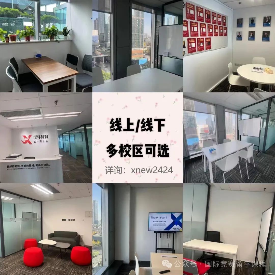 ✅线下校区:上海(徐汇、浦东、黄浦)、北京(海淀、朝阳、顺义)、广州、深圳(福田、南山)、青岛、杭州、南京、苏州、无锡、武汉、合肥、成都、宁波、重庆、香港等地。 ![]() ![]() 国际竞赛规划/培训 长按上方二维码添加小助理微信 |