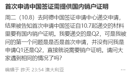 ![]() ![]() 今天有两则大消息,一个消息关乎中澳关系,另一个消息则是澳洲华人最关注的。 ![]() 我们先来说说第一条消息,也是澳洲华人最关注的回国问题。 澳籍华人申请中国签证的细节有更改,这个东西必须有,否则影响签证办理。 申请中国签证 必须提交 国内销户证明 众所周知,自从中澳关系回暖以后,两国的往来互通愈加频繁,特别是中国正在不断放宽入境限制,不仅有免签入境政策,还公布了与澳洲之间的5年多次往返签证。 ![]() 这是大家都知道的事情,但是有一些事情大家可能不知道,因为是刚刚进行的重磅调整, 事关澳洲华人返回中国! ![]() 社交媒体上一位澳洲华人发帖,说出了一个大家都没有关注过的事情: 申请中国签证, 需要提供国内销户证明! ![]() 图源小红书 这里需要注意的一点,针对刚加入澳洲国籍的华人,首次申请返回中国的签证时,户籍会成为必要的申请材料之一。 这个问题可能恰好是很多华人没有关注过的。 ![]() 图源小红书 这个消息立刻引起了很多澳洲华人的关注,虽然有免签政策但入境时间有限,不如申请多次往返签证。 而且免签还可能遇到失败的情况,或许会被禁止入境。 ![]() 对于回国,澳洲华人更加倾向于办理多次往返签证。毕竟现在5年多次往返签证的办理还是很便捷的。 只是最新要求中,增加了取消户籍这一点! ![]() 图源小红书 评论区不少澳洲华人都表示,之前申请回中国的工作签时也被要过销户证明。 ![]() 还有一位网友表示,周一在墨尔本办理回国签证,也被要了销户证明。看一下大家的讨论吧。 评论区内还有华人网友表示,即便在办理回国签证的时候没有被索要销户证明,但回到中国以后,还是会被通知要进行强制销户。 哪怕本人不到场也可以,户口所在地派出所会直接发布公告,公告只要发布就代表销户成功。 ![]() 其实销户这个问题大家之所以如此在意,与自身利益有关,有了户口和身份证,国内的房产和存款不会受影响。 可是一旦户口注销,之前的公积金和社保等等可能会出问题。 ![]() 这个政策或许真的是刚出台的,很多人还不知道,但可能不像博主所说的10月7日之后才有的,反而更早之前就已经存在了。 至少9月份就已经有澳洲华人接到了强制销户的通知。严格来说关于销户这件事情,不只是影响入籍的海外华人,哪怕获得了永居身份也是一样。 ![]() 比如北京市政府规定,出国定居注销户口应由本人或户主到户口所在地派出所办理,非本人办理的应提供定居人的授权委托书。 ![]() 不过这里需要强调一点的是,确认长期定居海外的华人才可能遇到注销户口的事情,如果非长期定居的话,户口是不受影响的。 但是提醒大家,如果大家刚加入澳洲国籍正好第一次办理回中国的签证,户口注销证明必须要提交了。 墨小编每天第一时间跟大家分享墨尔本最新的大事小事,记得关注墨尔本生活资讯,接下来那些吃喝玩乐奇闻趣事跑不了的! ▼长按这个二维码▼墨尔本新闻抢先知道! ![]() 中澳即将公布重磅消息 这个多年持续的禁令 终于要取消了 就在昨天,中国总理李强在万象出席东亚合作领导人系列会议期间,与澳洲总理Anthony Albanese进行了会晤。 ![]() 在这次会晤以后,Anthony Albanese公开透露了一个消息: 龙虾禁令,今年年底前取消! ![]() 诸多也报道了这件事情,表示这是两国高层共同协商出的最新利好消息。 ![]() Anthony Albanese在新闻发布会上公开表示: 李强总理已经同意年底前全面恢复龙虾贸易,在中国农历新年之前让澳洲龙虾重回中国市场, 可能带来巨大销量! ![]() 虽然澳洲总理已经官宣了,但中国官方媒体暂时还没有对这个消息进行报道。 中国对澳洲的龙虾禁令持续了4年时间,也是贸易方面中国对澳洲最后的限制。 等到龙虾禁令也取消,中澳贸易将再无限制! ![]() 虽然用中澳贸易的里程碑来形容有些夸张,但龙虾禁令取消,绝对是中澳贸易的新篇章,也代表了中澳关系不断升温。 之前中国和澳洲关系僵化,贸易合作几乎终止的时候,澳洲每年在外贸方面的损失,超过了200亿澳币。 ![]() 好在工党政府上台以后,中澳关系开始回暖,连带着贸易限制也陆续取消。 明年又是澳洲的大选年,不知道这一次是工党连任还是联盟党上台。从最近新闻媒体的报道中分析,似乎工党有些劣势。 ![]() 如果工党连任,那么中澳之间不论是关系还是贸易都可能会进一步升温。 但如果联盟党获胜,中澳之间的关系不知道会走向何方。 希望中澳之间能一直保持现在的良好态势,贸易合作加深,两国互通更频繁! Perfect Lover 澳洲最大华人婚恋交友平台 如果单身的你在澳洲苦苦找不到幸福,那你一定错过了Perfect Lover,因为这是你找到爱情的最“完美”捷径。 这里有最庞大的澳洲华人单身男女数据库 这里有最专业的红娘一对一服务 这里有最高效的配对机制 这里有最丰富的交友活动 最最重要的是: 这里有最高的脱单率! ![]() Perfect Lover公众号 每周都会推荐心动男生/女生 关注Perfect Lover公众号 给自己一次心动的机会! ![]() 如果你真心想要寻找心中的“Perfect Lover” 如果你正好在 澳洲或新西兰 如果你 年龄在20-50岁 那就先从Perfect Lover开始! 扫码添加小红娘微信 ![]() 说出你的要求和条件 为你匹配Perfect Lover!(本文图片均来自网络) ![]() ![]() ![]() ![]() ![]() ![]() ![]() 告诉大家一个了解墨尔本生活资讯的小诀窍。现在只要点亮一个小星星🌟,每天就能在第一时
