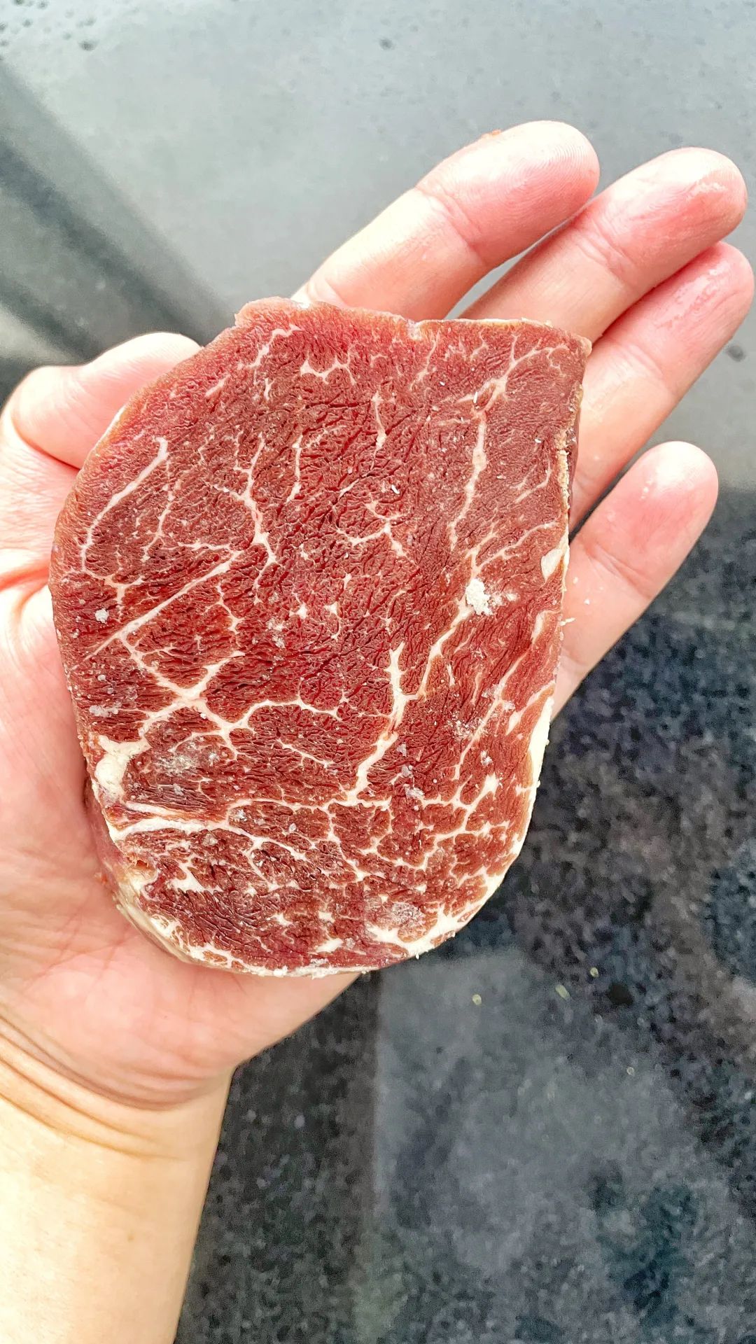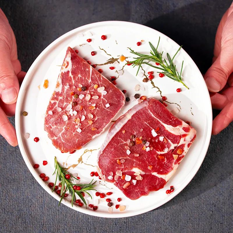 牛排就像旅行,不同的部位,不同的熟度,带给我们不同的口感、风味与享受。如果要在嫩度和香度之间做个选择,那当然是全都要啊! 菲力不用过多介绍,取自牛身上特嫩的部位,一头牛也只能产一小条。肉质细嫩,可以做不同熟度的牛排,非常适合老人和儿童。 入口瞬间,喷香的肉汁就会立马溢满口腔,是高级西餐厅级别的享受🤩 ![]() ![]() ![]() 遇上牛超值福利❗️菲力送到爽❗️💰199元得250g*4包牛排 🎁+0.01再送250g*1包 相当于买2斤再送半斤!到手整整5包!每包250g里面有2~3片(具体以克重为准)到手就是10-15片上等菲力啊~! 外面西餐厅一份的价格,今天能买十几份,值❗️头次见这么豪横的!可遇不可求!撸就完事了! ![]() 买牛排+0.01送条纹铸铁煎锅! 条纹铸铁煎锅跟牛排是分开发货,到手一共有两个快递,如果没有收到锅不要着急,锅走的是另一个快递哈。 ![]() ![]() 🔻+9.9元再加礼盒一份+银蕨的保温冰包一份 如果有送礼需求,这份礼盒简直太合适了,保温冰包拎出去不要太方便,平时也可以保存一些冰饮料。 ![]() ![]() ![]() 整块原切,无添加无注水无拼接,就是整块牛肉原始的样子。配料表只有:牛肉,没有其他成分! 原汁原味,口感纯正浓郁,肉质柔嫩。孩子,牙口不好的老人都嚼的动。 ![]() 煎熟后,轻轻切开那满身美拉德色彩的菲力,不禁眼睛放光,鲜嫩的肉质和四溢的香气。缓缓送入口中,肉汁随着咀嚼瞬间爆开,滑嫩的肉质,轻触着舌尖,香味也在鼻尖与口腔里盘旋、游走…… 口感自然,脂香四溢,直白点就是“好嫩!肉味十足”! ![]() ![]() 菲力Filet,是取自臀部及腰肌肉取下的一块软肉,是牛身上运动很少的一块肌肉。所以特别柔嫩,其大理石纹脂肪较少,是牛全身很嫩的部位。 瘦肉较多油脂含量低,大口吃肉再也不怕胖了,一头牛也只能产一小条,因此珍贵。 ![]() 整块原切下来,一般是2cm左右的小肉墩,这样优质上等的好肉,不需要复杂的调味。不需要提前腌好,只要基础的盐和黑胡椒,就能激发出原始味道和香气。 很多高端牛排餐厅大几百的菲力基本如此,口感纯正,蛋白质营养高!大人和小朋友吃起来,也是嘛嘛香~ ![]() ![]() 谷饲牛因科学精细化照料,其肉质饱满丰腴,肥瘦相间,是其独特标志!并确保营养价值,高蛋白质,富含氨基酸,β-胡萝卜素,以及种类多样的微量元素和维生素。 而且谷饲牛肉的氨基酸,更加符合人体特点,更易吸收。不管是健身人士,还是给老人和小孩补充营养都非常不错。 ![]() ![]() 小知识:冷冻牛排的颜色为什么不是鲜红色的? 并不是因为牛排坏了,或者不新鲜,而是因为在冷冻状态下,牛肉中的肌红蛋白在缺氧状况下呈现为暗红色,等常温化冻遇氧后,牛肉会恢复正常的鲜红颜色。 ![]() ![]() ![]() 不调理,不添加,不合成🥩看得见的安全放心,比起出去吃一餐实惠多了。 ![]() ![]() 敲黑板!什么是原切牛排? 配料表上只有“牛肉”两个字,才是真正的原切牛排。加了其他任何东西,都不能称之为原切。同时性价比超高! ![]() 菲力是牛排部位中珍贵的,建议选择三至五分熟,如果不喜欢较生的肉质口感,也可根据自己的喜好调整。 ![]() ![]() 色泽诱人香气迷人在家轻松做,优秀的食材只需简单的烹饪方式,便可获得美味。 只需要几分钟,便可体验到细密油花融化产生的丰沛汁水、煎烧带来的焦香及牛肉本身的软嫩口感。 ![]() ![]() 这款菲力牛排是谷物饲养的,谷物饲养可以增加牛肉的产量,让大理石花纹丰富均匀地在肌肉中增长,谷饲时间越长,肉质吃起来越嫩。所以谷饲产品的雪花比草饲产品更加丰富。 ![]() 澳大利亚四面环海,清新的空气和自由无拘束的广阔天地,为动物创造了理想的生活环境。 澳洲牛为人称道的一点,就是安全。拥有完善的牲畜追踪系统,确保澳洲政府能够严格把关食品的卫生安全。 ![]() ![]() 澳洲谷饲牛肉以肉质鲜嫩、营养丰富、适口性好驰名于世。体内肌肉脂肪中饱和脂肪酸含量很低、营养价值高。 以“大理石花纹”著称,又称“雪花牛”,由于澳洲饲养的牛肉多汁细嫩、风味独特,在全球市场的都是昂贵却又十分抢手的存在,已经成为了一种世界牛肉的招牌。 ![]() ![]() 谷饲牛因科学精细化的照料,其肉质饱满丰腴,肥瘦相间,是谷饲牛的独特标志。富含β-胡萝卜素,以及种类多样的微量元素和维生素。 而且谷饲牛肉的氨基酸,更加符合人体特点,更易吸收。不管是健身人士,还是给老人和小孩补充营养,都是非常不错的选择。 ![]() 澳洲谷饲育肥,严选高营养的大麦、小麦、燕麦、高粱和玉米等非转基因谷物,进行科学精密型,确保牛肉质地雪花分布均匀,以及确保营养价值。 澳洲采用复杂的饲养方式,成熟缓慢,但可以生产出软香的牛肉。 ![]() ![]() 牛排的熟度分为: rare 一成熟 medium rare 三成熟 medium 五成熟 medium-well 七成熟 well-done 全熟 ![]() 小知识:菲力解冻了为什么裂开了 这是正常自然现象,并不代表牛排是合成的。 是由于菲力牛排的肉质纤维本身就比较松散,这种松散的肉质使得牛排在速冻时,如果温度过低或者冷冻速度过快,可能会导致冰晶体积增大,从而刺破还未完全冻硬的肌肉纤维,进而在解冻后出现开裂的情况,再次强调并不是合成牛排! ![]() 不同的牛排部位,可以选择合适的熟度。无明显筋膜的牛排非常适合三分至五分熟,而一些带有筋膜的牛排则适合五分熟及以上。 很多人担心熟度较低的牛排有“血水”,而拒绝低熟度牛排,其实无论是
