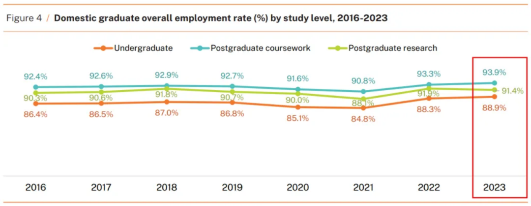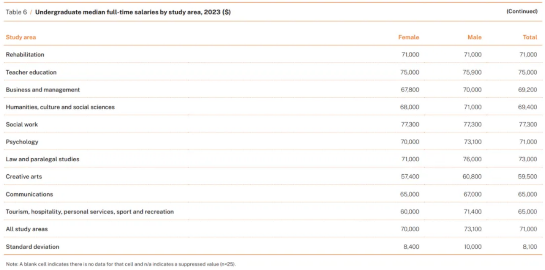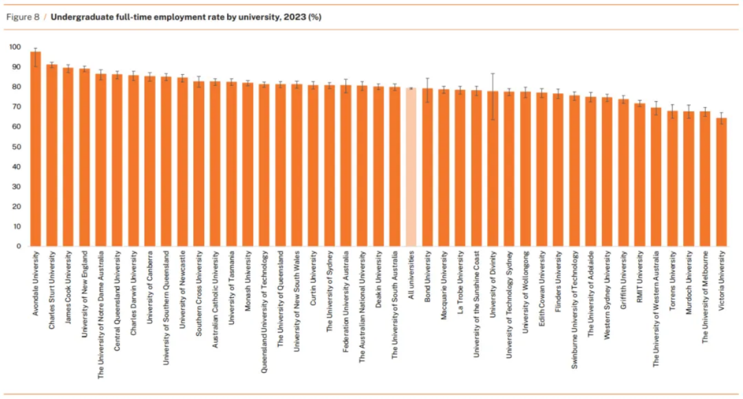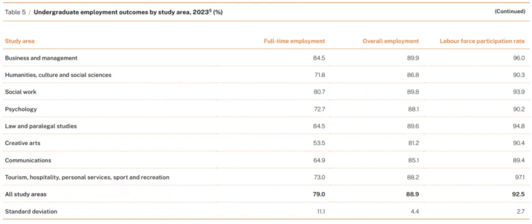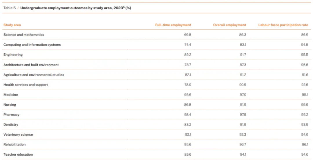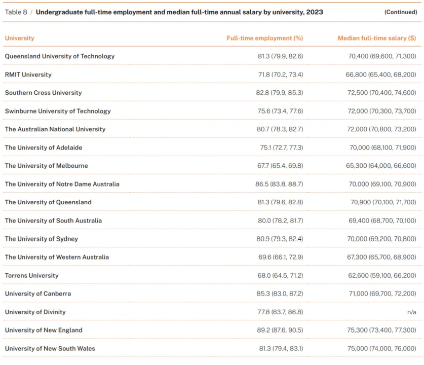 ![]() 近期,澳洲学习与教学质量指标QILT(Quality Indicators for Learning and Teaching)发布了《2023年毕业生调查报告》。 QILT详细收集了毕业生的就业状态和深造选择,包括各个专业的就业率和全职薪资中位数等信息,真实而全面地呈现了澳大利亚高等教育毕业生的发展状况。 ![]() 这些数据对计划前往澳洲留学、毕业后回国或留在当地就业的学生来说,可以参考一下。 澳洲大学毕业生薪资 01 各学历阶段毕业生薪资 根据QILT最新发布的数据,2023年澳洲大学不同学习阶段毕业生的薪资中位数如下: ●本科毕业生 71,000 澳元(约合人民币 34 万) ●授课型研究生 96,600 澳元(约合人民币 47 万) ●研究型研究生 10,0000 澳元(约合人民币 48 万) ![]() 02 各专业领域薪资 具体到专业领域,2023年毕业生薪资最高的五个专业分别为: ●牙医(94,000 澳元) ●医学(85,000 澳元) ●社会工作(77,300 澳元) ●工程(75,000 澳元) ●师范教育(75,000 澳元) 相对而言,农业与环境科学、药学、创意艺术、传播学、旅游与酒店管理等专业的毕业生薪资是最低的。 ![]() ![]() 对于已毕业三年的学生(即2020年毕业),收入最高的专业领域包括: ●牙科(108,300 澳元) ●医学(101,000 澳元) ●工程(100,000 万 澳元) ●计算机与 IT(96,400 澳元) ●药学(92,000 澳元) ![]() (来源:悉尼先驱晨报) 03 大学薪资排名 从各大学的情况来看,2023年毕业生平均薪资水平最高的前十所澳洲大学分别是: 1)南昆士兰大学(80,000 澳元) 2)中央昆士兰大学(78,300澳元) 3)塔斯马尼亚大学(78,000 澳元) 4)查尔斯特大学(75,700 澳元) 5)新英格兰大学(75,300 澳元) 6)查尔斯·达尔文大学(75,000 澳元) 7)新南威尔士大学(75,000 澳元) 8)科廷大学(75,000 澳元) 9)詹姆斯·库克大学(73,100 澳元) 10)蒙纳士大学(73,000 澳元) 这些大学的毕业生薪资均高于全澳大学毕业生的平均薪资(71,000澳元)。由此可见,许多中国学生青睐的“澳洲八大”中,只有新南威尔士大学、蒙纳士大学和澳洲国立大学的毕业生薪资高于平均水平。 ![]() ![]() ![]() 澳洲大学毕业生就业率 这份调查还统计了备受关注的就业率情况,我们一起来看看。 01 各阶段毕业生就业率 数据显示,2023年澳洲大学不同阶段毕业生的就业率如下: ●本科毕业生:88.9% ●授课型研究生:91.4% ●研究型研究生:93.5% 整体来看,研究生的就业率普遍高于本科生。 ![]() 02 各专业领域就业率 在就业率方面,各专业存在显著差异。药学、康复和医学是就业率最高的三大专业,全职就业率均超过95%。兽医科学、师范教育和工程的全职就业率也很高,均在90%左右。 而全职就业率最低的几个专业包括创意艺术(54%)、传播学(64.9%)、科学与数学(69.8%)以及人文社会科学(71.8%)。 ![]() ![]() 03 大学就业率排名 具体到各大学,2023年本科毕业生全职就业率最高的前十所大学包括: 1)阿文代尔大学(97.7%) 2)查尔斯特大学(91.2 %) 3)詹姆斯·库克大学(89.5%) 4)新英格兰大学(89.2%) 5)澳洲圣母大学(86.5%) 6)中央昆士兰大学(86.2%) 7)查尔斯·达尔文大学(85.9%) 8)堪培拉大学(85.3%) 9)南昆士兰大学(85.1%) 10)纽卡斯尔大学(84.6%) 相对而言,维多利亚大学(64.5%)、墨尔本大学(67.7%)、莫道克大学(67.7%)、托伦斯大学(68.0%)、西澳大学(69.6%)以及皇家墨尔本理工大学(71.8%)则为全澳本科毕业生就业率最低的几所大学。 ![]() 总体而言,与就业薪资排名类似,许多澳大利亚顶尖大学似乎并未出现在高就业率的排名榜单上,这一点颇令人意外。 留学缴费请记得选择Payspace! 关于 PAYSPACE PAYSPACE是Quickwire公司所建留学缴费咨询服务平台,对接了全球众多海外院校和国内上千家教育机构,与多家著名银行及第三方金融支付机构达成深入战略合作。为全球留学家庭量身打造院校直连、全程资金追踪的服务体系,提供方便价优的留学缴费服务。只需在线填写基本信息,平台即可自动匹配学生电汇信息。集简单、省事、实惠于一身,自上线以来便获得广大留学家庭认可。 点击下方链接可直接获取Payspace缴费流程Payspace 留学生用人民币交费可省钱!学费、押金、生活费一个都不落下对于留学缴费支付有任何疑问,欢迎扫描下方二维码,咨询专业客服哦! ![]() Payspace 省 时 省 力 省 钱👉推荐阅读👈