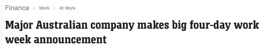 ![]() 来源:澳洲红领君 澳洲大型企业扩展四天工作周试验 据报道,未来5年,澳洲1/3的企业将实行4天工作制。 部分企业允许员工每周缩短工作时间,有的保持40小时不变,但部分企业明确表态:只减时间,不减工资。 Medibank作为澳大利亚的一家主要健康保险公司,在其六个月的试验结束后,发现员工变得更快乐、更健康、工作效率更高,因此决定将其四天工作周的试验扩展到更多的员工。 ![]() 该公司最初让250名员工参与了这项试验,现在将再增加250名员工,使得参与试验的总人数达到500人。 试验的模式和结果 这项试验遵循了100:80:100的模型,即员工保持100%的工资,但将工作时间减少到80%,同时必须保持100%的生产力。 Macquarie University的Health and Wellbeing Research Unit负责对试验结果进行监测和评估。 初步结果显示,生产力保持稳定,员工对工作表现的看法和行为有所改善。 ![]() 与试验开始时相比,参与者的满意度提高了4.5%,参与度提高了6.7%。 领导层也报告说,参与者的工作表现提高了3.6%,愿意超越职责的范围提高了6.7%。 试验还对员工的心理福祉和工作生活平衡产生了积极影响。 有10.4%的员工感到能够从工作中抽离出来,韧性提高了9.2%,工作与家庭冲突显著减少了31.4%。 员工的整体健康状况也有所提高,不健康饮食的频率减少了17.5%,睡眠干扰减少了29.9%,整体健康状况提高了16.3%。 工作方式的创新 Medibank的这一试验是其更广泛的文化变革计划“工作·再创造”的一部分,该计划旨在挑战传统的工作方式,增加员工的灵活性,同时保持绩效和客户满意度。 ![]() Medibank的人事、空间和可持续性主管Kylie Bishop表示,公司致力于推动工作场所的变革,通过创新的方式提高员工的自主权,并支持更好的决策。 Medibank目前正在与4 Day Week Global和Macquarie University合作,确定哪些团队将参与试验的下一阶段。公司正在应用一个健全的过程来识别这些参与者,并考虑这些团队的理想特征。 这一试验不仅对Medibank的员工有潜在的长期利益,而且可能对整个行业产生深远的影响,推动更多的组织考虑实施更灵活的工作安排。 据小红书网友分享,目前已经实现这一政策的公司包括; ![]() 而网友则表示: ![]() ![]() ![]() ![]() ![]() ![]() ![]() ![]() 大家对此怎么看? 推 广 ![]() ![]() 版权声明 我们注重分享,文章、图片来自网络,版权归原作者,如有异议,请告知小编,我们会及时删除。 侨居澳洲传媒澳洲热门新闻 | 政府政策更新 | 社区消息 | 分享 长按二维码关注我们 ![]() 广告、商业合作请微信: zhenyan1999 微信号:qjazcm |