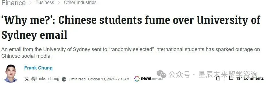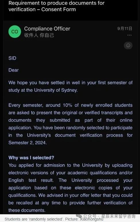 ![]() 01 中国留学生被查“集体收邮件” 澳洲自从人口暴涨以后,第一件事情就是想要限制留学生数量,明年会执行留学上限热度犹在,悉尼大学又突然上了新闻。 据澳媒报道,悉尼大学突然向大批中国留学生发送了邮件! ![]() 图片来源:news 从邮件的内容中我们可以看到,发送这封邮件的人代表了悉尼大学官方自称合规官员,邮件内容是要求进行文件验证。 邮件中写道: “ 每学期,约有10%的新生需提供他们在线申请时上传的成绩单和材料的原件,或是经过验证的文件。你通过上传电子版的学历和/或英语考试成绩单申请进入大学。大学根据你的电子版资格证书处理你的申请。我们在你的录取通知书中已经告知,可能随时会对这些文件进行核实。 ” ![]() 图片来源:news 显然,这个邮件就是为了检查校内学生的真实学术情况,避免出现伪造材料或者学术造假等不断行为发生。 被抽查的都是留学生,其中还有相当一部分留学生,这也引起了很多人不满。 一名中国留学生在社交媒体上发帖称: “ 前几天收到学校邮件,有幸被USYD选中,让我配合提交Consent Form。说白了就是给学校授权去查过往的学术表现。看是否存在学术造假及学术不端等行为。当时美本两个学校的成绩单都是直接让学校和学校对接的,查我干个毛线呢,不过可以预见未来申请土澳越来越难咯。 ” ![]() 图片来源:news 这名学生补充道:“显然,说中文的老师已经给中国的本科学校打过电话了。” 这个帖子也引起了很多人的关注,不少中国留学生都表示自己也收到了这封邮件。 许多网友表示,他们也收到了类似的电子邮件。 一名女留学生表示: 我也收到了,我甚至连彩票都没有中过。 另一名学生写道: 在申请阶段,成绩单提交一直没有成功,之后硕士学校亲自发了一封电子邮进行确认。结果,我前两天还是收到了这封随机抽查的邮件,谁知道我有多震惊? 还有人表示: 土澳真是无耻。 一名女子警告称: 如今,学校对学术不端行为的检查十分严格,有很多回溯性调查。 ![]() 图片来源:news 因为这次抽查引起了广泛关注,对此,悉尼大学发言人表示,悉尼大学的合规检查是常规操作,与其它澳洲大学一致,并指出发现的学术欺诈概率很低。 这位发言人表示: “ 为了确保申请流程的完整性和质量,每学期我们会抽选10%的新生出示申请时提交的成绩单和材料,以确保其提交文件的真实性。这些学生是在本科生和研究生中随机抽选的。此外,在申请过程中,我们还会仔细审查提交的所有文件,包括英语水平测试和学术成绩。我们的录取程序与Group of Eight的其它大学一致,以确保只有拥有真实学术文件的真正学生才能被录取。 ” 她补充道: “ 这种欺诈行为在我们的学生中非常罕见,仅约为0.4%。若发现存在造假的行为,我们会采取行动,可能包括取消注册。 ” 数据显示,悉尼大学的留学生数量为全澳最多,与此同时,国内学生正逐渐成为少数群体。 根据悉尼大学5月提交至新州议会的最新年度报告显示,目前,留学生占总入学人数的46%,即68421人中的31429人,研究生则占57%。 8月,联邦政府宣布了留学生招生人数上限,并透露将在2025年将留学生人数减少近2万至27万。 明年,悉尼大学的学生成员分布可能会迎来巨大变化。 02 留学生成牺牲品—高校也要疯 澳洲为了入境人数,率先对留学生下手,各种限制政策频出。 特别是明年要执行的留学生上限政策,对各大高校招生留学生的人数设置上限。 这一点本就让诸多高校感觉不满,认为这一点会严重影响啊澳洲的留学产业。现在更让人无奈的事情来了! ![]() 图片来源:afr 澳洲政府推迟了关于限制国际学生数量的争议性立法,对于大学和私立学校而言,根本无法指定明年明确的招生人数。 这个政策一天没有正式立法,高等院校就始终无法指定详细策略。这已经严重影响到了学校的正常安排。 ![]() 图片来源:news 据报道,澳洲政府现在只有两周时间在本年度议会结束前通过这些原定于1月1日实施的留学生立法变更。 这个延迟意味着各大院校可能在政策实施的前几周,才能知道是否会实施招生限额,并且了解到具体限额的数据。 ![]() 图片来源:news 现在许多大学已经在假设限制会被引入,学校的各种策略都是基于这个假设做出的。目前的估算,已经让各个大学在明年损失惨重了。 甚至澳洲天主教大学在9月份写信给潜在学生,告知他们由于已达上限,将不再发放明年的录取通知。 当然,澳洲最受留学生青睐的八大是损失最惨重的。 澳洲八大联盟首席执行官Vicki Thomson表示, “ 我们就这样被围绕移民的大选政治戏码绑架了,这只是进一步证实了我们的立场,那就是在1月1日实施限额是根本不可能的。 现在唯一可行的选项就是放弃这个从一开始就是错误的政策,或至少推迟至2026年。 ” ![]() 图片来源:the australian 反对党教育事务发言人Sarah Henderson表示,工党没有向参议院说明为何将这项立法推迟到11月底。“在这样的情况下,教育提供者如何为2025年做计划?” 只能说,工党政府这一次限制留学生上限的计划执行的太离奇,留学生不知道能不能进入澳洲,澳洲大学更不知道自己能不能招生! 如想了解更多托福、雅思、多邻国、领思、AP、SAT、ACT、SSAT、AEAS、GRE等考试。 欢迎扫描下方二维码获取可1V1与您分享更多留学规划! ![]() ![]() 24fall Offer展示 ![]() ![]() ![]() ![]() ![]() ![]() ![]() ![]() 北京星辰未来留学已经帮