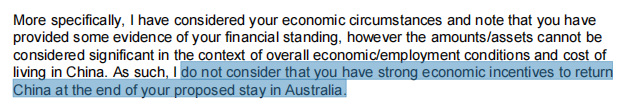 澳大利亚 ![]() 不少小伙伴应该都有听说过:有拒签记录的话,再次申请并获批的几率是大大降低的。如果被拒过两次,夸张点地形容,那相当于出国的大门只留下了一条门缝了。 但!是! 这也并不意味着就一定没有机会。 每个人的具体条件和情况不一样,如果不幸被拒了,千万不要马上灰心,仔细复盘材料,根据领馆拒签信推测拒签理由,说不定还是有翻盘的机会哦 ![]() 。 办理澳大利亚商务签被拒过两次的A先生,就在国庆假期的后一天收到了第三次申请的准签信! ![]() ![]() ![]() ![]() 顾问君到底是怎么办到的? 小伙伴们注意啦,顾问君有宝藏经验跟大家分享~ 知识点先给大家归纳好了▼ Part 01 拒签翻案经验大总结 <<<< Attention!>>>> “ 一、分析拒签信,推测拒签理由 收到拒签通知的第一时间,建议小伙伴们留意领馆发送的拒签信,看看给出的拒签理由都有什么,然后针对信中的官方拒签理由推测出真实详细的拒签理由。 二、针对拒签理由完善资料,“对症下药” 推测出真实详细的拒签理由后,结合之前自己提交的材料来看,找出不足的地方,对应补充或者完善材料。 *提醒:拒签翻案重新递交申请,如果提交的材料跟前一次一模一样,那顾问君劝小伙伴可以直接别浪费钱重新申请了。拒签了没有更新材料直接再次申请,获批率基本为0。 三、拒签解释信 凡是拒签过的话,再次申请都建议另外补充一封拒签解释信,针对前一次申请的拒签理由,一一回应说明。有时候,材料并不能非常直观地表达您想对签证官说明的意思,并且要记住,签证官有可能是对国内各种环境和材料并不熟悉的外国人,因此,一封通俗易懂、与完善后的材料能互相辅助说明的解释信是非常必要的。 四、真诚才是最大的必杀技! 基本没有一个国家不欢迎真诚并富有的中国游客去往当地旅游消费。同时,发达国家最忌讳的是逾期停留、以及打着旅游的幌子实则想非法停留、工作或移民的访客。 *什么才算是真诚的申请人? 顾问君可以理解为:材料真实、目的真实、签证目的与实际目的一致,遵纪守法,不逾期停留等。 *拒签翻案时,如何体现自己的真诚? 最直接的就是通过解释信中的语言措辞来表达,辅之以过往出行照片、家庭照片、工作照片等。 “ 知识点可能过于枯燥,顾问君给大家举个“栗子”来看看。 Part 02 案例分析 <<<< Example >>>> ![]() “ A先生申请背景: 海归硕士,去过申根国,在职公司经理,申请澳大利亚商务签证,两次皆被拒。 “ Australia ![]() ![]() 【拒签翻案四步走】 第一步,首先来看看A先生收到的拒签信节选是怎么写的: ![]() ![]() 乍一看,其实都是很宽泛的官方说法,认为A先生在国内的工作、经济、家庭等联系不够紧密,资金条件不足以支撑在澳洲出行及归国,有逾期停留在澳洲的风险。 但是结合申请背景,其实A先生的基本条件是不错的,但是为什么签证官会得出与本人背景相悖的结论呢? 结合拒签信,就需要更进一步了解A先生的申请材料及具体情况了,经过顾问君的分析,不难得出结论:虽然基本条件不错,但是由于A先生毕业不久,个人账户下的资金不多,入职时间太短。 办理商务签证,通常对于个人财力没有太看重,但是结合就职时间太短,并且前两次申请中没有提供显示公司实力的资料,或公司对其在澳洲进行商务活动的其他担保资料等,就没有办法显示A先生有稳定长期的收入及公司联系。 既然没有公司资料可参考说明,那只能看个人财力,可是A先生前两次提供的个人账户下,虽然有显示工资收入,但是余额并不多,集体户口也证明不了有详细的家庭关系。 第二步,推测出详细的拒签理由后,就可以开始“对症”完善签证材料了。 ►就职时间短:现实没办法改变,那就凸显公司在商务签申请中的重要性。补充公司相关资料等。 ►家庭联系不紧密:提供能显示家庭关系的资料等。 ►个人财力不足:可适当继续补充家人名下的资产等。 第三步,根据以上分析和补充材料,书写拒签解释信,务必言辞诚恳,有条理,有证据。 第四步,怀着真诚的心,重新递交申请。 ![]() “ 最后顾问说说: 当然,不同国家不同领馆的风格不一样,有些国家拒签并不会给拒签信,有些国家的拒签信大多是制式模板,难以针对拒签信推测拒签理由,这样特殊情况下就需要特殊分析。 “ 希望小伙伴们都能如愿 ![]() 顺利地获得签证 开开心心出行! 有任何疑问?签证需求? 欢迎来找实力杠杠的顾问君啦! ![]() ![]() ![]() ![]() |