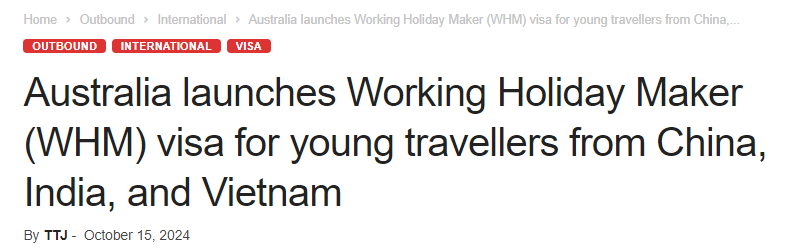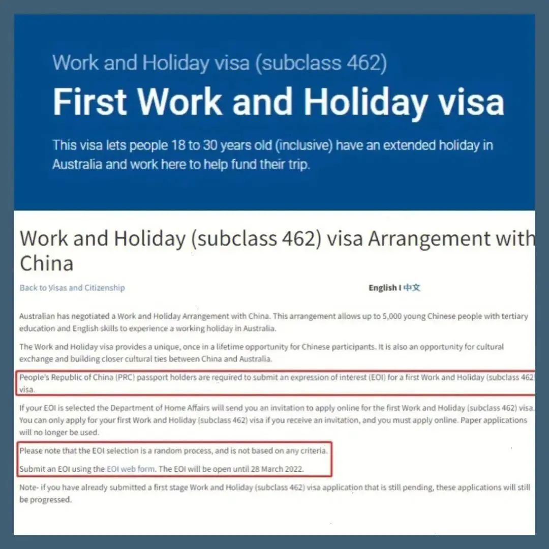 ![]() ▲扫码探索捷尼赛思GV 80▲ ![]() ![]() 共1761字|预计阅读时长4分钟 ![]() 始于1975年,最初只向少数英联邦国家开放,后来渐渐扩大范围。 2015年,根据澳中两国之间的自由贸易协定,该项目每年向5000名中国申请人开放。 今年初,有这么一件事引发轰动。 那就是澳洲打工度假签证,不对中国人开放了。 2024 年 10 月 1 日,澳大利亚正式开放了工作度假者 (WHM) 签证抽签 允许护照持有人注册随机抽签流程,申请工作和度假签证(子类 462)。 符合条件的护照持有人可以注册抽签程序,并被随机选中申请澳洲工作和度假签证 ![]() ![]() ·有能力从事短期工作以帮助资助他们的居留。·有机会在澳大利亚学习长达四个月。·签证有效期内可无限次往返澳大利亚。·有机会完成三个月的指定工作,使他们有资格获得第二次工作与假期签证。 要获得签证,申请人必须满足以下条件:·持有中国护照。·年龄在18至30岁之间。中国年轻人可以通过抽签申请赴澳打工度假签证。 有机会完成三个月特定工作后,便有资格续签,最多续签两次,在澳居留三年。 可以从事短期工作,签证持有人在澳大利亚逗留期间可以获得经济帮助。 有机会在澳大利亚学习长达四个月时间。 签证有效期内可以无限制进入澳大利亚。 ![]() 那些在国内很多人看不上的底层的工作,在澳洲能够获得尊重。 工作不分贵贱,一分耕耘,一分收获。 ![]() 对于个人来说,还有各种假可以请 在澳洲打临时工,有时候还会再加25%的津贴 而且你自己就可以申请澳洲打工度假签证。 而且,在澳洲,真的是一分耕耘一分收获,没有歧视,没有轻视,工作大家都是平等的。 ![]() 你们,同意吗? ![]() *本文图片均源自网络,如有侵权,请联系后台删除 推荐阅读 17 10-2023 澳洲,要变天! 16 10-2023 澳洲收入全球最高!为什么澳洲华人还是没钱? 15 10-2023 触目惊心!别来澳大利亚,严重歧视华人!? 推广 ![]() 感谢大家的阅读,如果喜欢我们的文章,可以在下方直接点赞、推荐一下 |