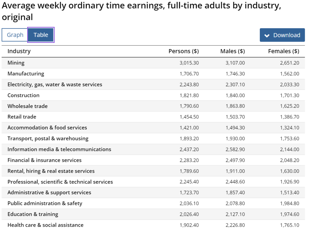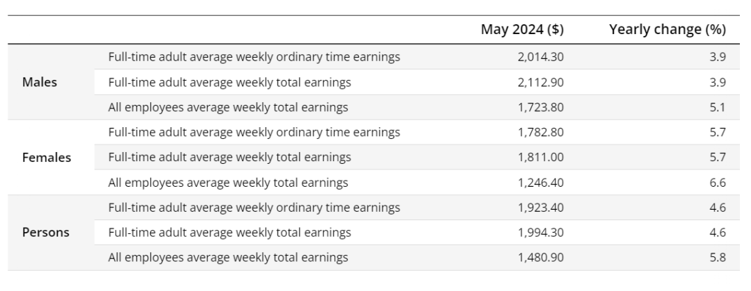 ![]() 最近,关于澳洲人工资的最新数据出来了。 哪个年龄段的人挣钱最多? 哪个行业的人挣钱最多? 哪个州的人挣钱最多? 一组数据告诉你,一起来看看吧。 ![]() ![]() ![]() 详情请浏览3Gclosure.com.au ![]() 澳洲各年龄段平均收入 根据比价网站Canstar的最新数据, 35-54岁的男性收入是最高的,年平均工资为103,955澳元。 45-54岁的男性略低,年平均工资为101,400澳元。 与此同时,处于同一年龄段的女性收入少得多,分别为83,200澳元和85,800澳元,分别少了20,755澳元和15,600澳元。 ![]() 收入最低的是15-19岁的男性,年平均工资为40,144澳元; 同一年龄段的女性稍高一些,为42,540澳元。 20-24岁的男性年平均工资为61,234澳元; 女性略高,为62,098澳元。 25-34岁的男性,年平均收入为83,200澳元; 同年龄段的女性为78,000澳元。 ![]() 澳洲人平均年薪超过10万刀 根据澳洲统计局的最新数据,澳洲打工人的平均年收入首次超过了10万澳元。 现在,全职打工人平均每周工资1994.3澳元,相当于一年103,703.60澳元,较上一财年增长4.6%。 ![]() 非全职打工人平均周薪为1480.90澳元,相当于每年77,006.80澳元。 男性的周薪平均比女性多出301.90澳元。 全职男性打工人每周工资为2112.90澳元,每年109,870.80澳元。 全职女性每周平均工资为1811澳元,每年为94,172澳元,少了15,699澳元。 ![]() 公共部门的打工人比私营部门的每周多挣205.10澳元。 公共部门的全日制打工人平均每周收入为2156.60澳元,即每年112,143.20澳元。 私营部门平均每周收入1951.50澳元,即每年101,478澳元。 ![]() 薪资最高的行业 毫不意外,采矿业的工资是最高的,平均周薪为3015.30澳元,每年156,795.60澳元。 其次是信息媒体和电信行业,平均周薪2437.20澳元,每年126,734.40澳元。 排第三的是金融和保险服务行业,平均每周工资为2283.20澳元,每年118,726.40澳元。 专业、科学和技术服务行业的收入第四高,每周平均工资为2245.40澳元,每年116,760.80澳元。 第五名是水电煤和垃圾服务行业,每周的平均工资为2243.80澳元,每年116,677.60澳元。 ![]() ![]() 收入最高的州 首领地的打工人平均收入是最高的,平均每周为2126.50澳元,即每年110,578澳元。 其次是西澳,平均每周2094.30澳元,每年108,903.60澳元。 维州排第5,打工人的平均周薪是1882澳元,每年97,864澳元。 ![]() 你的工资拖后腿了吗? 来源:age ![]() ![]() ![]() ![]() ![]() 很开心认识你! 我是墨妮卡 ![]() |