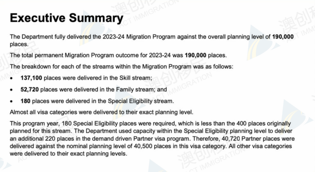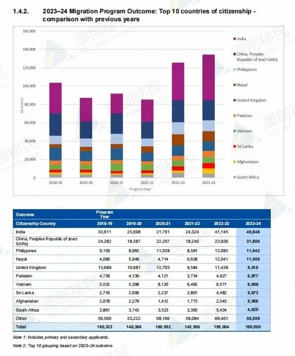 点击上方,关注我们 点上方【澳创移民留学】或 拨打免费咨询电话【4000563966】了解更多 ![]() 澳洲政府发布最新的2023-2024财年批签结果官方报告,汇总过去一整年的批签情况,我们带大家一起了解 : 澳大利亚在2023-24财年设定的移民配额为19万个,在财年末已完成目标,具体配额如下为: