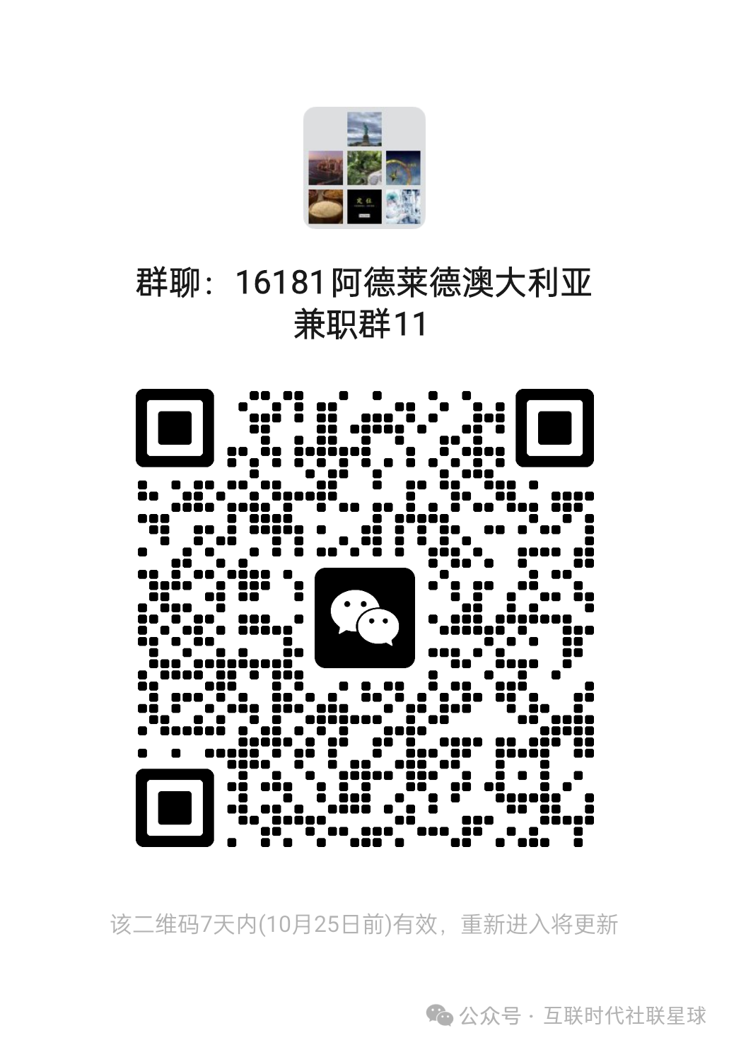 ![]() 欢迎加入澳大利亚兼职群! 本群旨在为在澳大利亚的朋友们提供丰富多样的兼职信息和交流平台。无论你是留学生想赚取生活费、背包客想体验当地生活,还是本地居民希望增加收入,这个群都能满足你的需求。 在这里,你可以: 一、获取兼职信息 1. 涵盖各个行业领域,包括餐饮服务、零售销售、教育辅导、翻译工作、物流配送等。无论你的专业技能是什么,都有机会找到适合自己的兼职岗位。 2. 信息来源广泛,有正规企业发布的招聘信息,也有小型商家的紧急用人需求。 二、交流兼职经验 1. 与其他群成员分享你的兼职经历,包括面试技巧、工作心得、遇到的问题及解决方法等。大家可以互相学习,共同进步。 2. 了解不同行业的兼职特点和要求,为自己的职业发展提供参考。 三、拓展人脉资源 1. 结识来自不同背景的朋友,扩大自己的社交圈子。在兼职过程中,你可能会遇到志同道合的人,为未来的发展创造更多机会。 2. 与雇主和其他求职者建立联系,增加自己的就业机会。 加入我们,开启你的澳大利亚兼职之旅吧!让我们一起努力,实现自己的目标! |